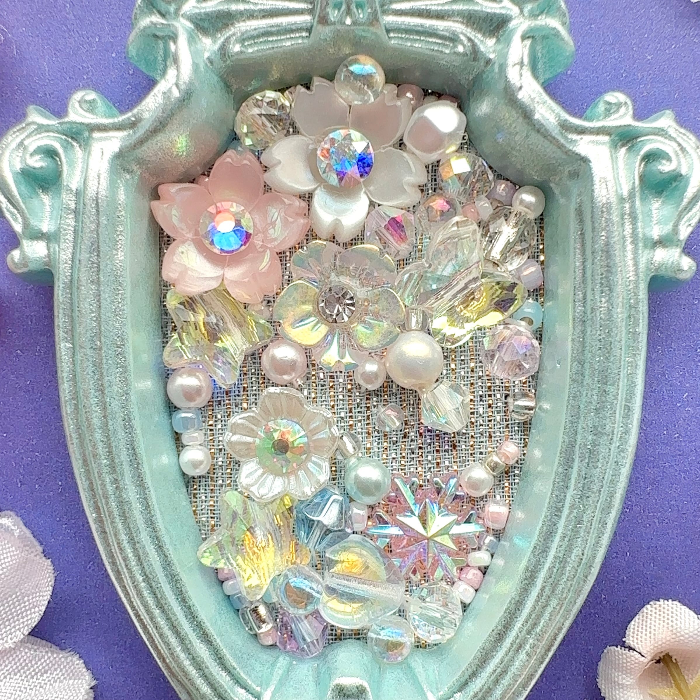 ビーズ刺繍のブローチ・ネックレス・バッグチャームの3wayです。