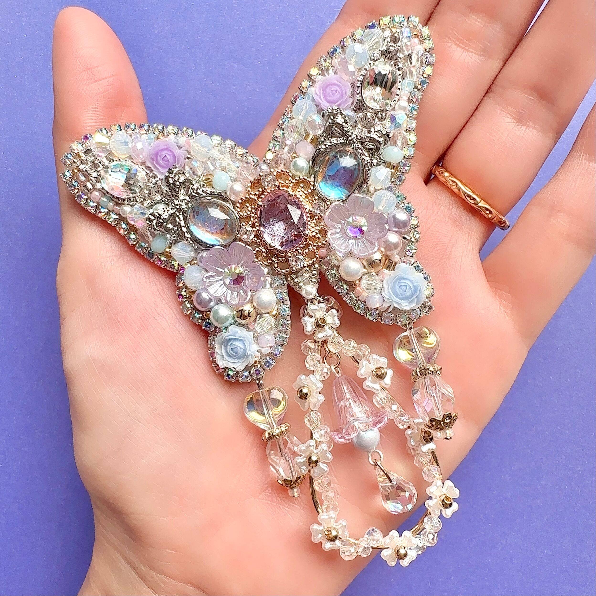 ビーズ刺繍のブローチ・ネックレス・バッグチャームの3wayです。