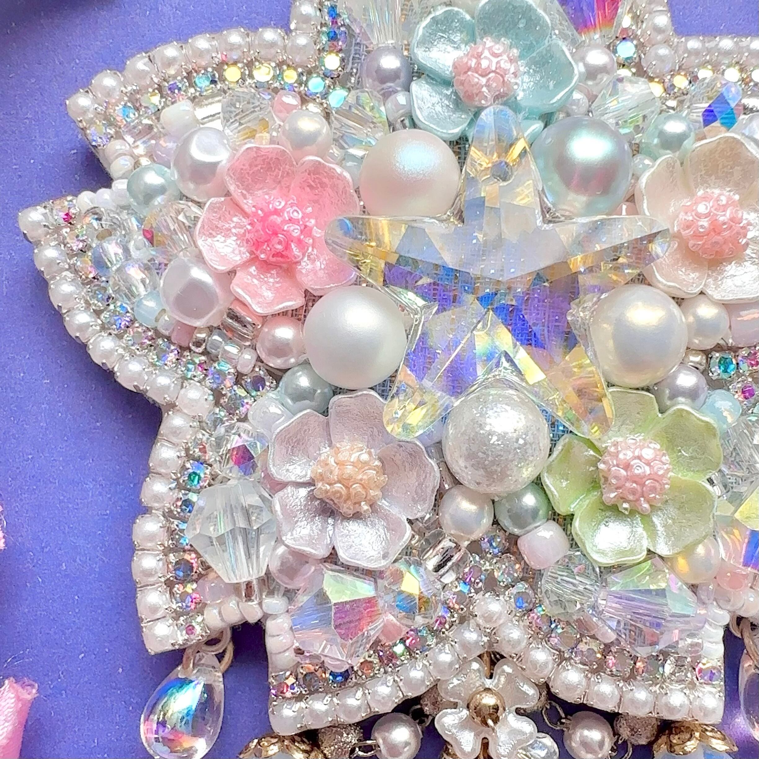 ビーズ刺繍のブローチ・ネックレス・バッグチャームの3wayです。
