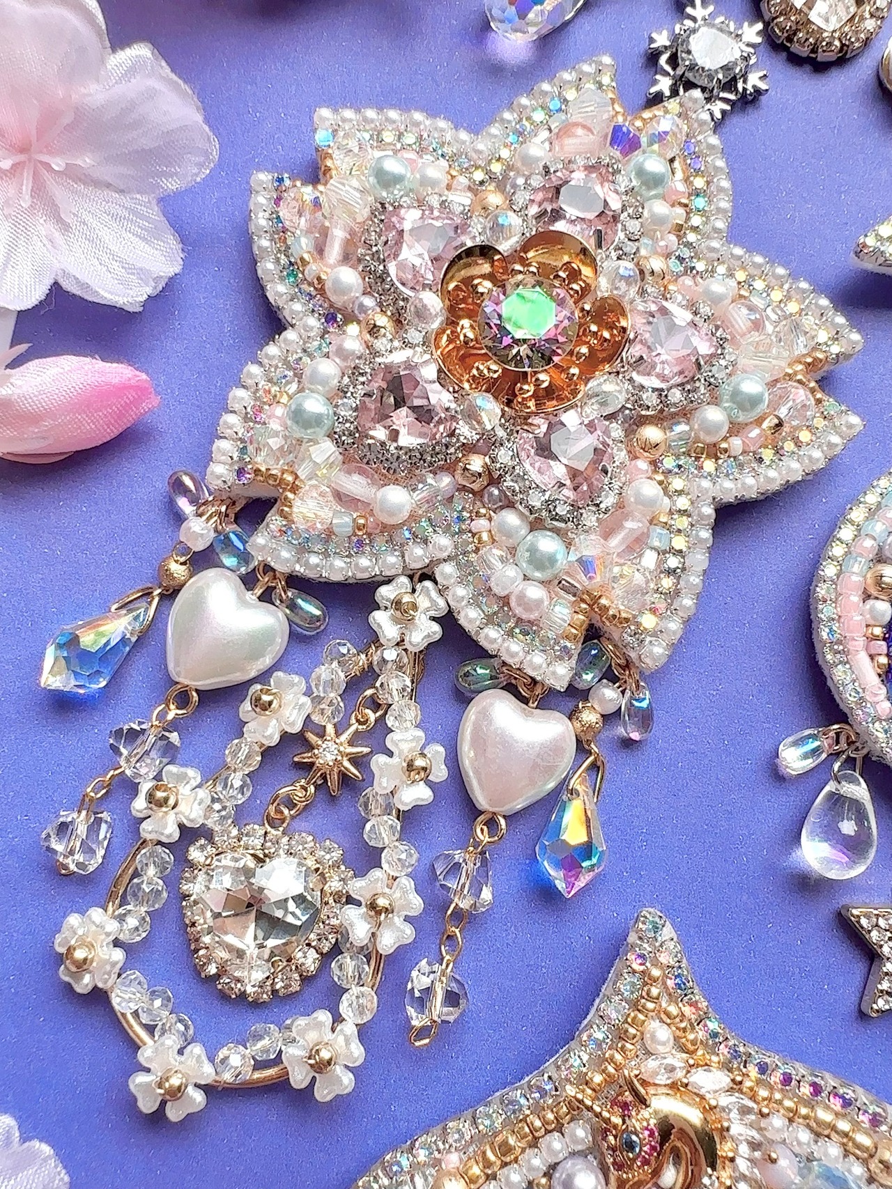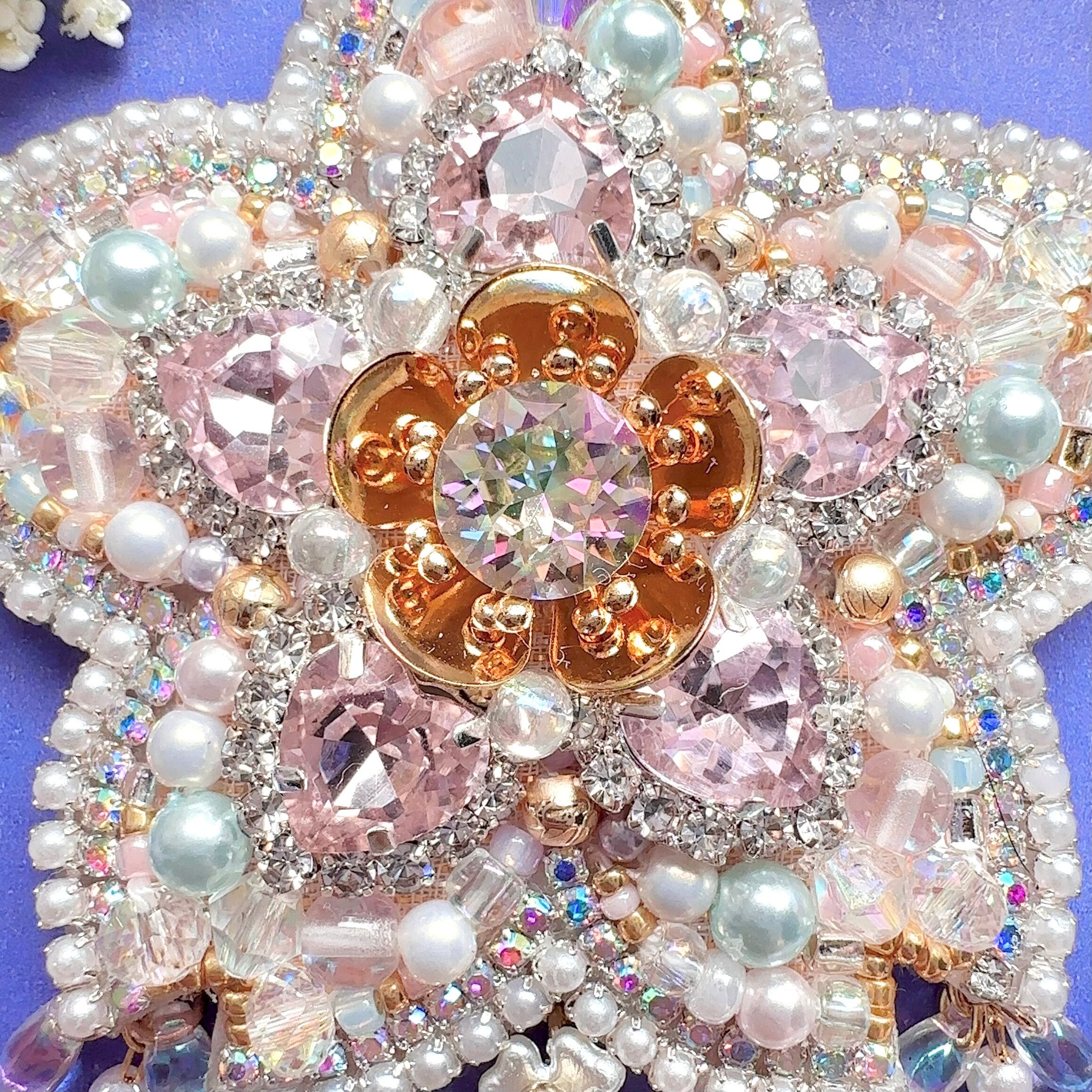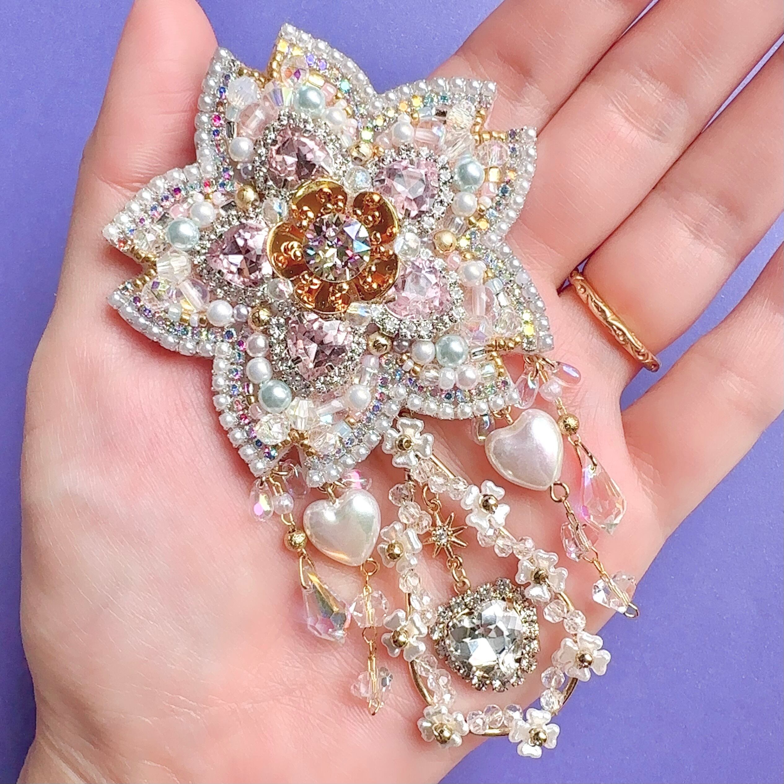 ビーズ刺繍のブローチ・ネックレス・バッグチャームの3wayです。