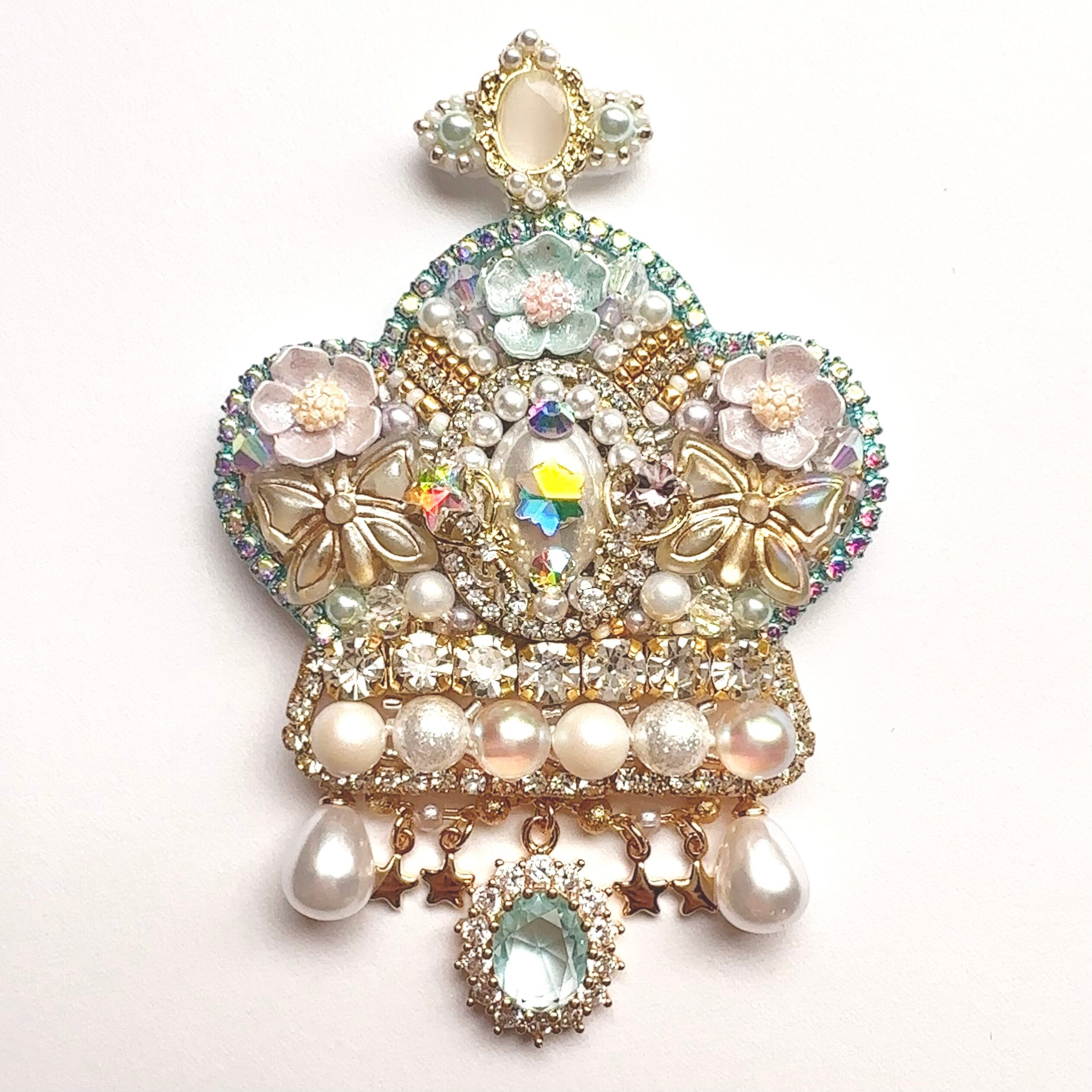 ビーズ刺繍のブローチ・ネックレス・バッグチャームの3wayです。