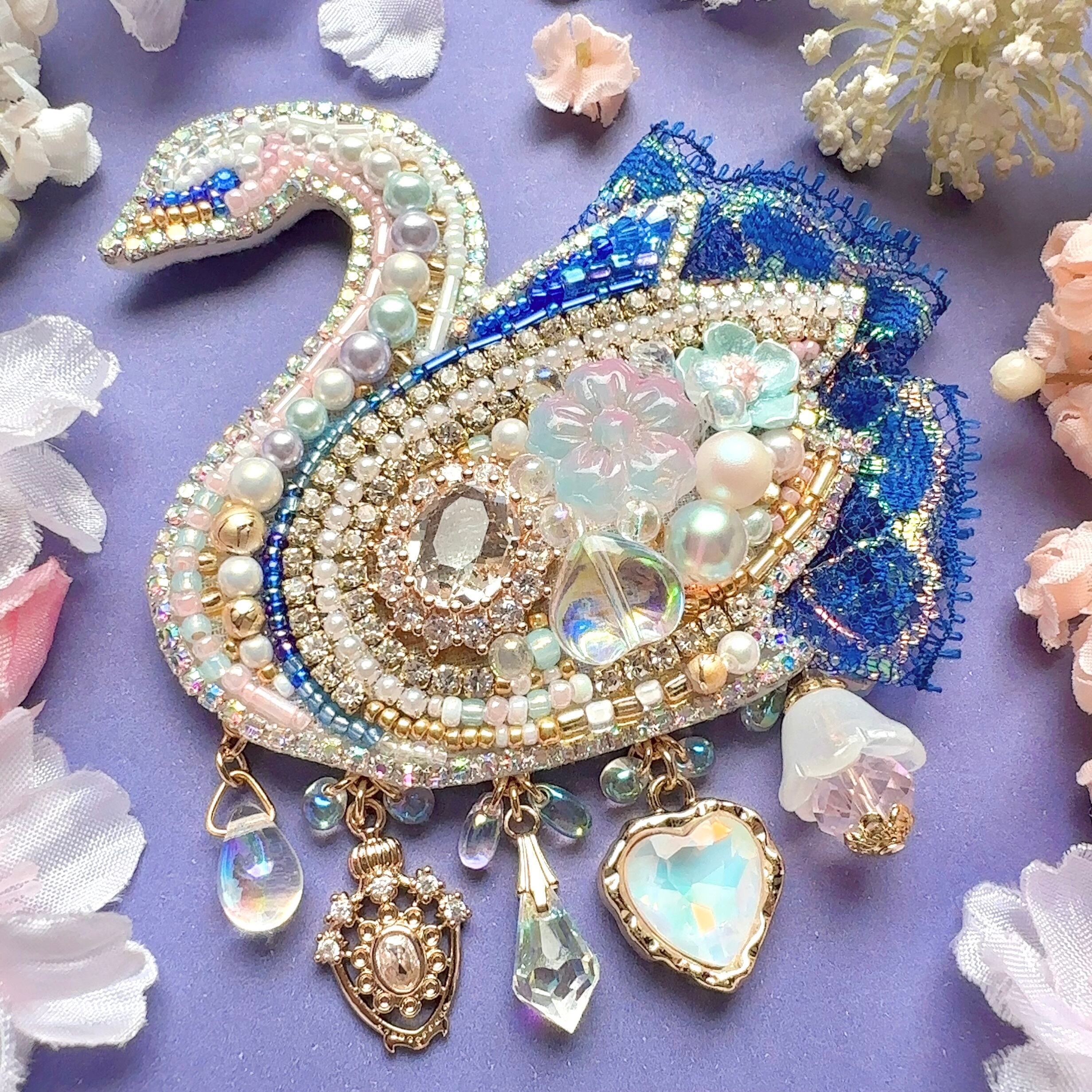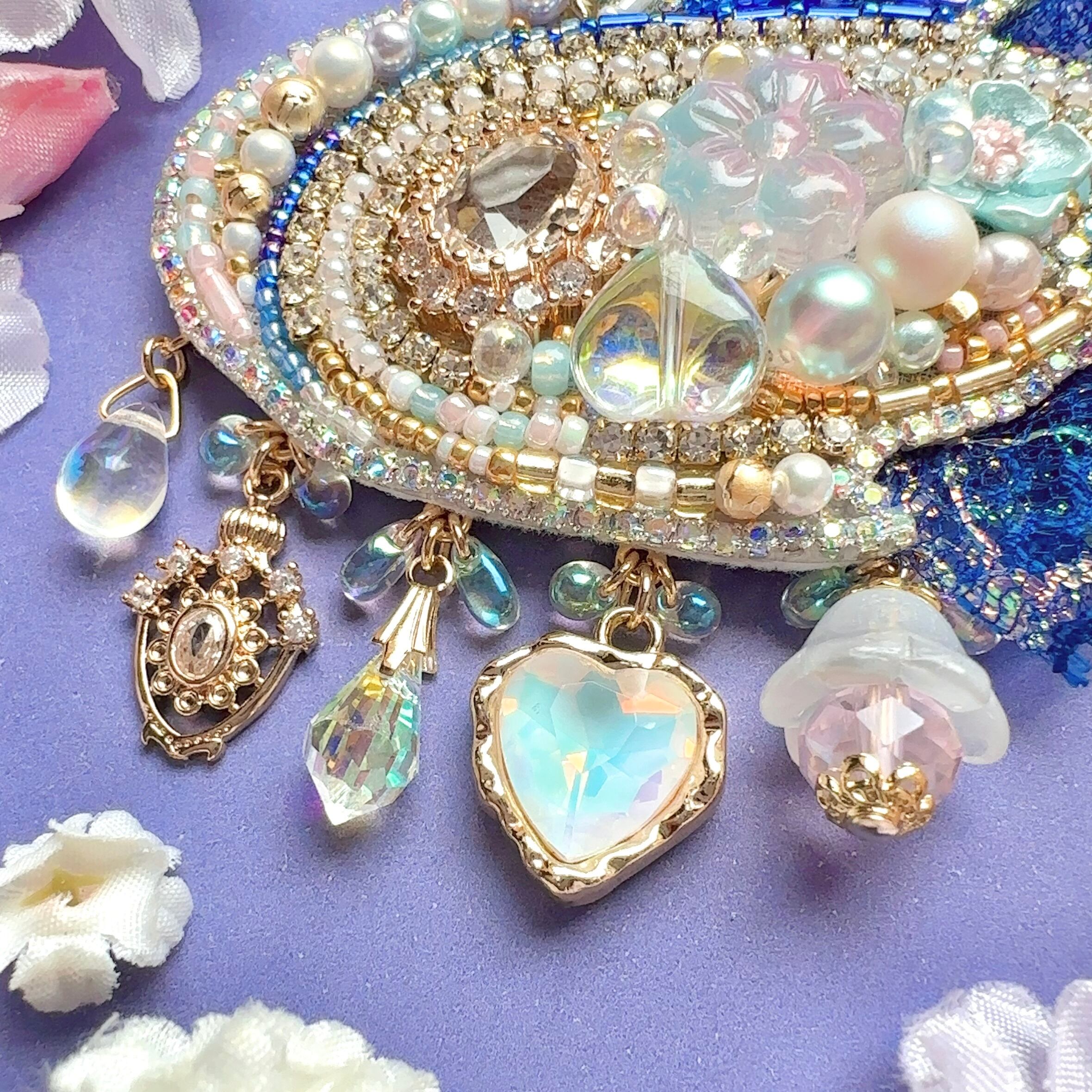 ビーズ刺繍のブローチ・ネックレス・バッグチャームの3wayです。