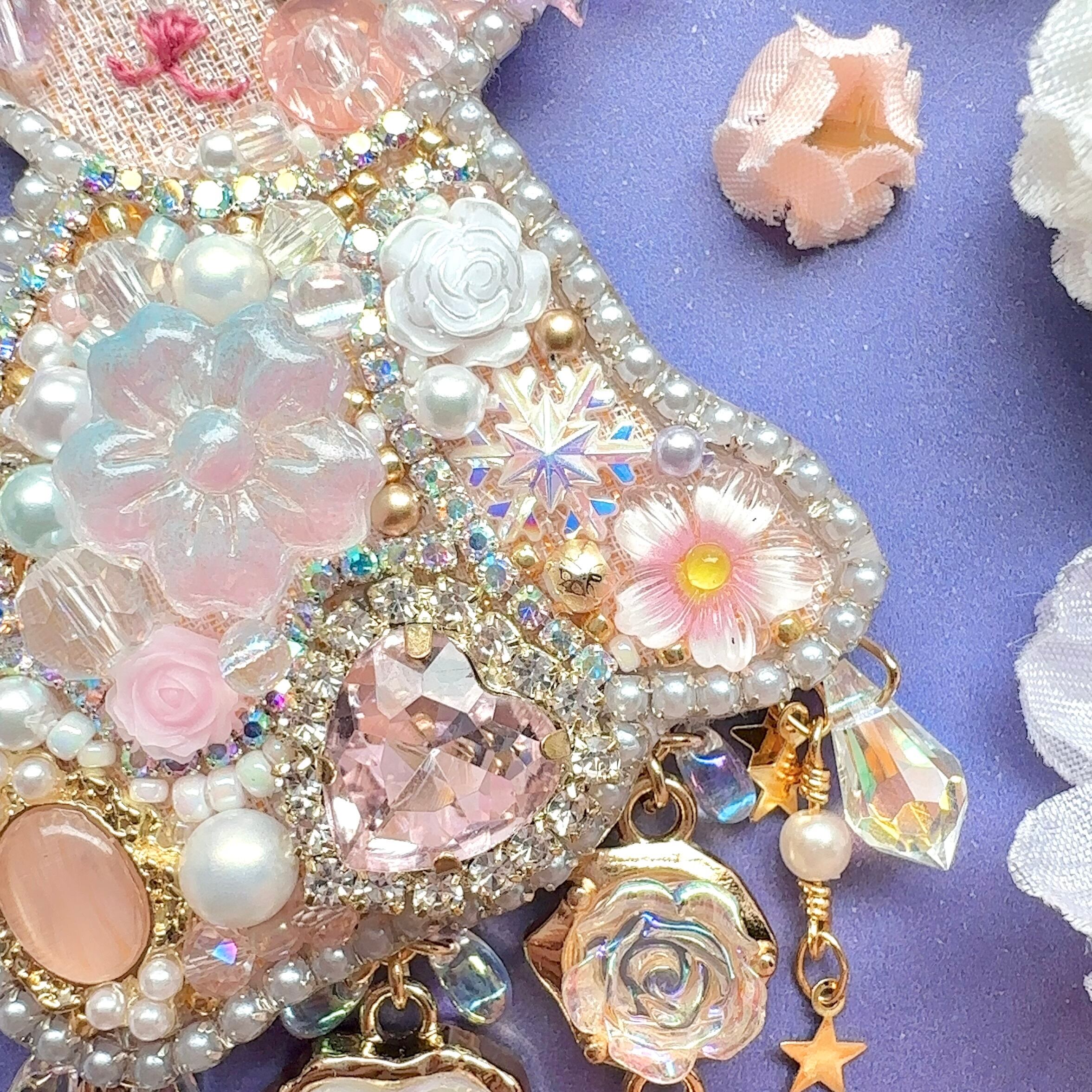 ビーズ刺繍のブローチ・ネックレス・バッグチャームの3wayです。