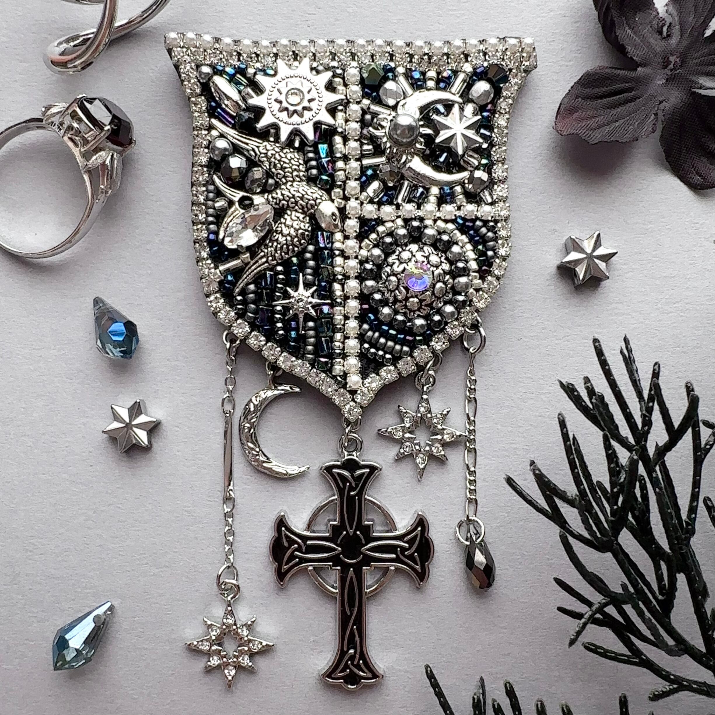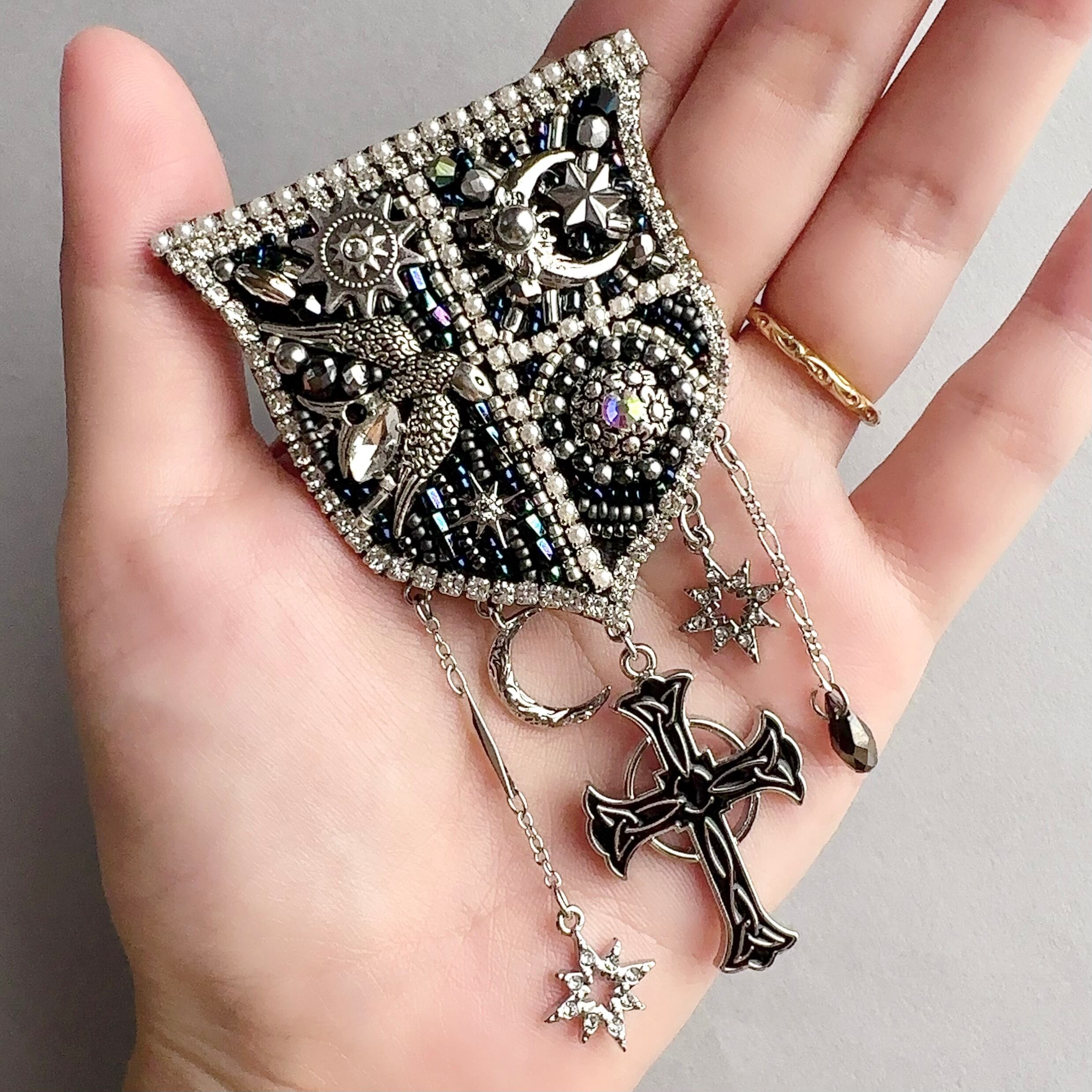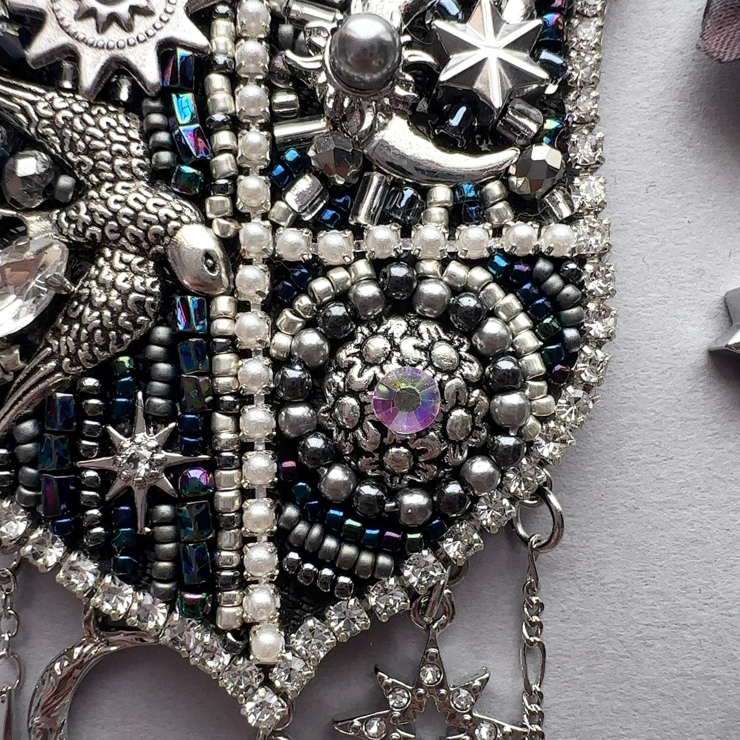 ビーズ刺繍のブローチ・ネックレス・バッグチャームの3wayです。