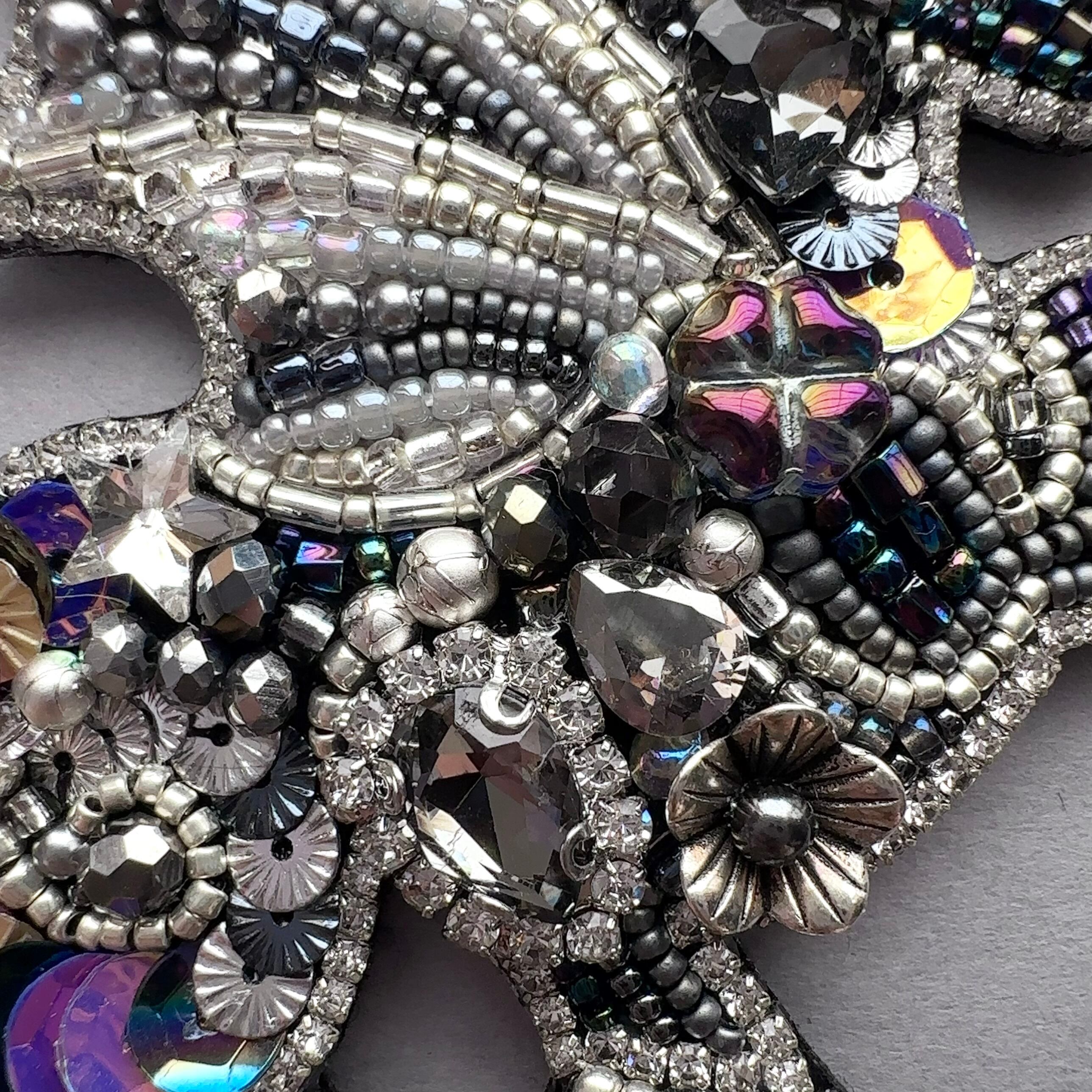 ビーズ刺繍のブローチ・ネックレス・バッグチャームの3wayです。