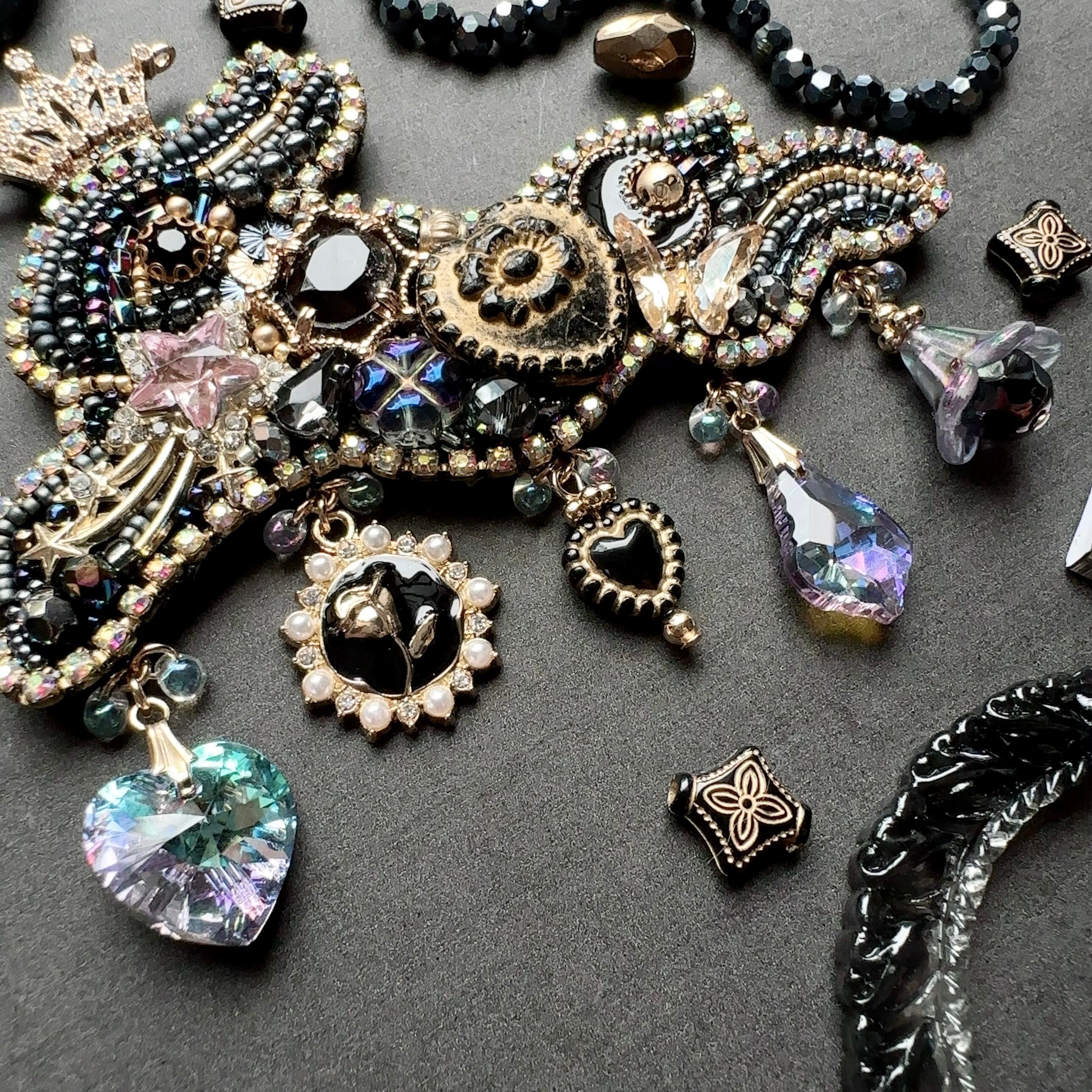 ビーズ刺繍のブローチ・ネックレス・バッグチャームの3wayです。