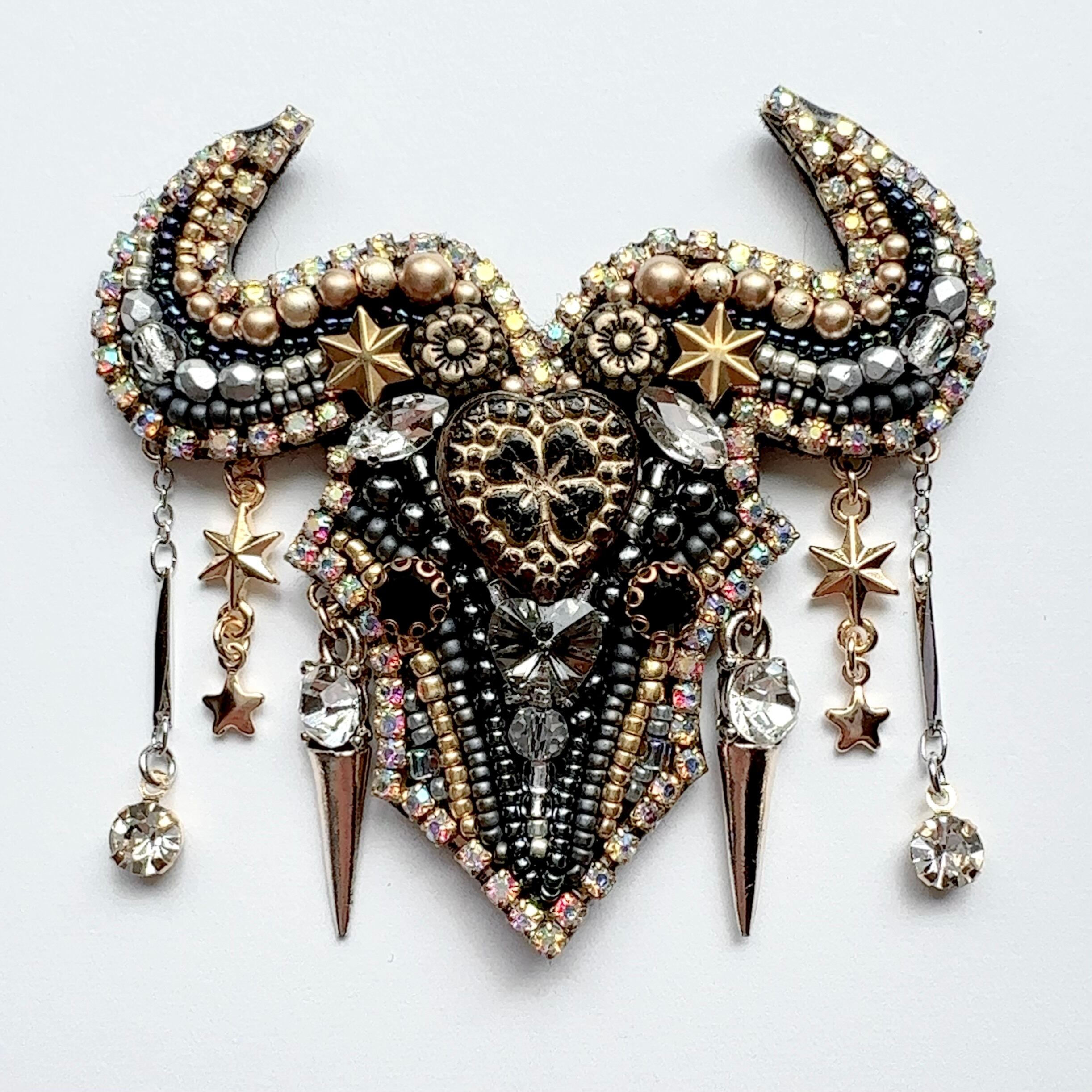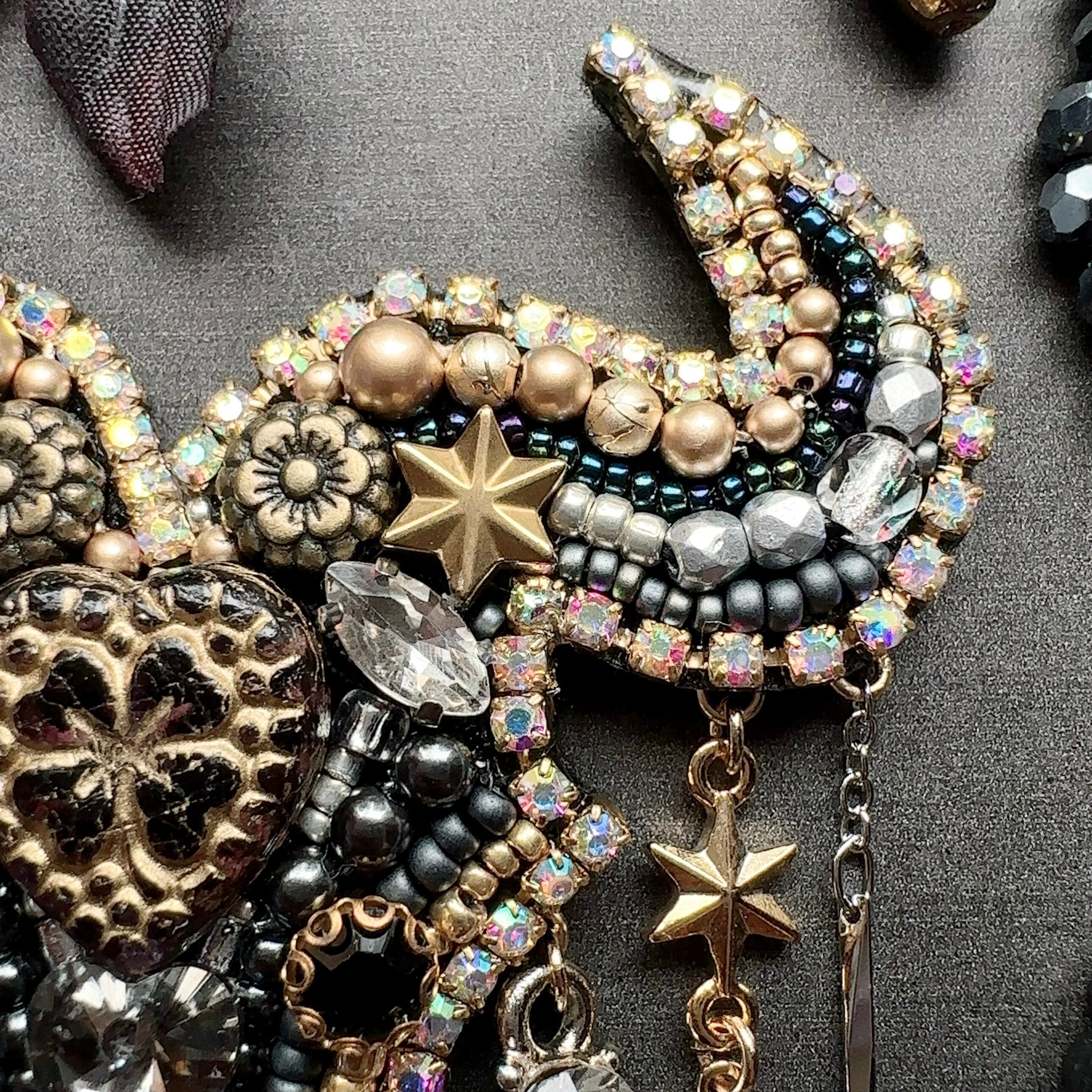 ビーズ刺繍のブローチ・ネックレス・バッグチャームの3wayです。