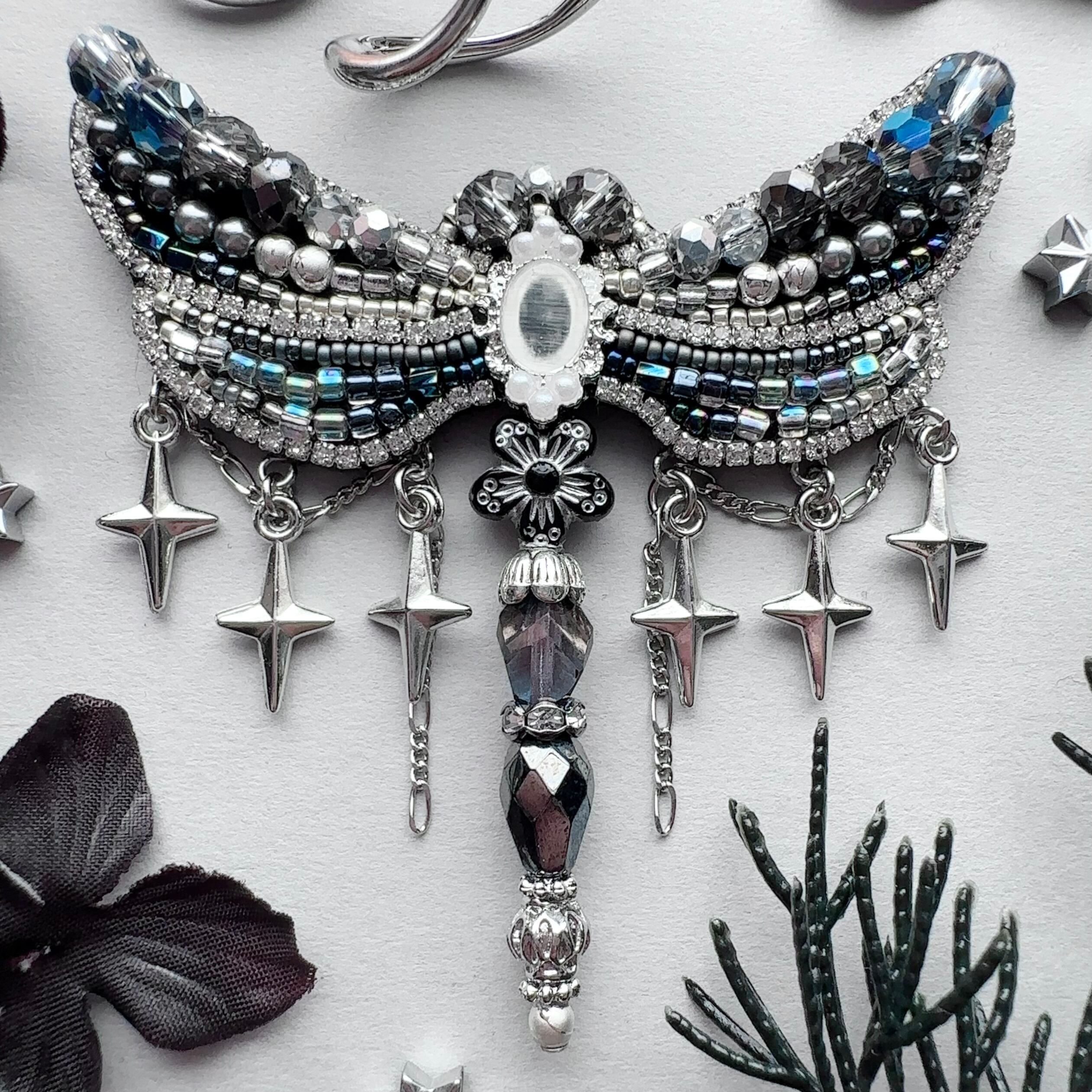 ビーズ刺繍のブローチ・ネックレス・バッグチャームの3wayです。