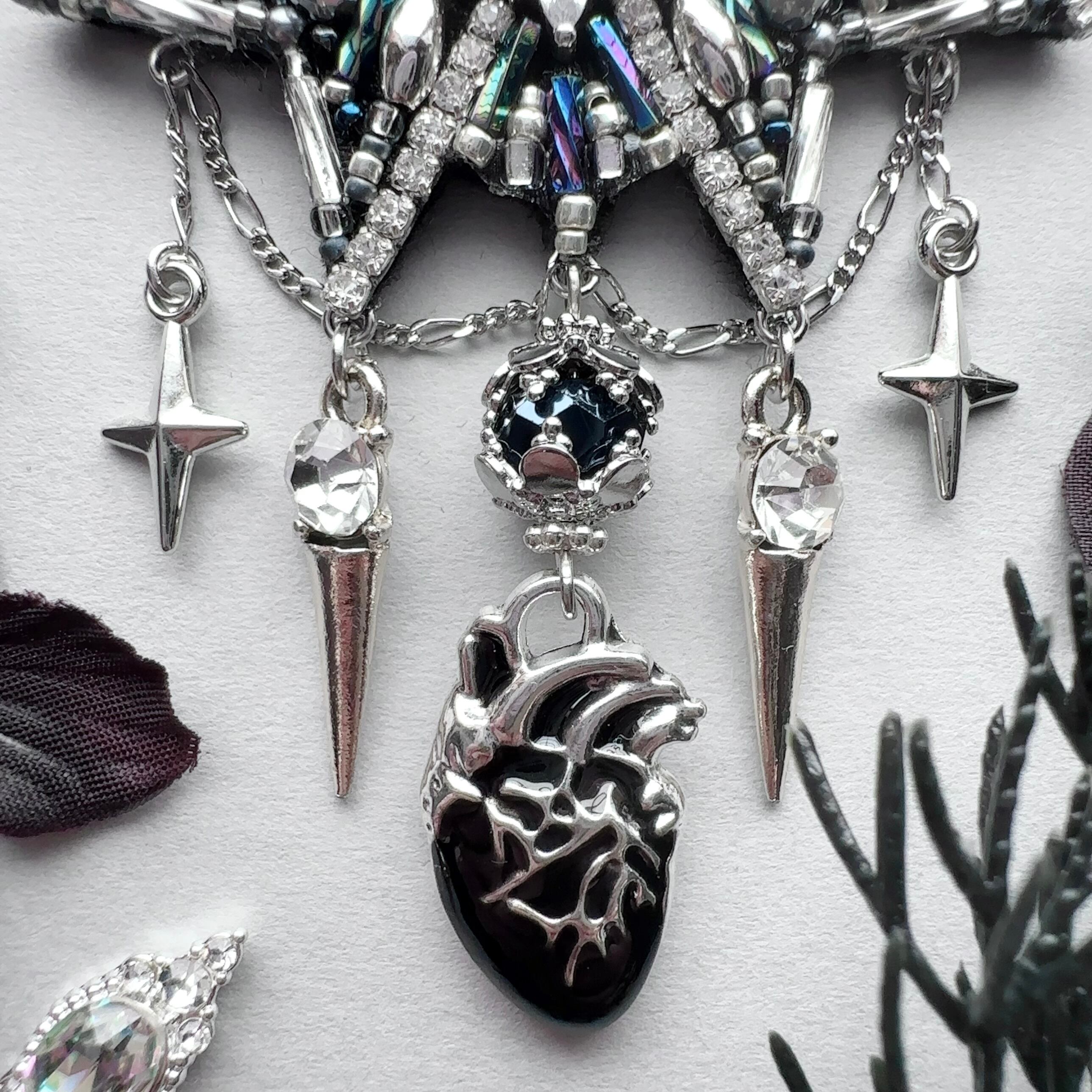 ビーズ刺繍のブローチ・ネックレス・バッグチャームの3wayです。