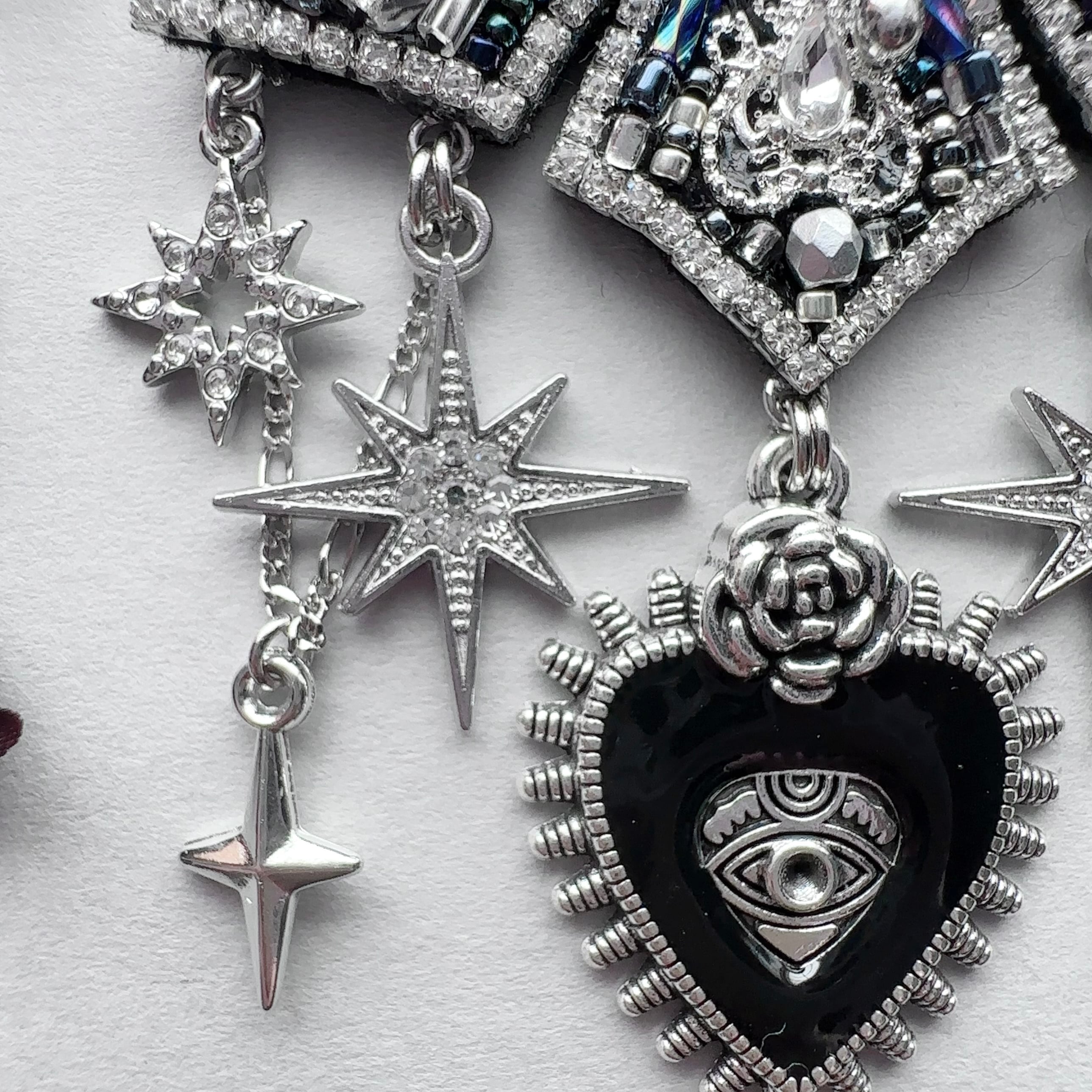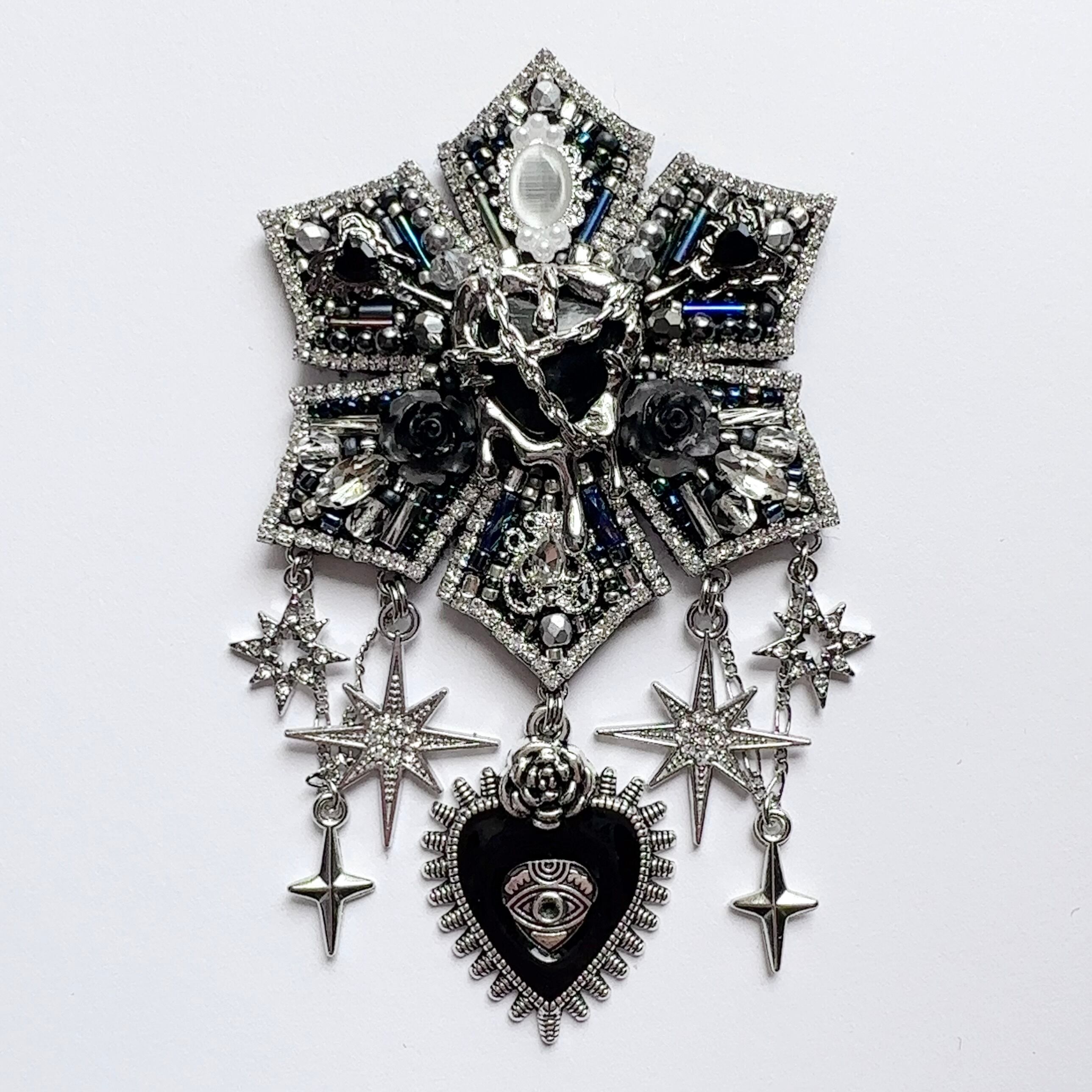 ビーズ刺繍のブローチ・ネックレス・バッグチャームの3wayです。