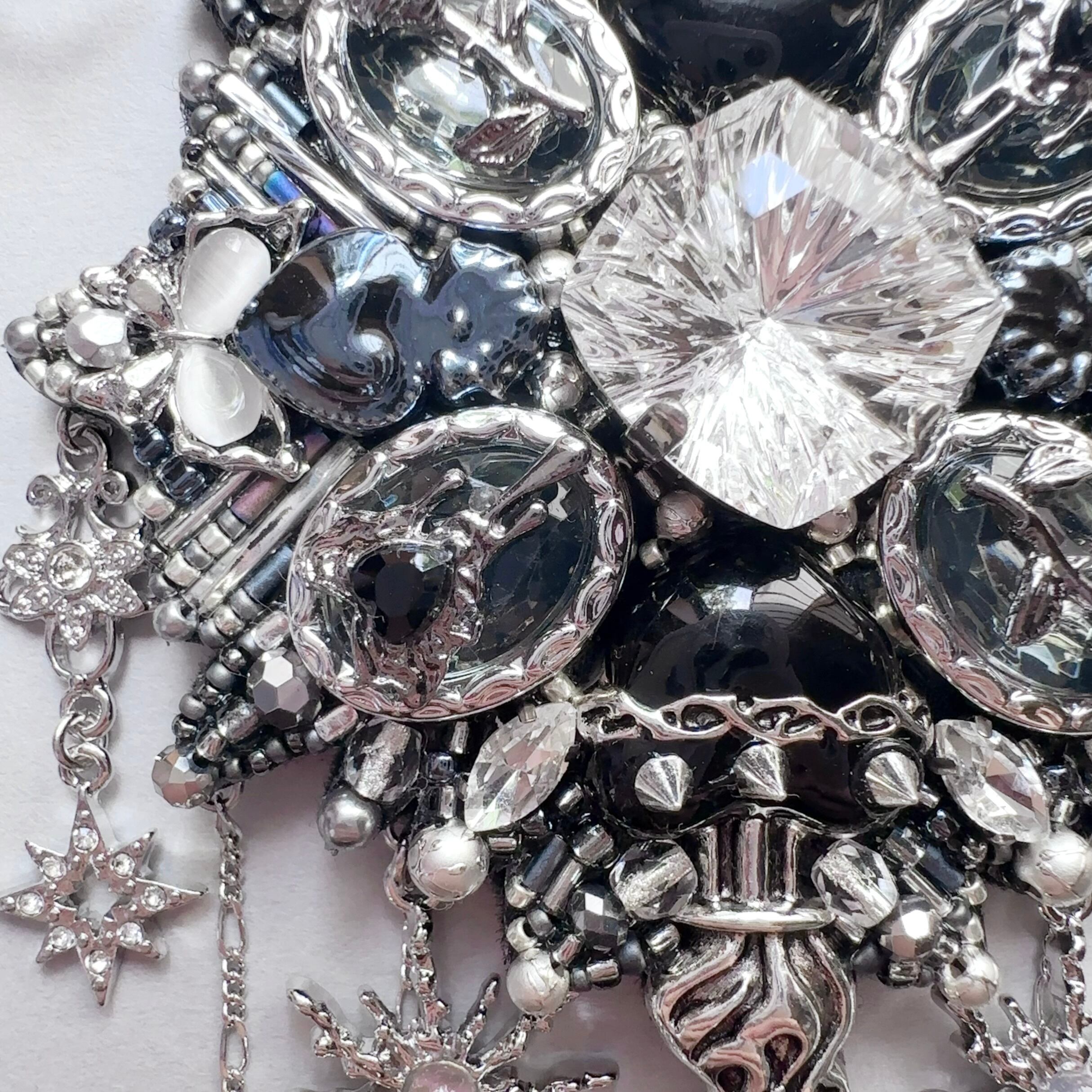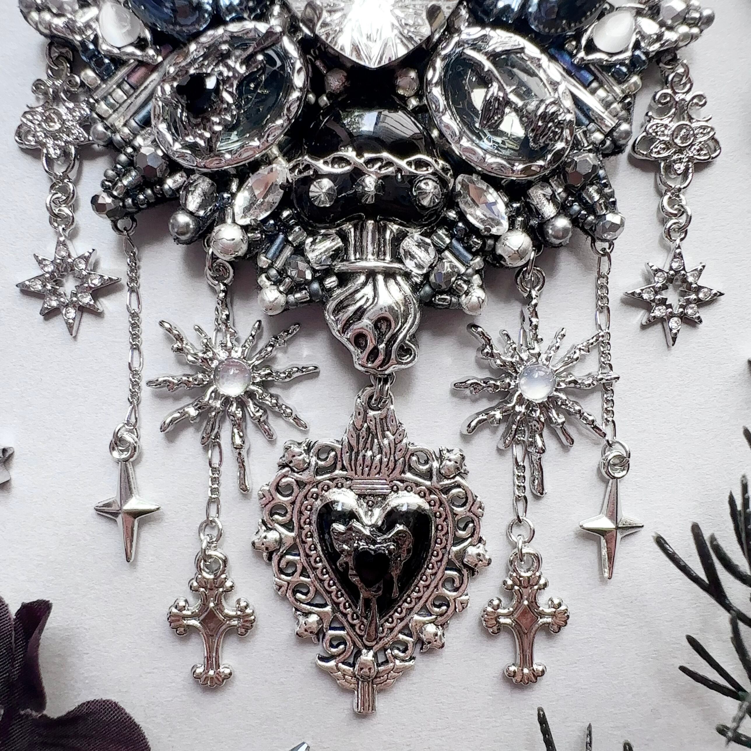 ビーズ刺繍のブローチ・ネックレス・バッグチャームの3wayです。