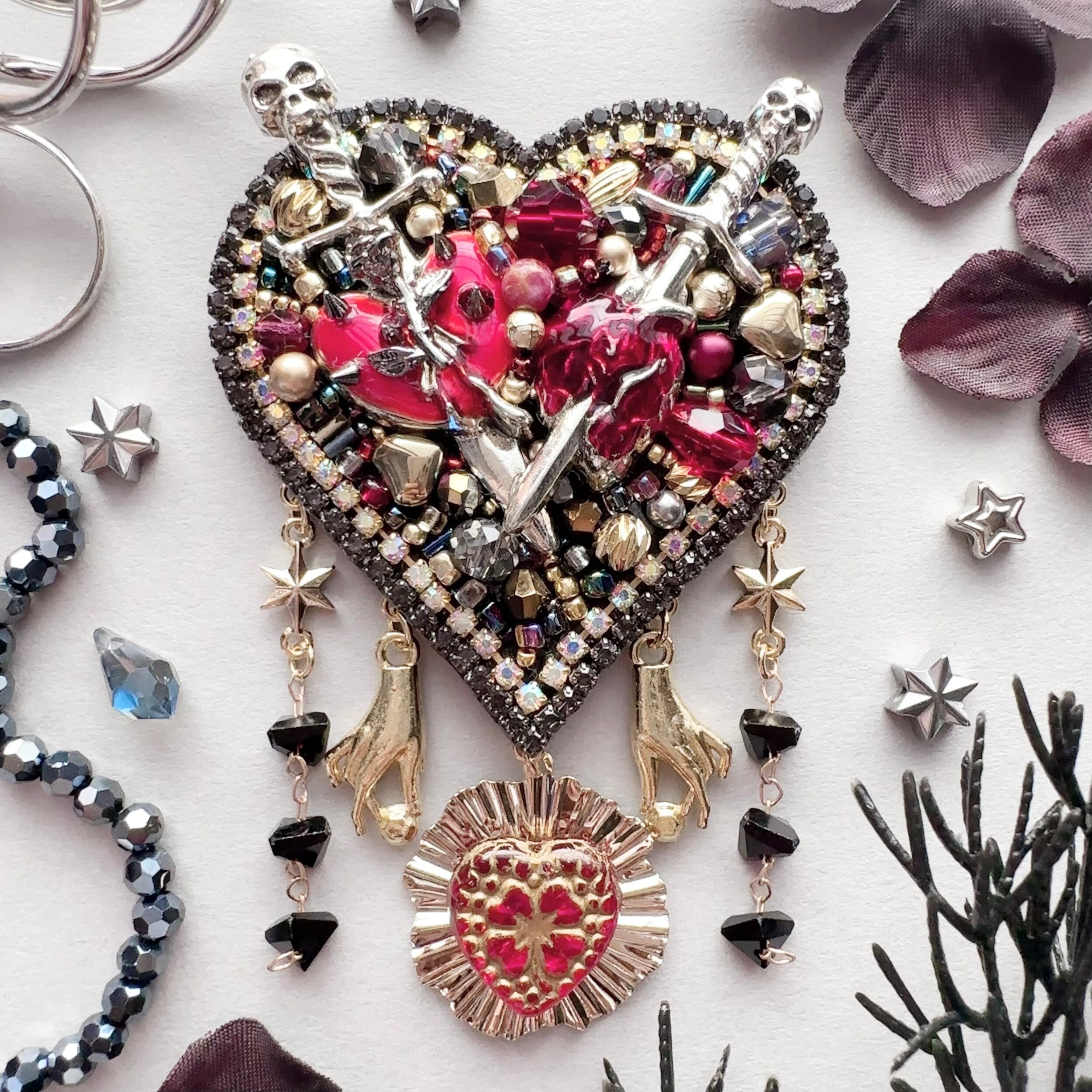 ビーズ刺繍のブローチ・ネックレス・バッグチャームの3wayです。