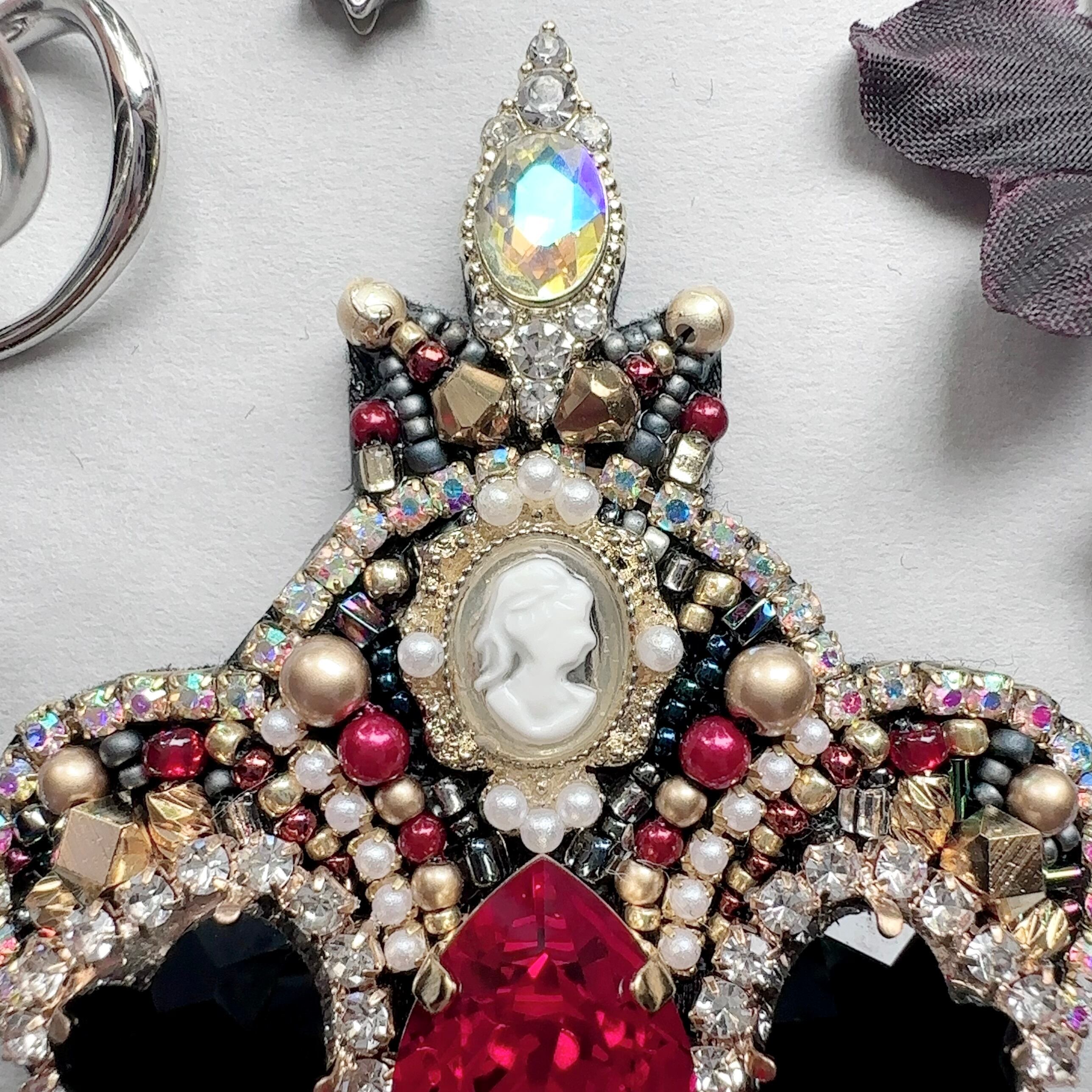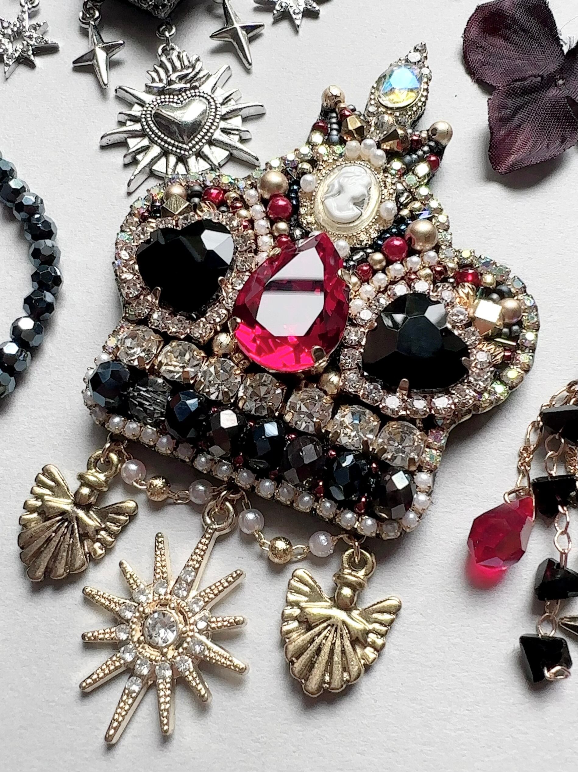 ビーズ刺繍のブローチ・ネックレス・バッグチャームの3wayです。