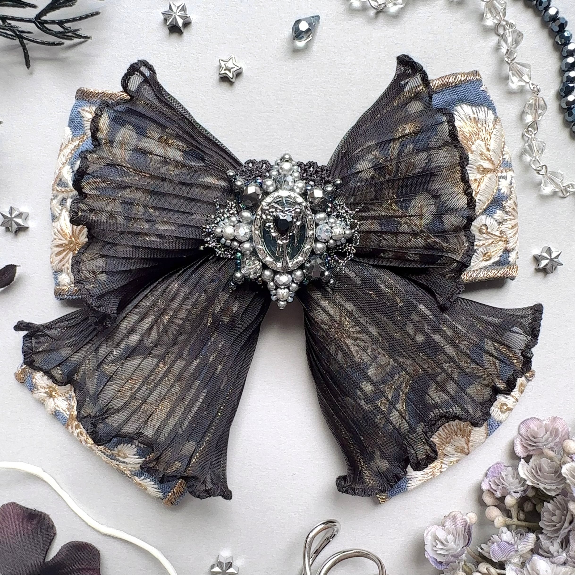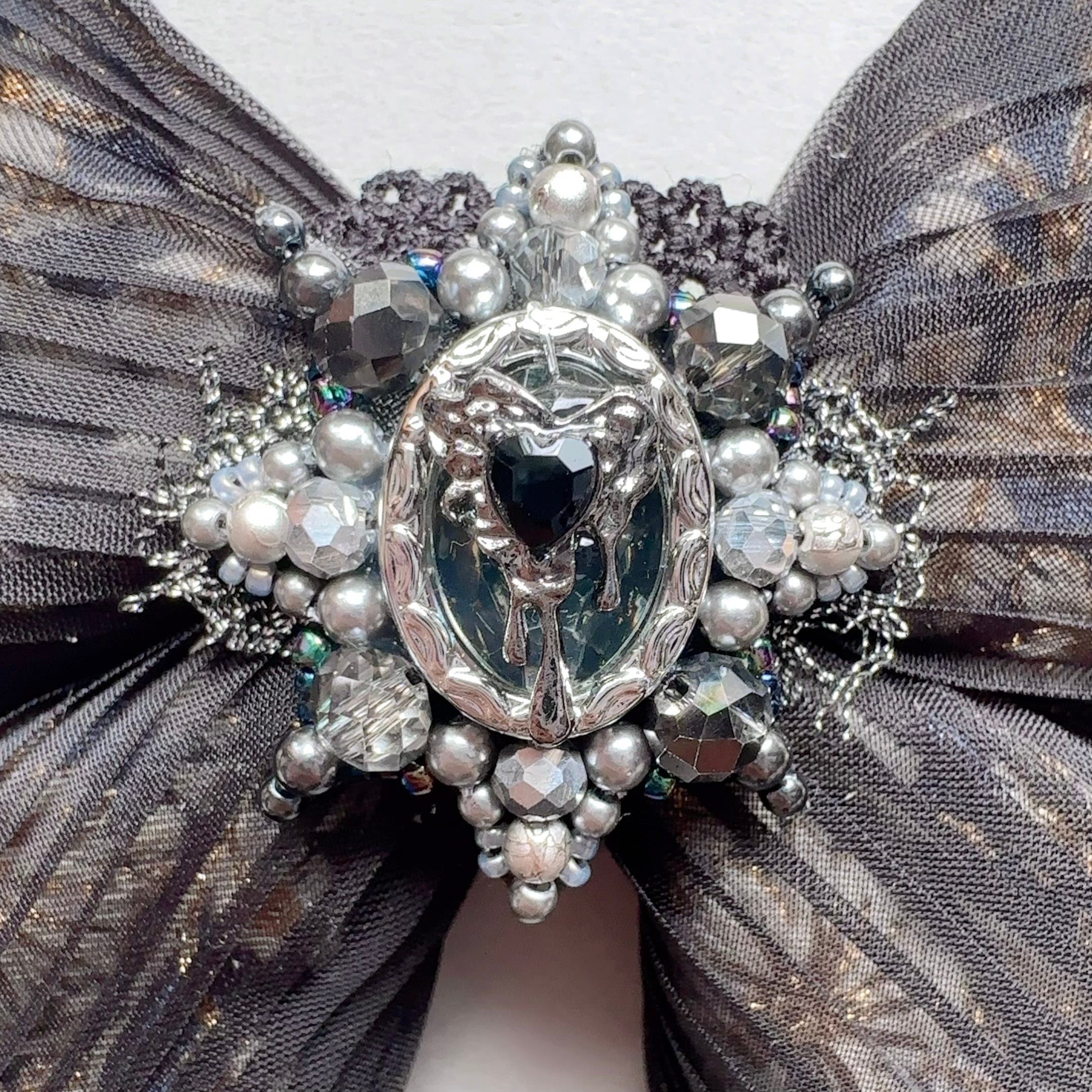 ビーズ刺繍と刺繍リボンのブローチ&クリップ、