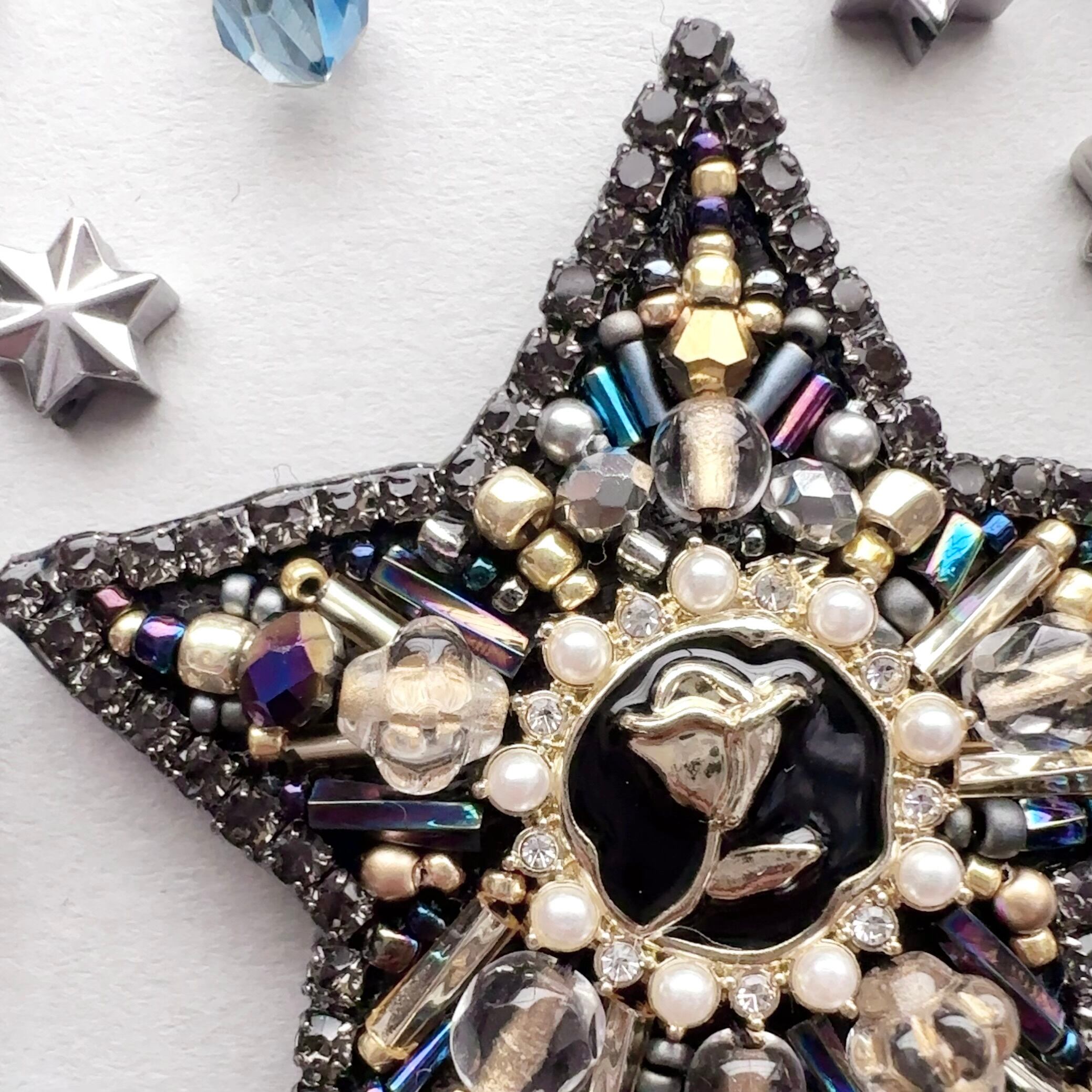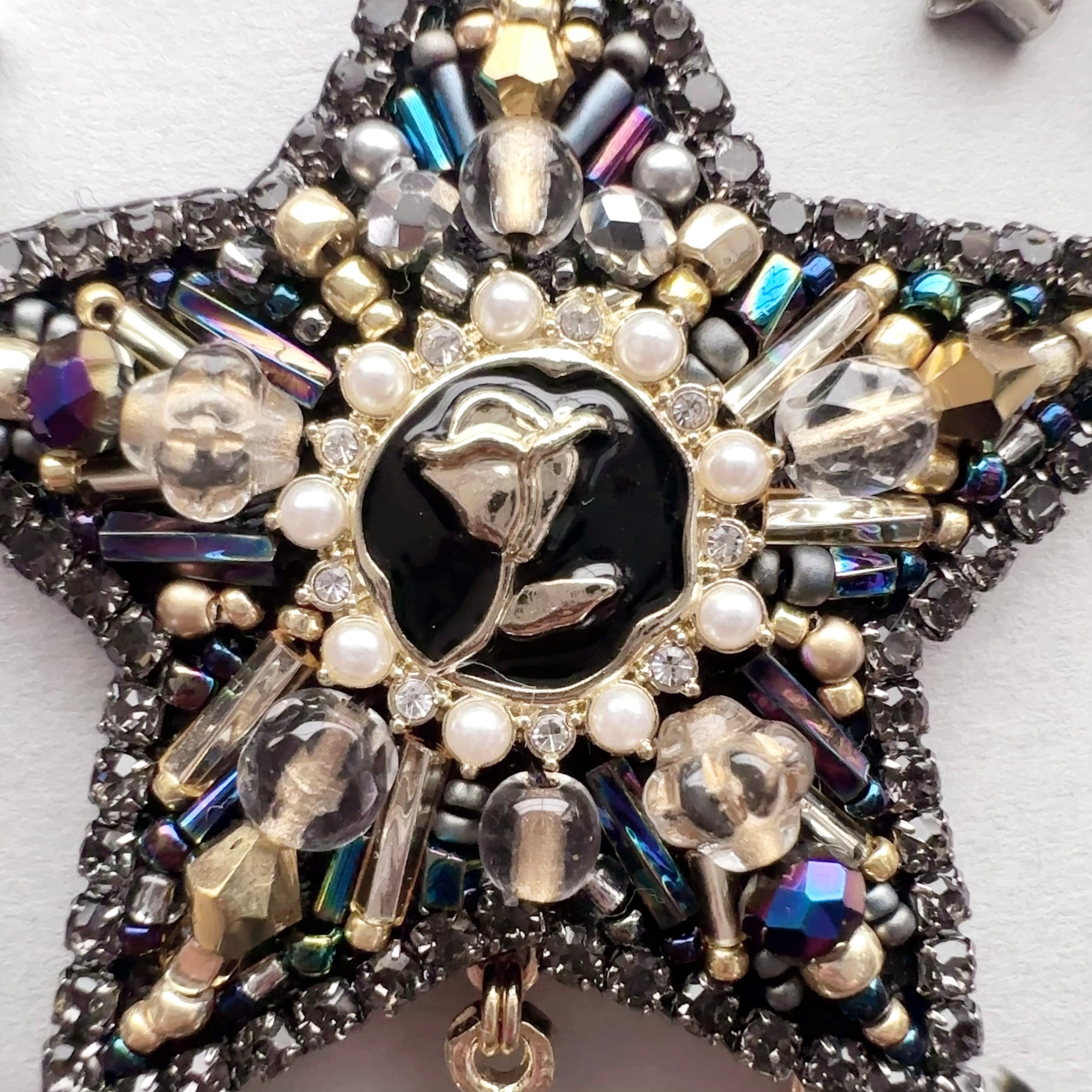 ビーズ刺繍のブローチ・ネックレス・バッグチャームの3wayです。