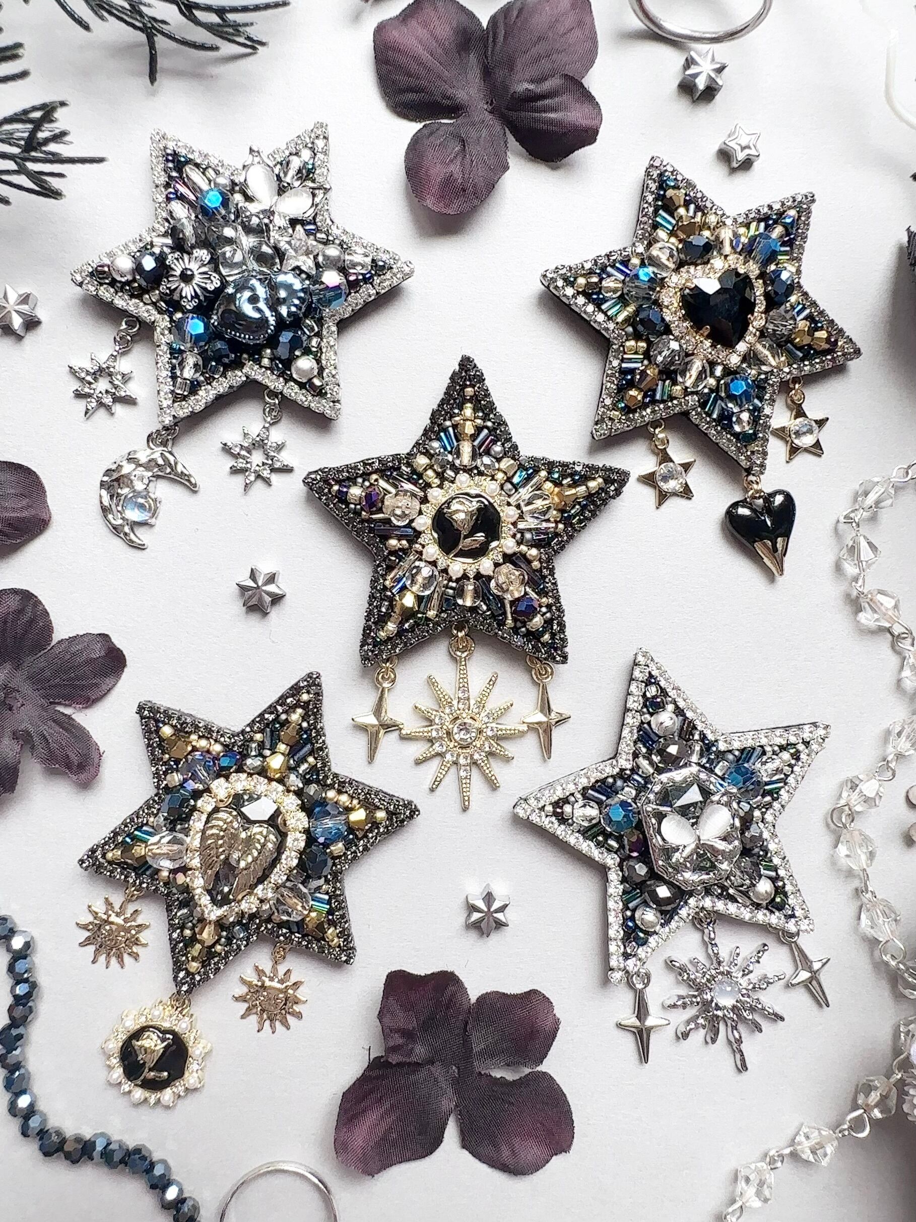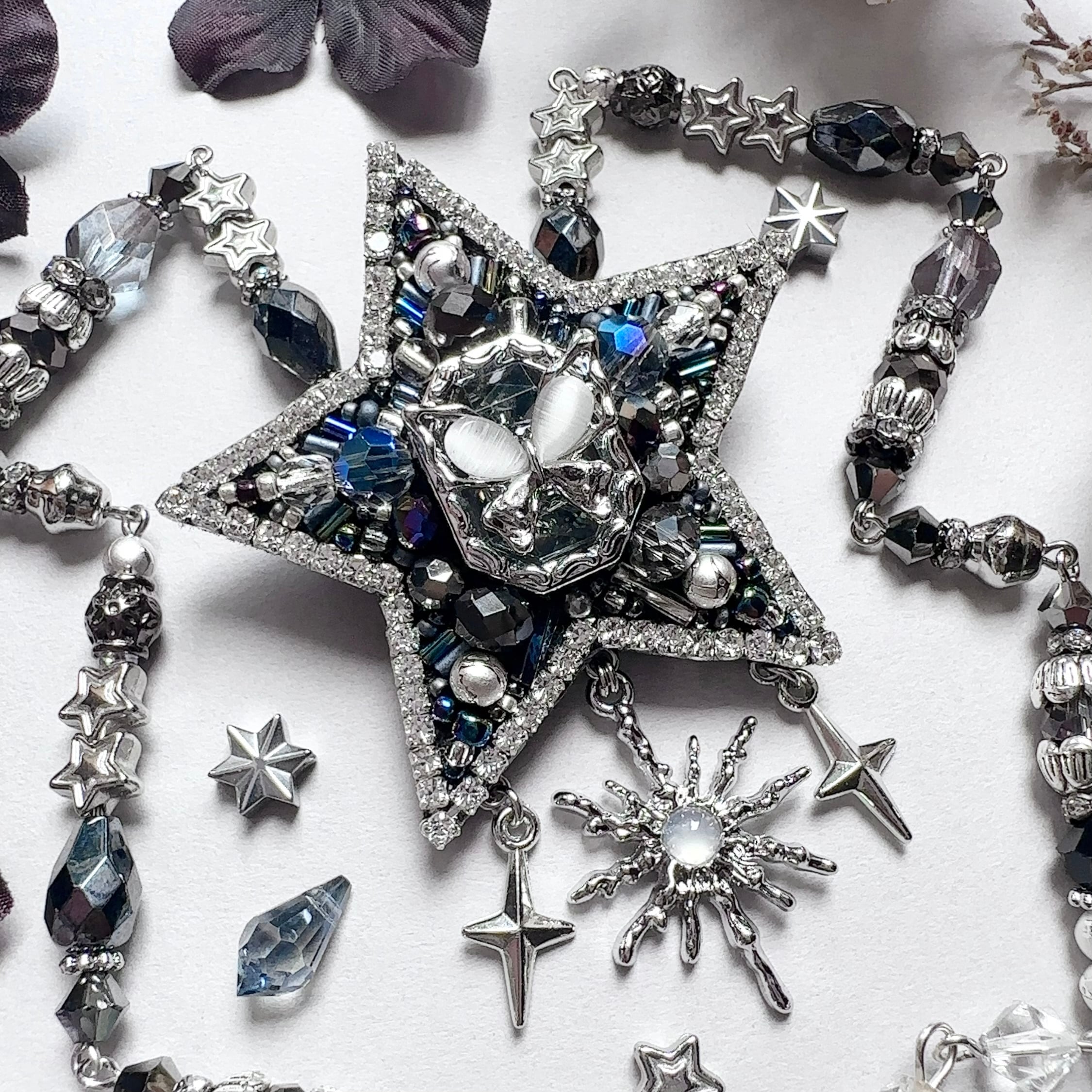 ビーズ刺繍のブローチ・ネックレス・バッグチャームの3wayです。