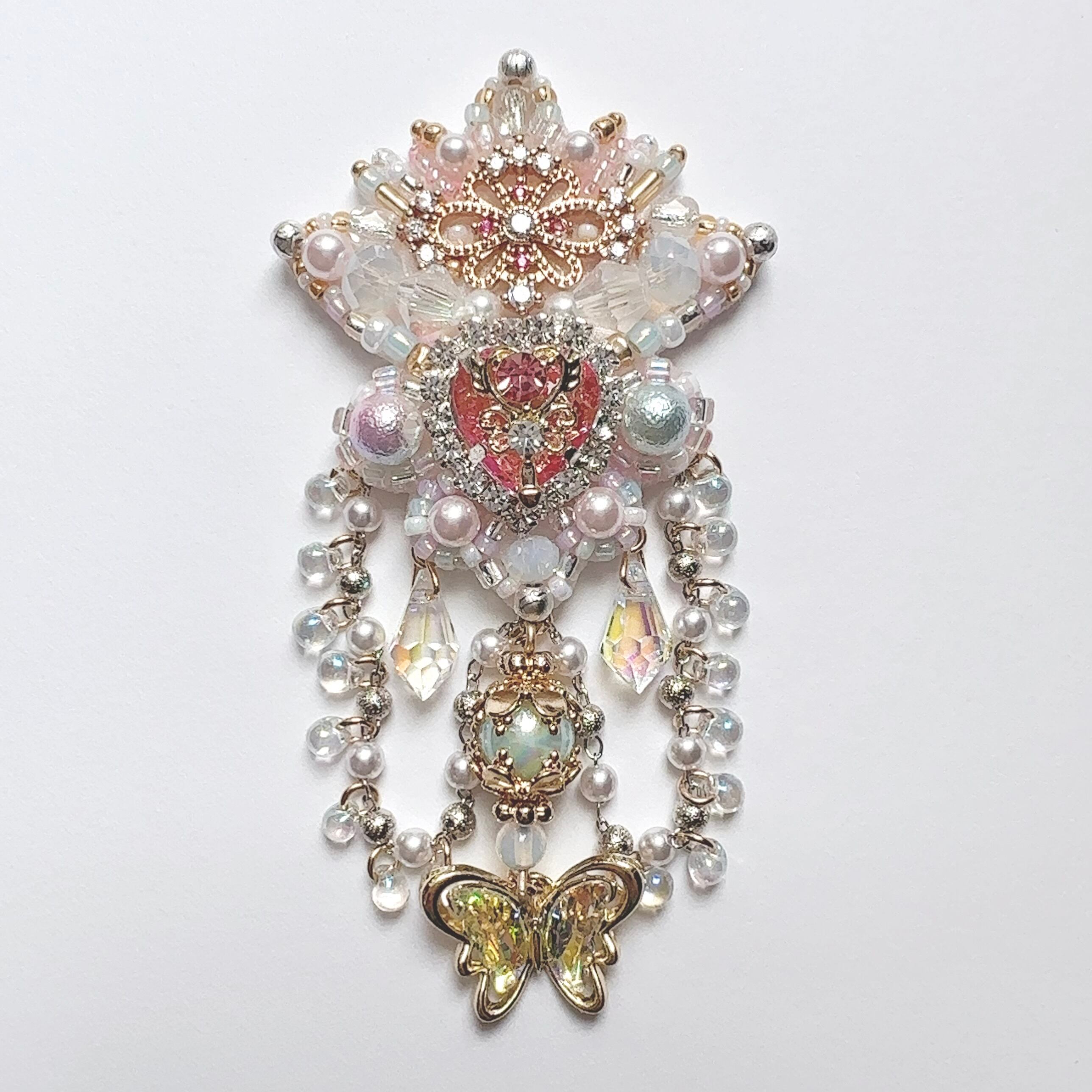 ビーズ刺繍のミニブローチ・ネックレス・バッグチャームの3wayです。