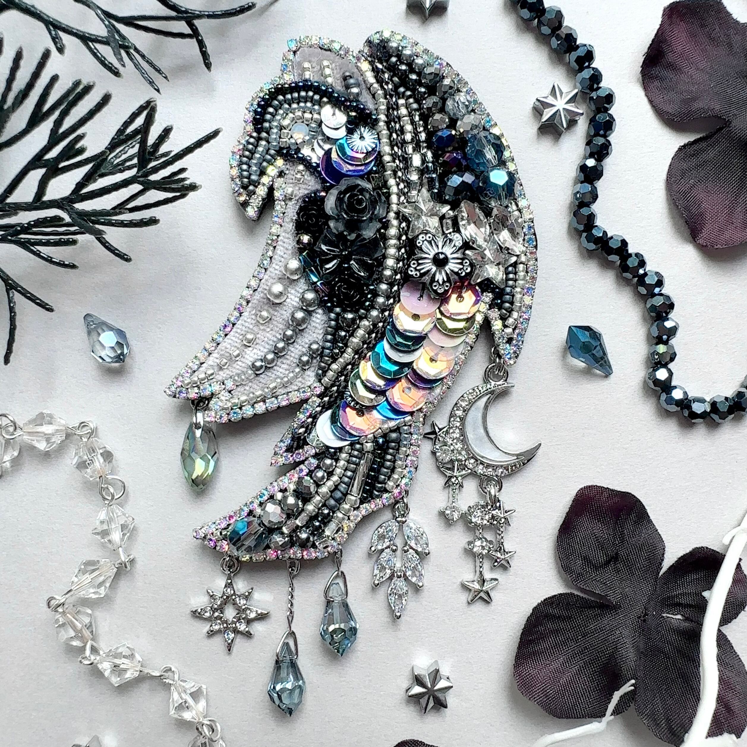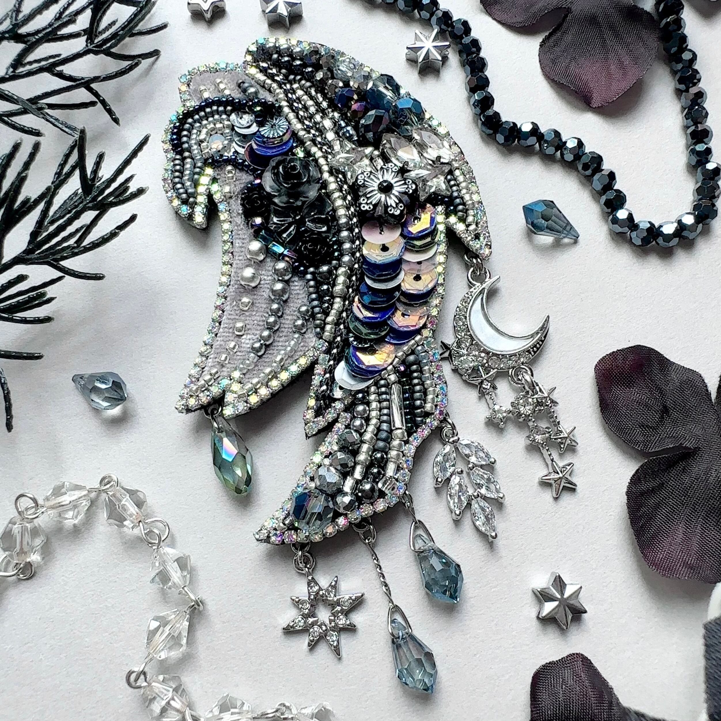 ビーズ刺繍のブローチ・ネックレス・バッグチャームの3wayです。