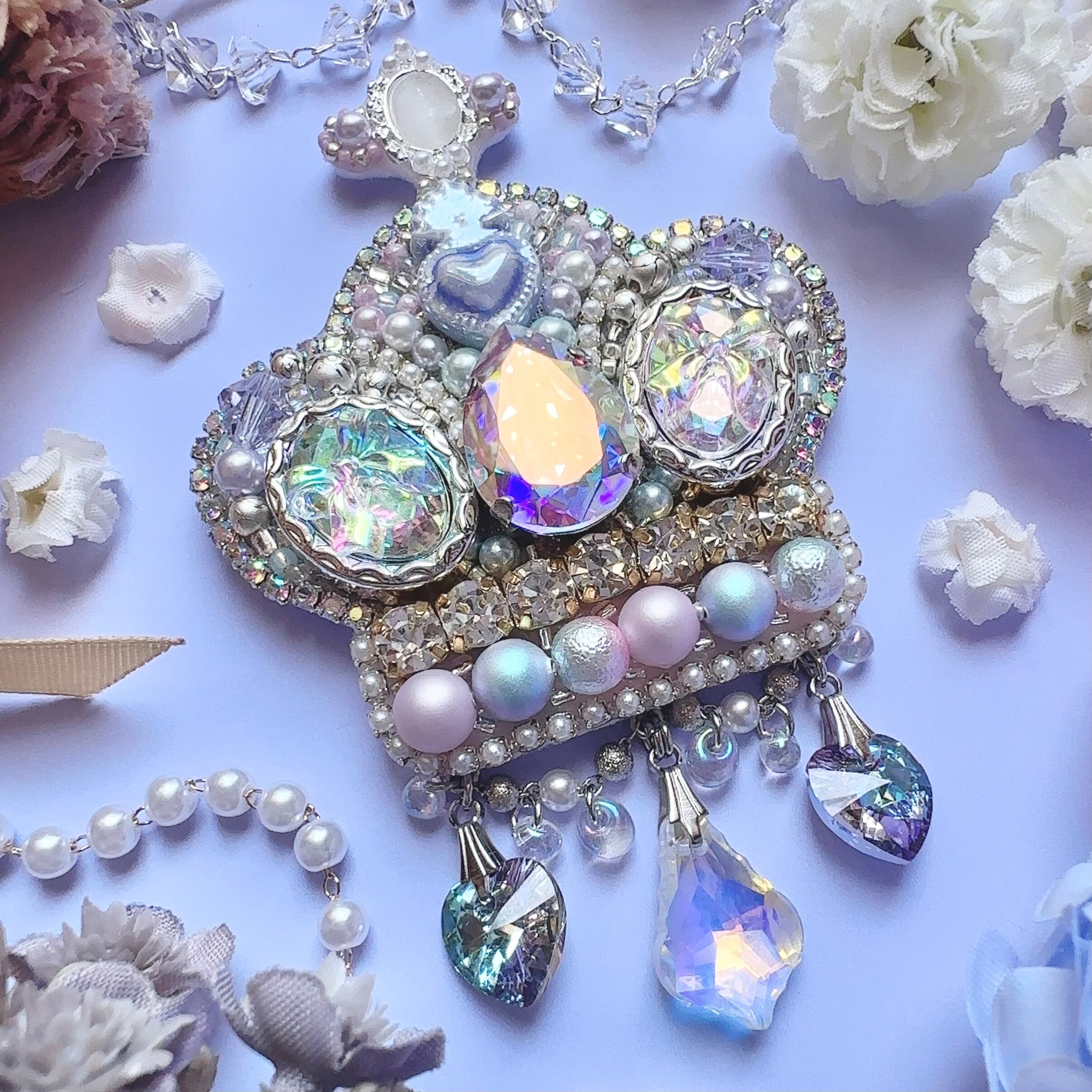 ビーズ刺繍のブローチ・ネックレス・バッグチャームの3wayです。