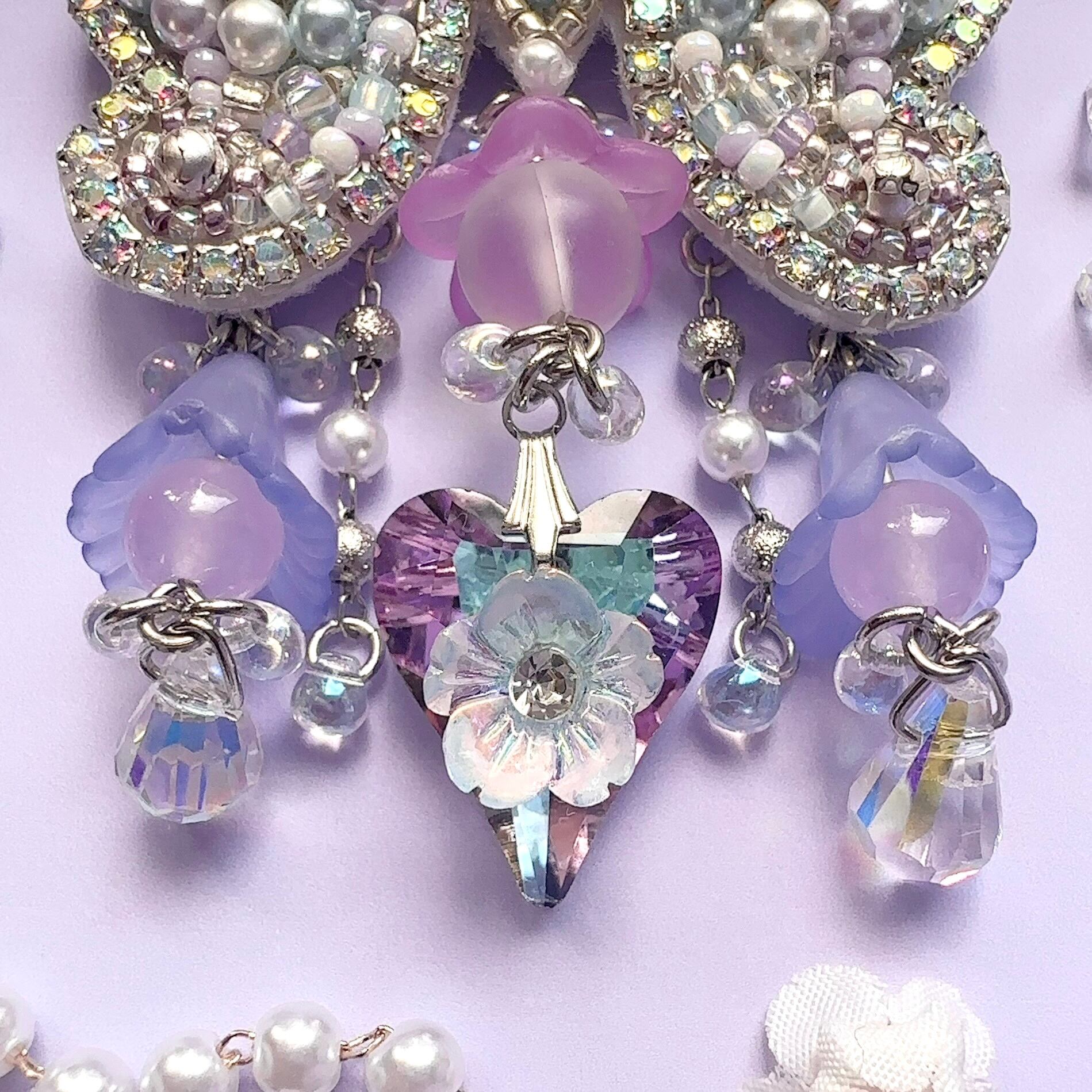 ビーズ刺繍のブローチ・ネックレス・バッグチャームの3wayです。