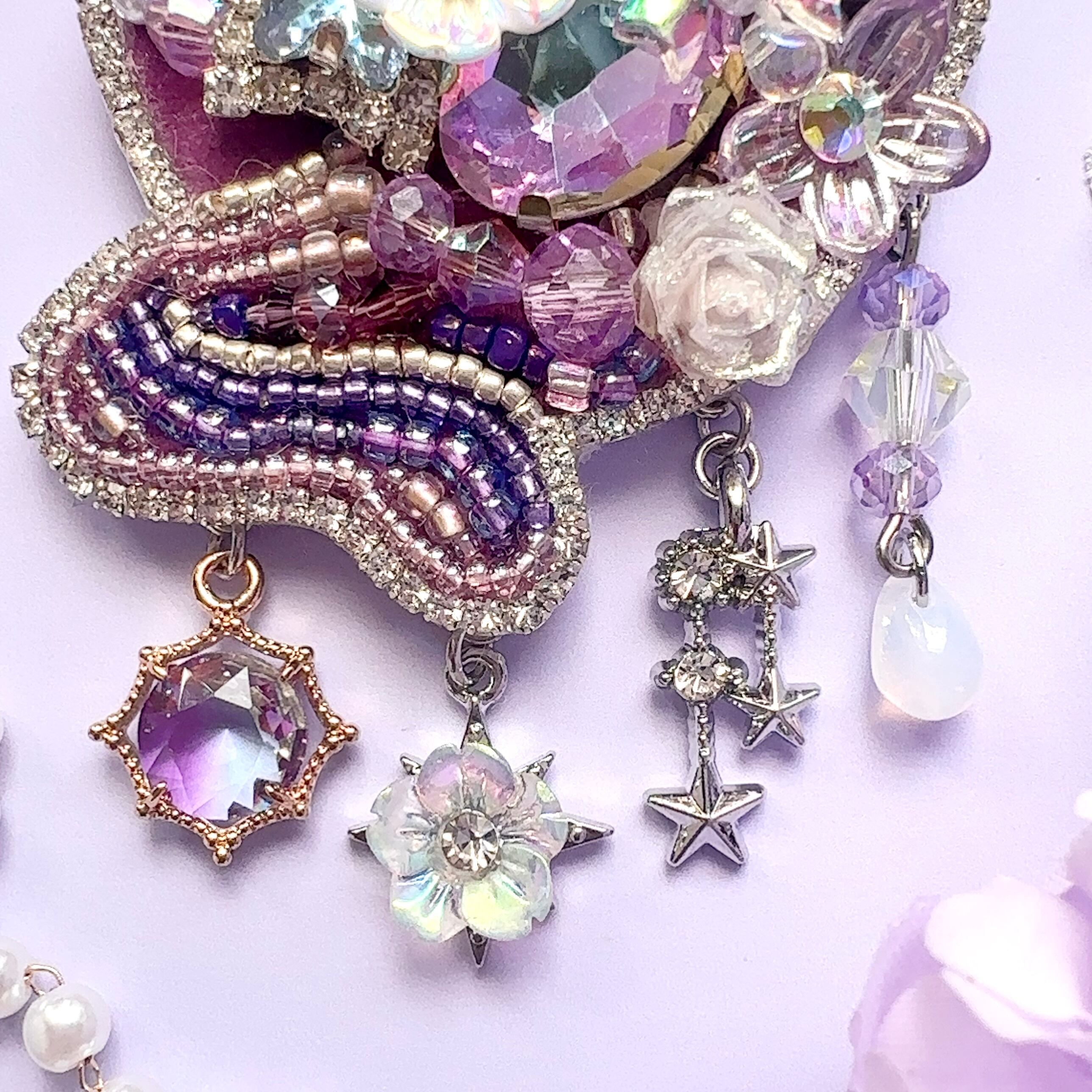 ビーズ刺繍のブローチ・ネックレス・バッグチャームの3wayです。