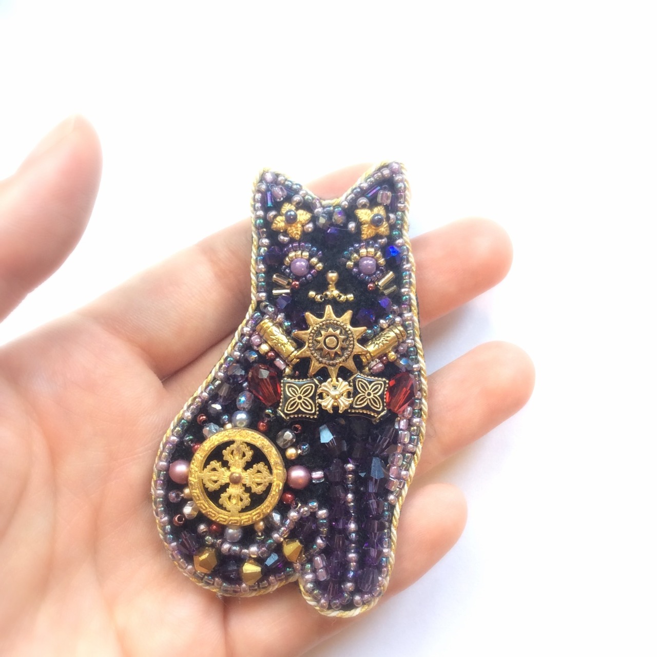 羊毛フェルトの土台にたっぷりのビーズ刺繍のブローチです。