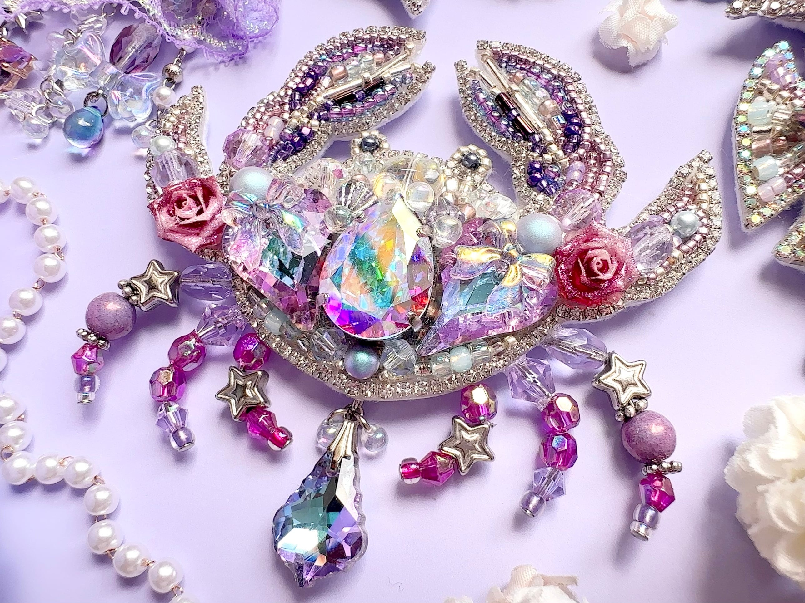 ビーズ刺繍のブローチ・ネックレス・バッグチャームの3wayです。