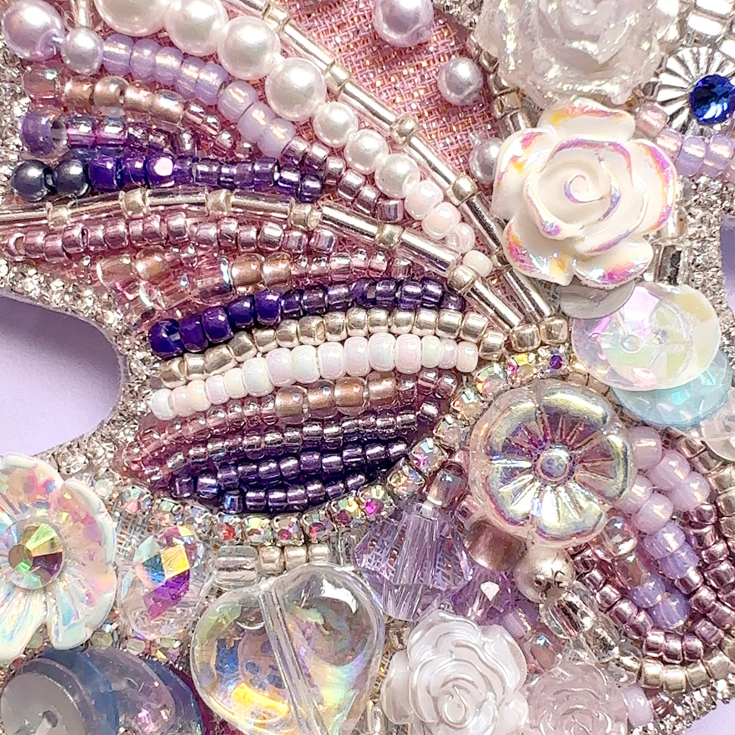 ビーズ刺繍のブローチ・ネックレス・バッグチャームの3wayです。