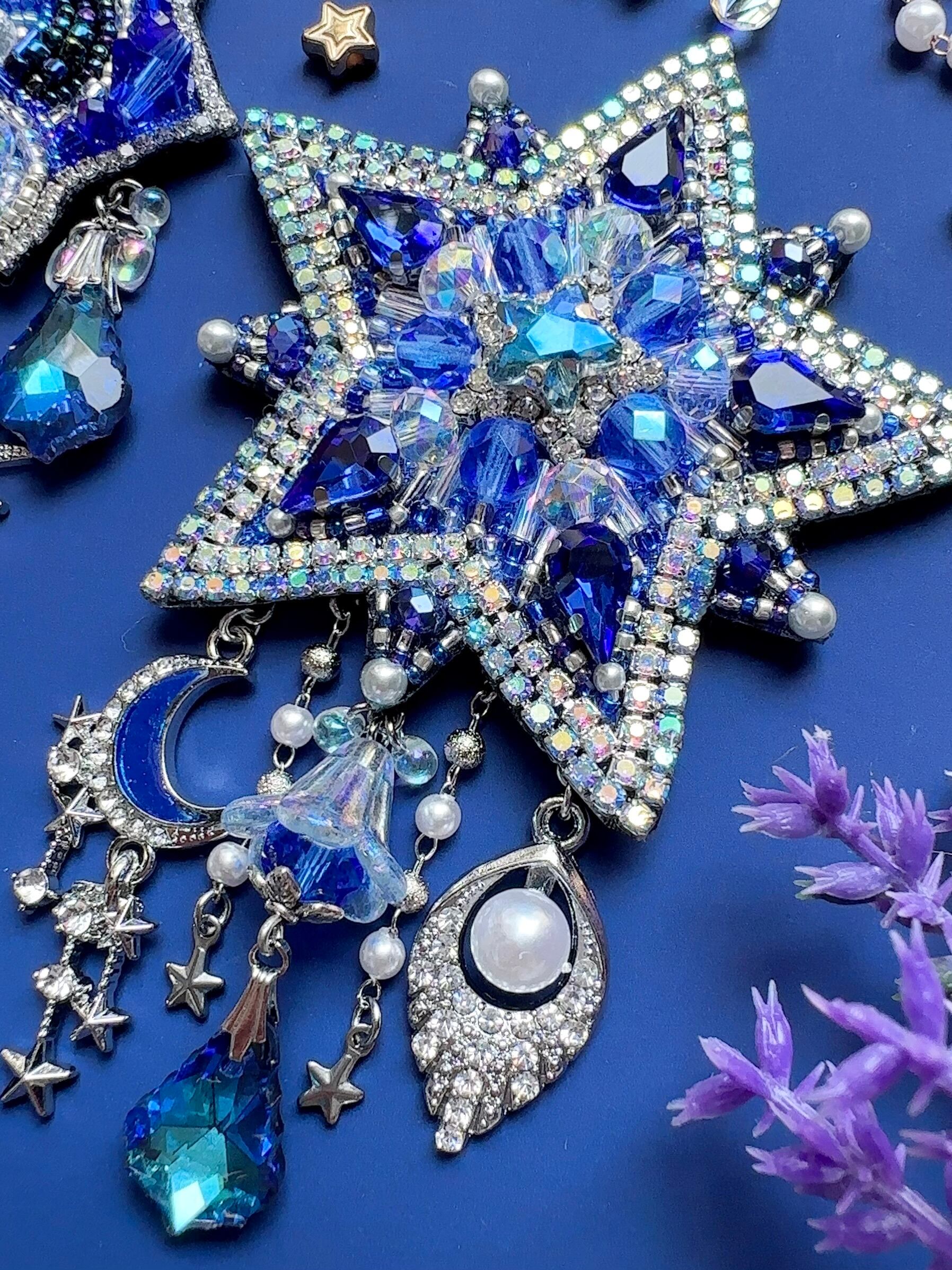 ビーズ刺繍のブローチ・ネックレス・バッグチャームの3wayです。