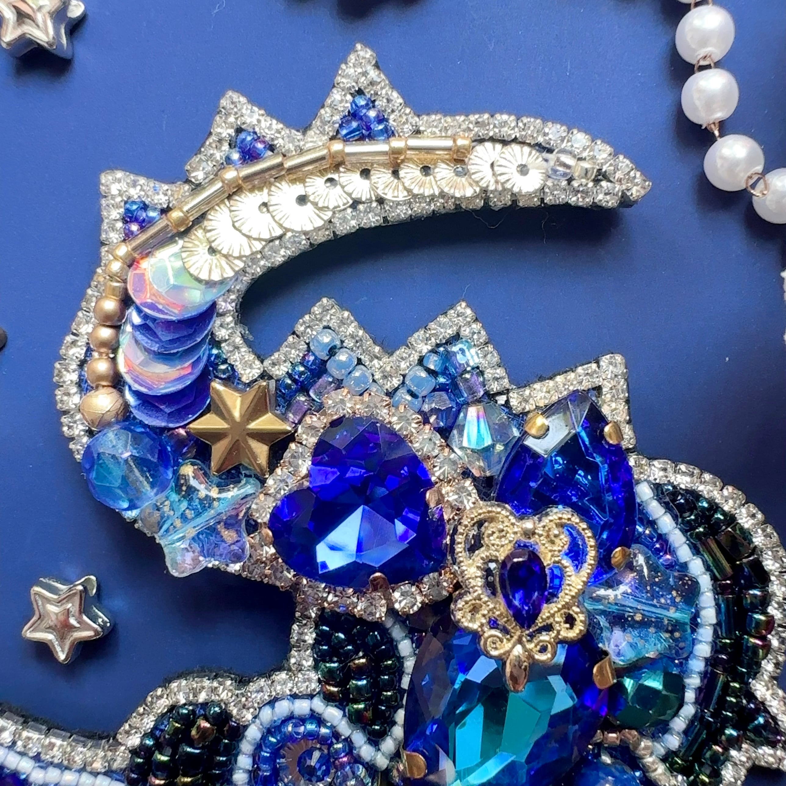 ビーズ刺繍のブローチ・ネックレス・バッグチャームの3wayです。