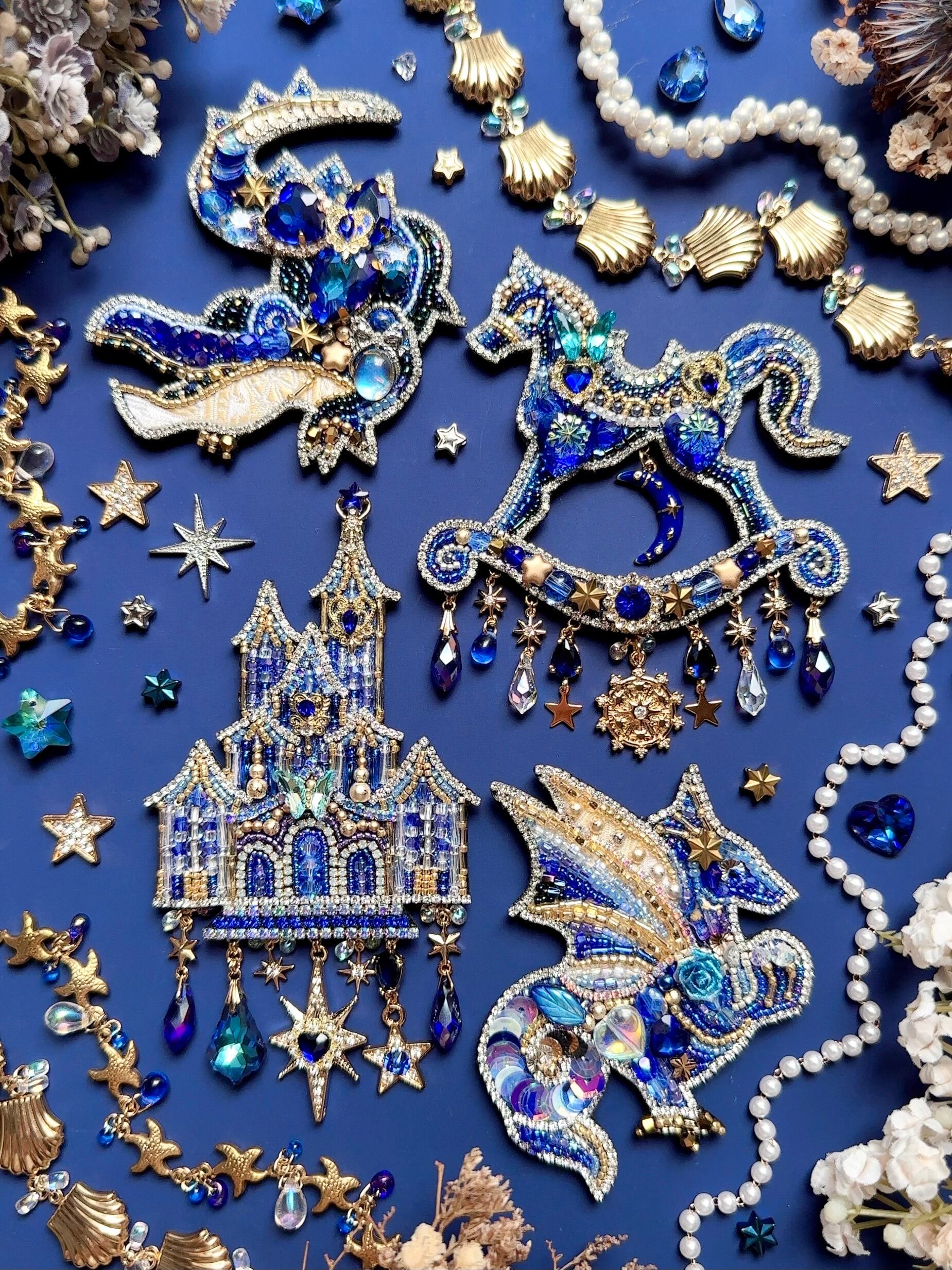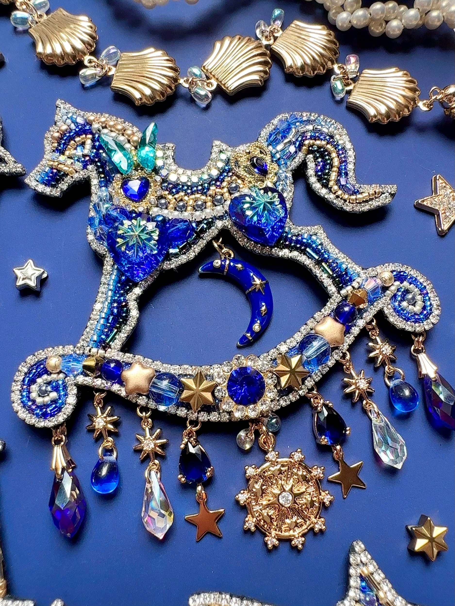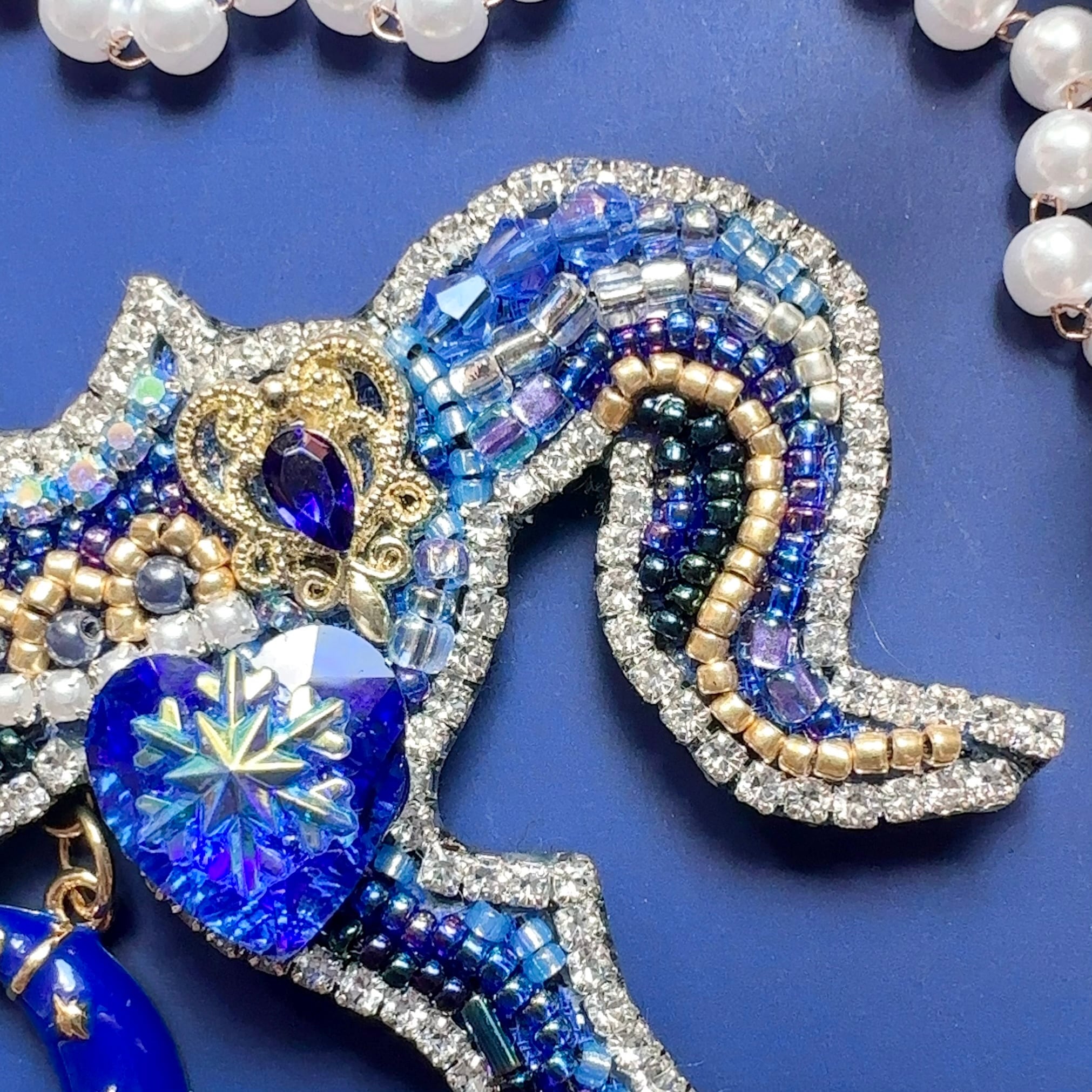 ビーズ刺繍のブローチ・ネックレス・バッグチャームの3wayです。