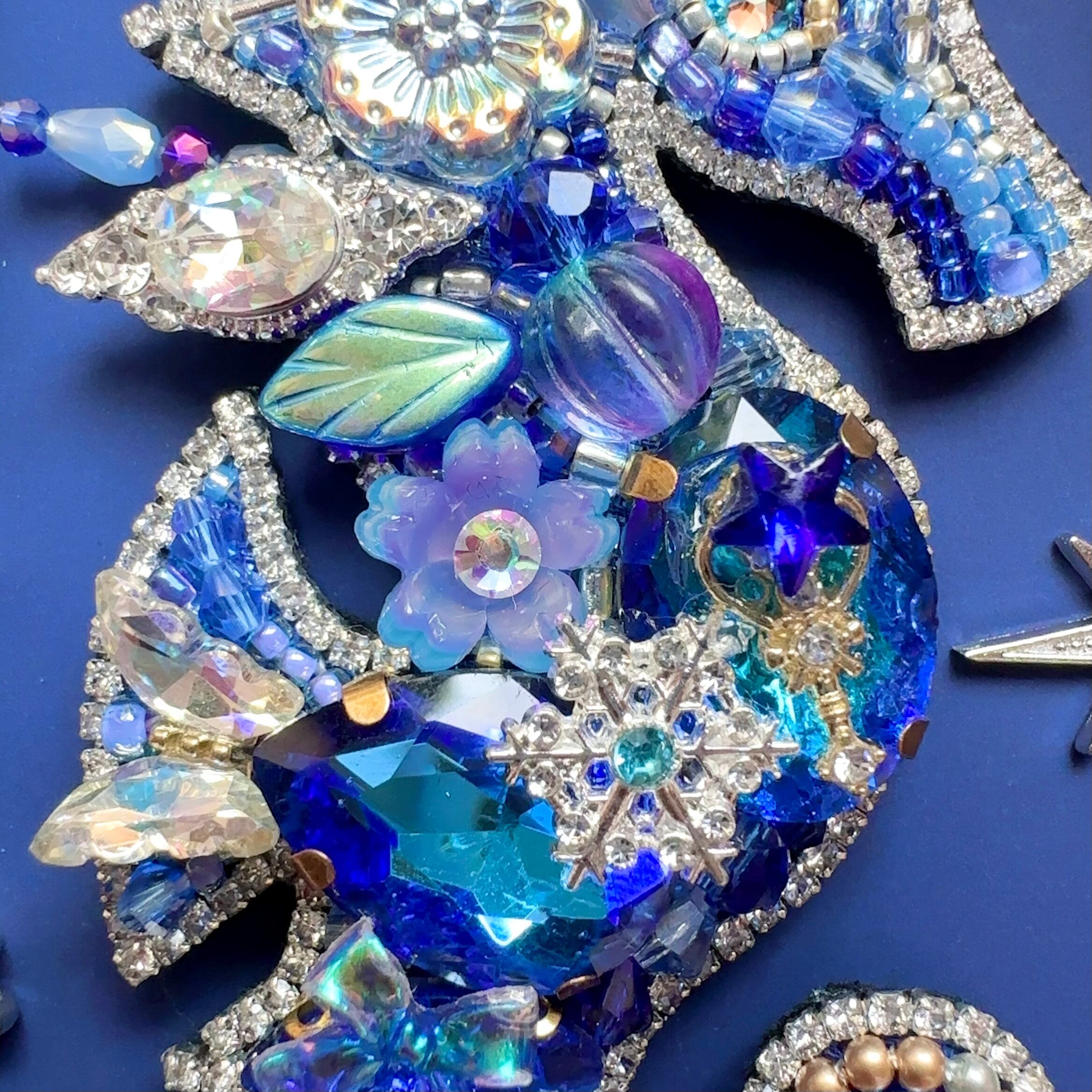 ビーズ刺繍のブローチ・ネックレス・バッグチャームの3wayです。