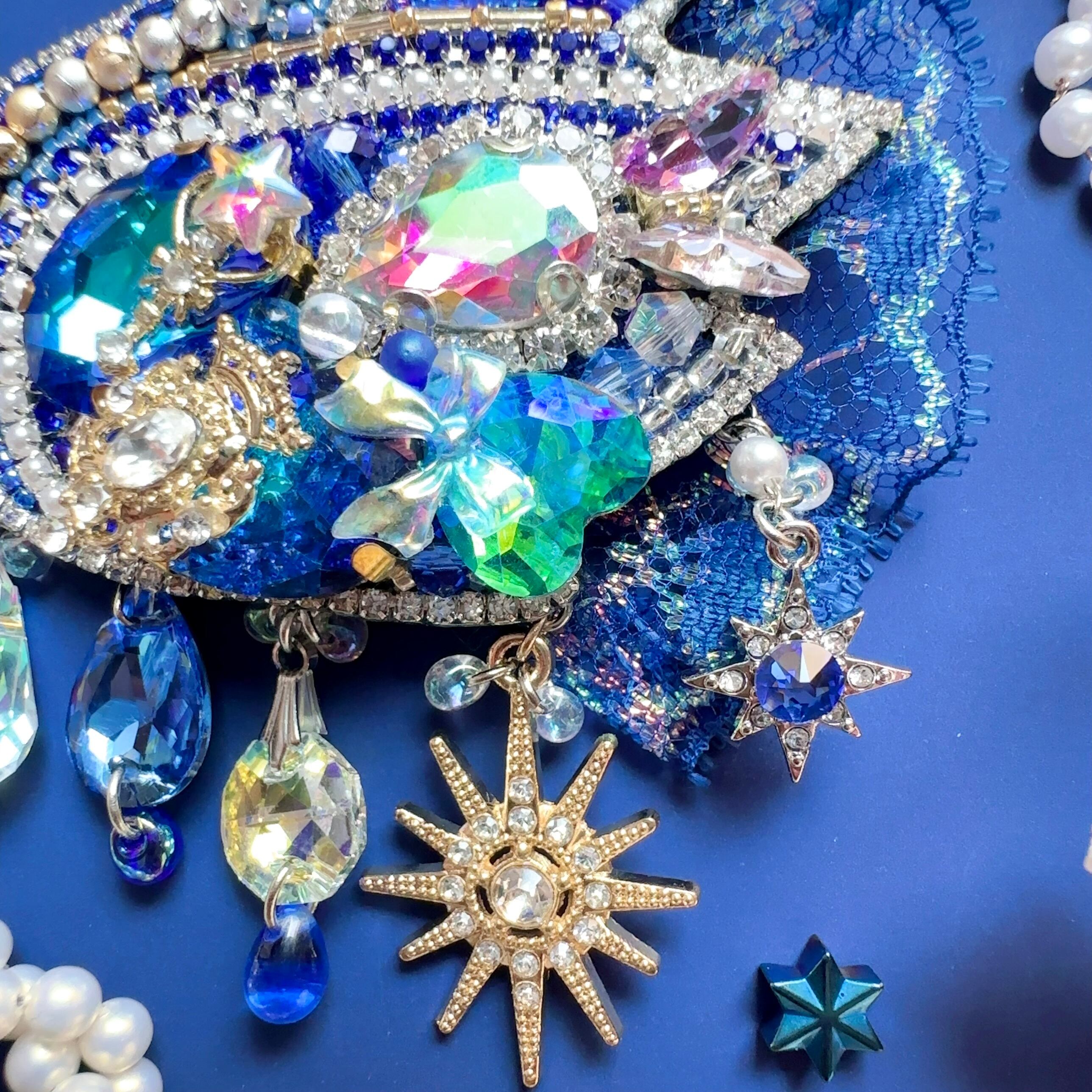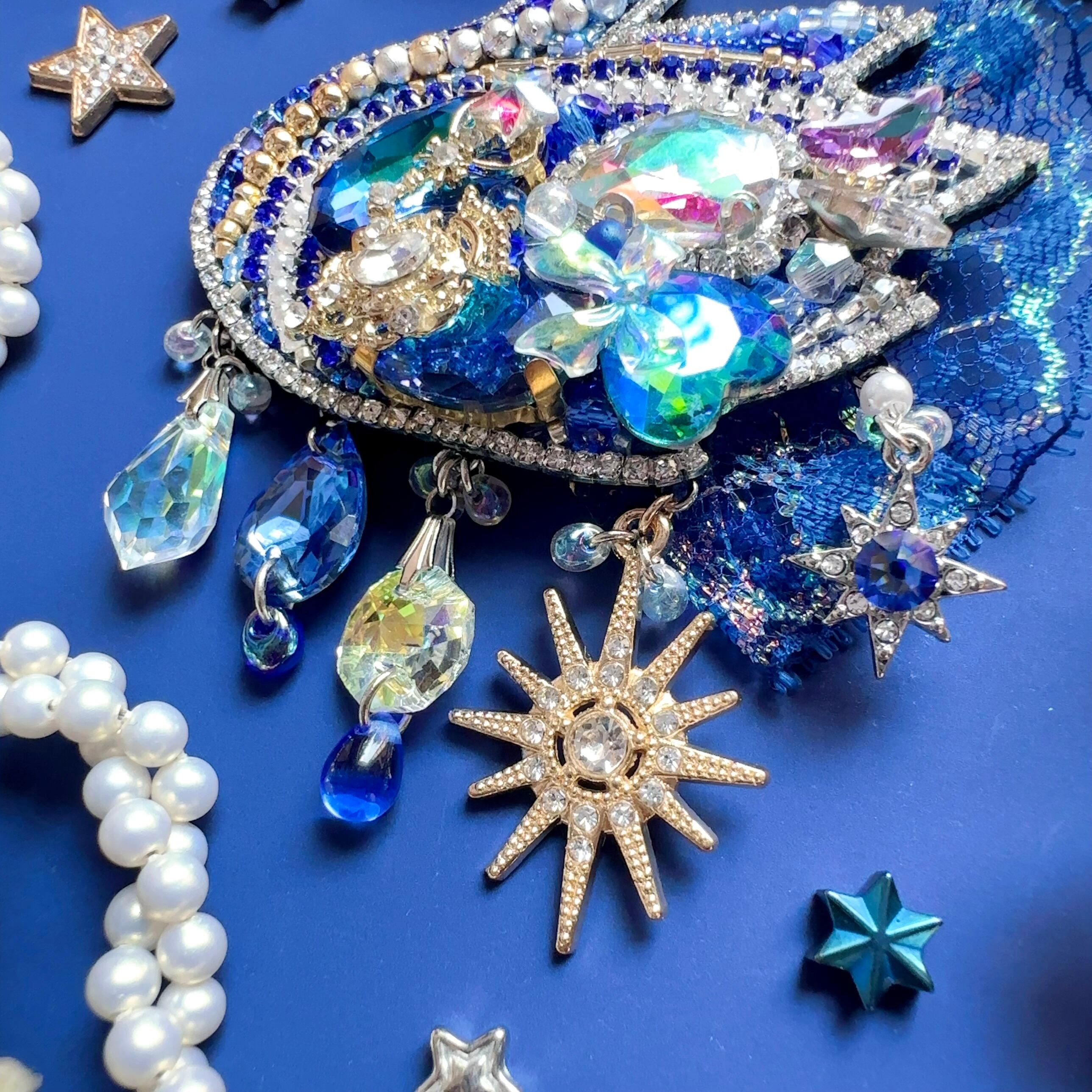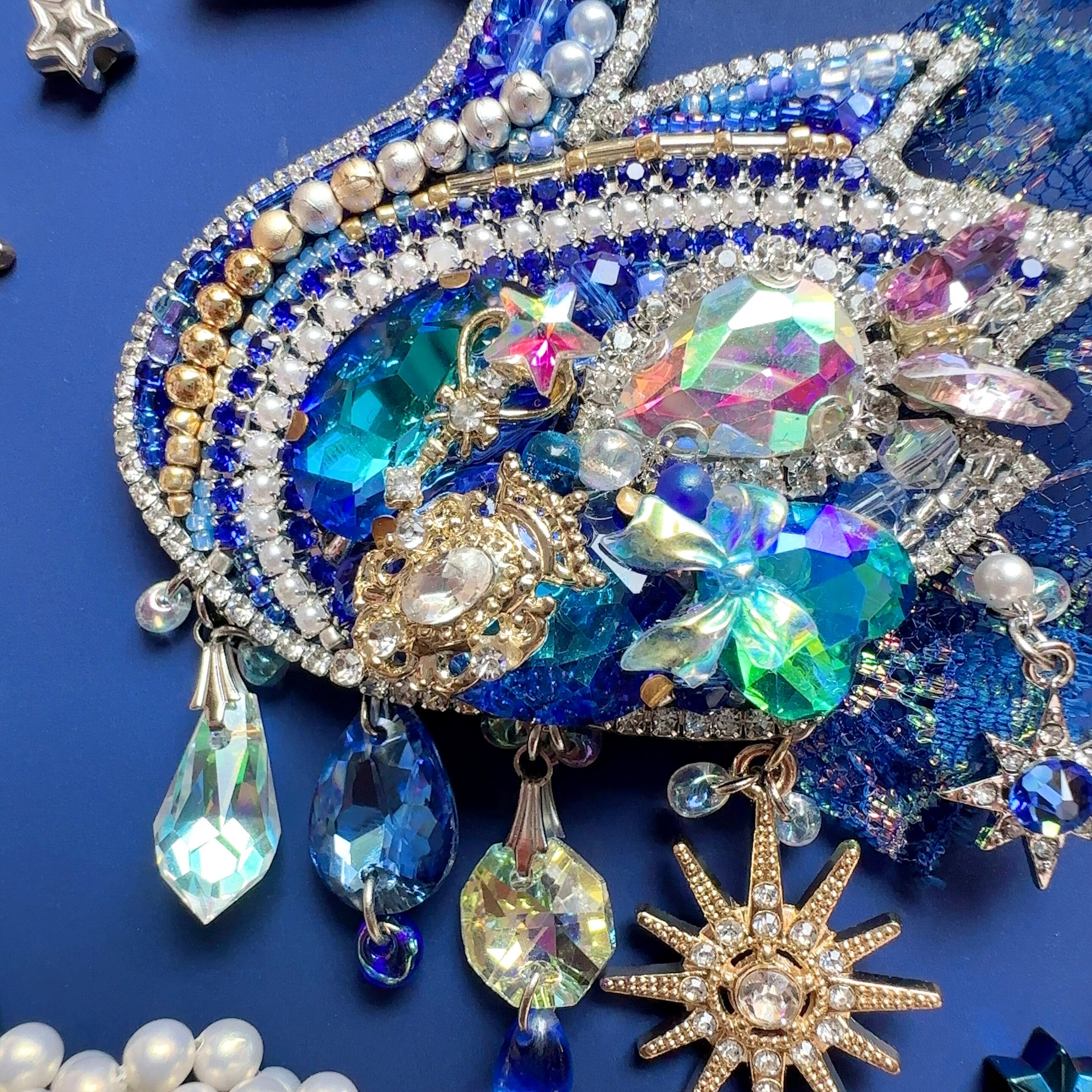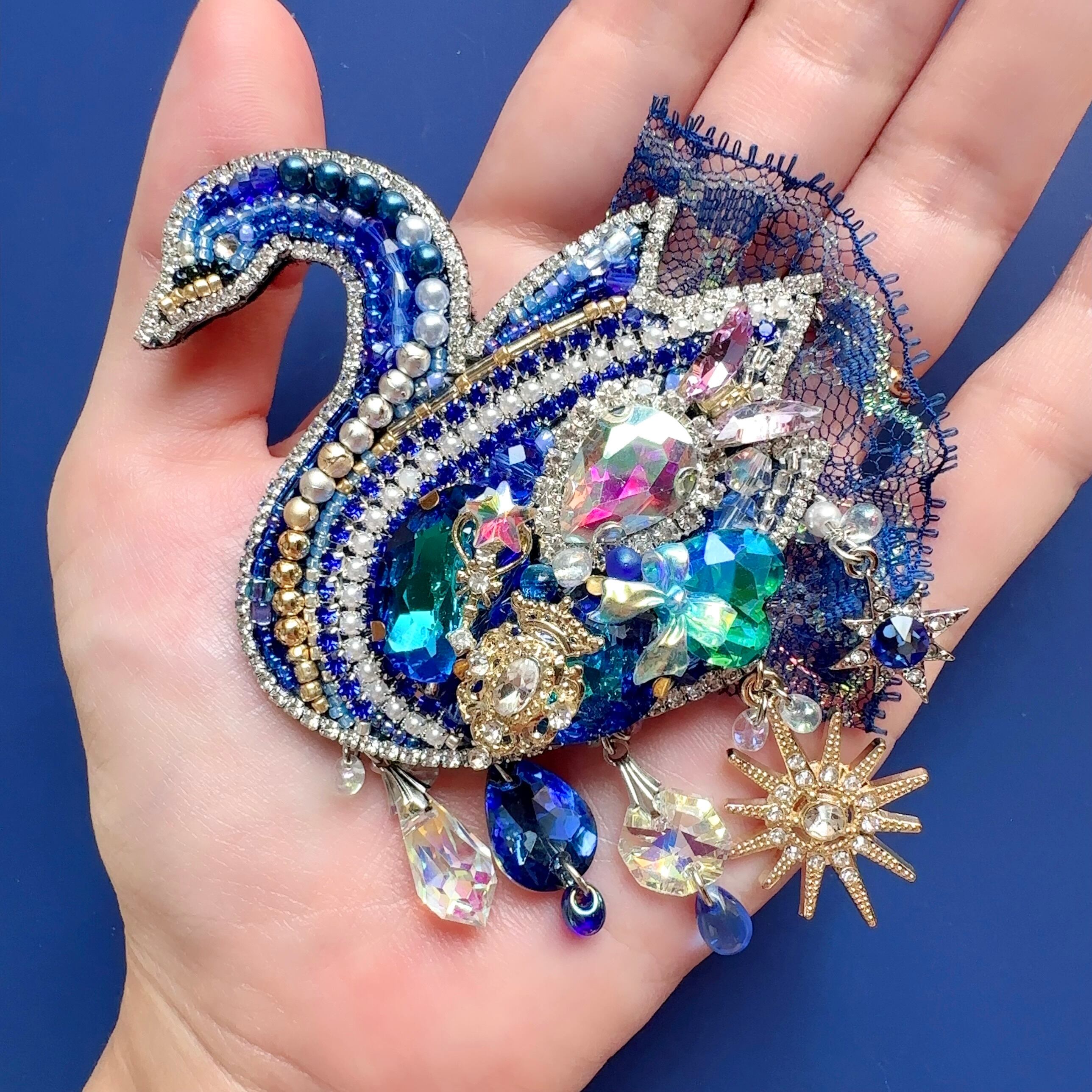 ビーズ刺繍のブローチ・ネックレス・バッグチャームの3wayです。