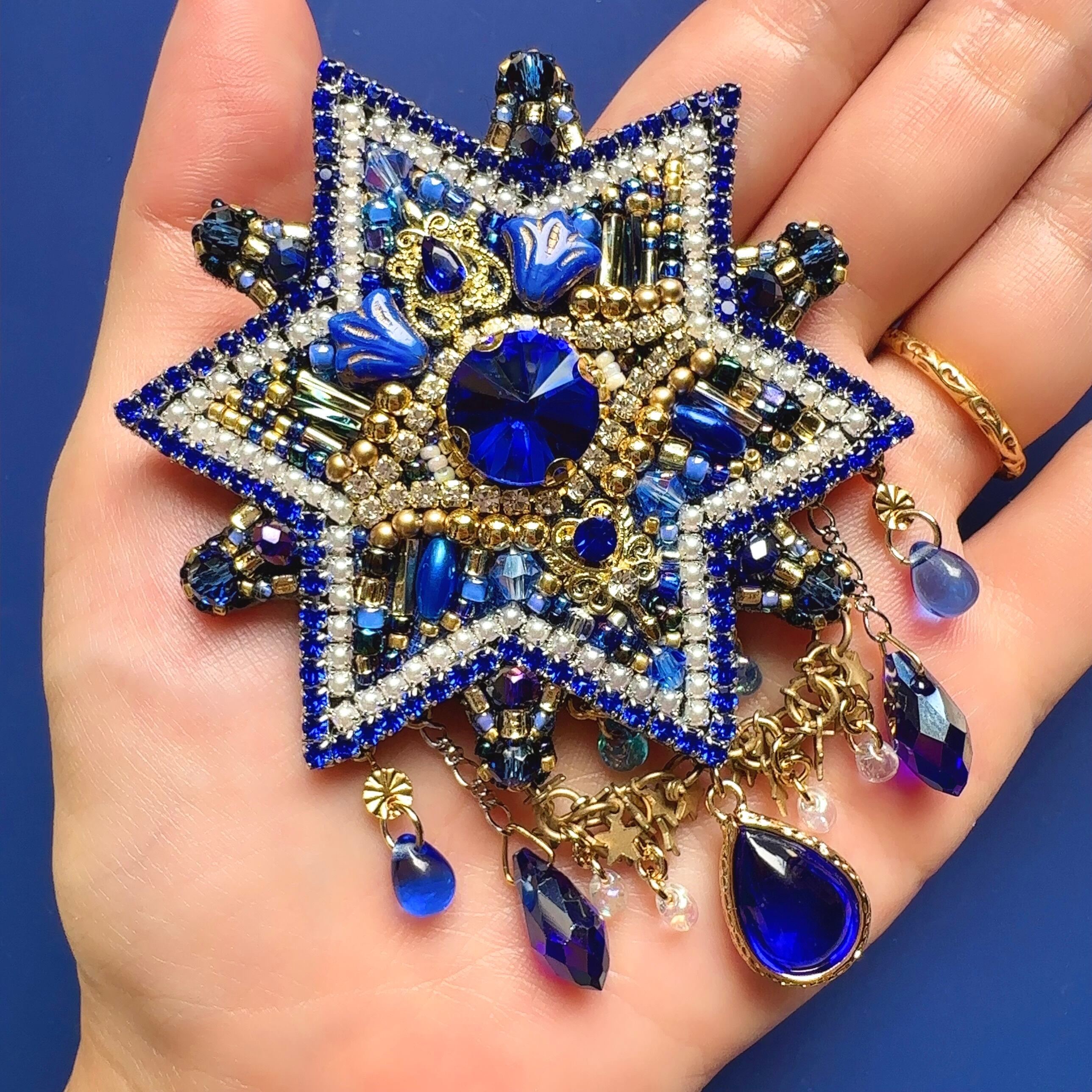 ビーズ刺繍のブローチ・ネックレス・バッグチャームの3wayです。
