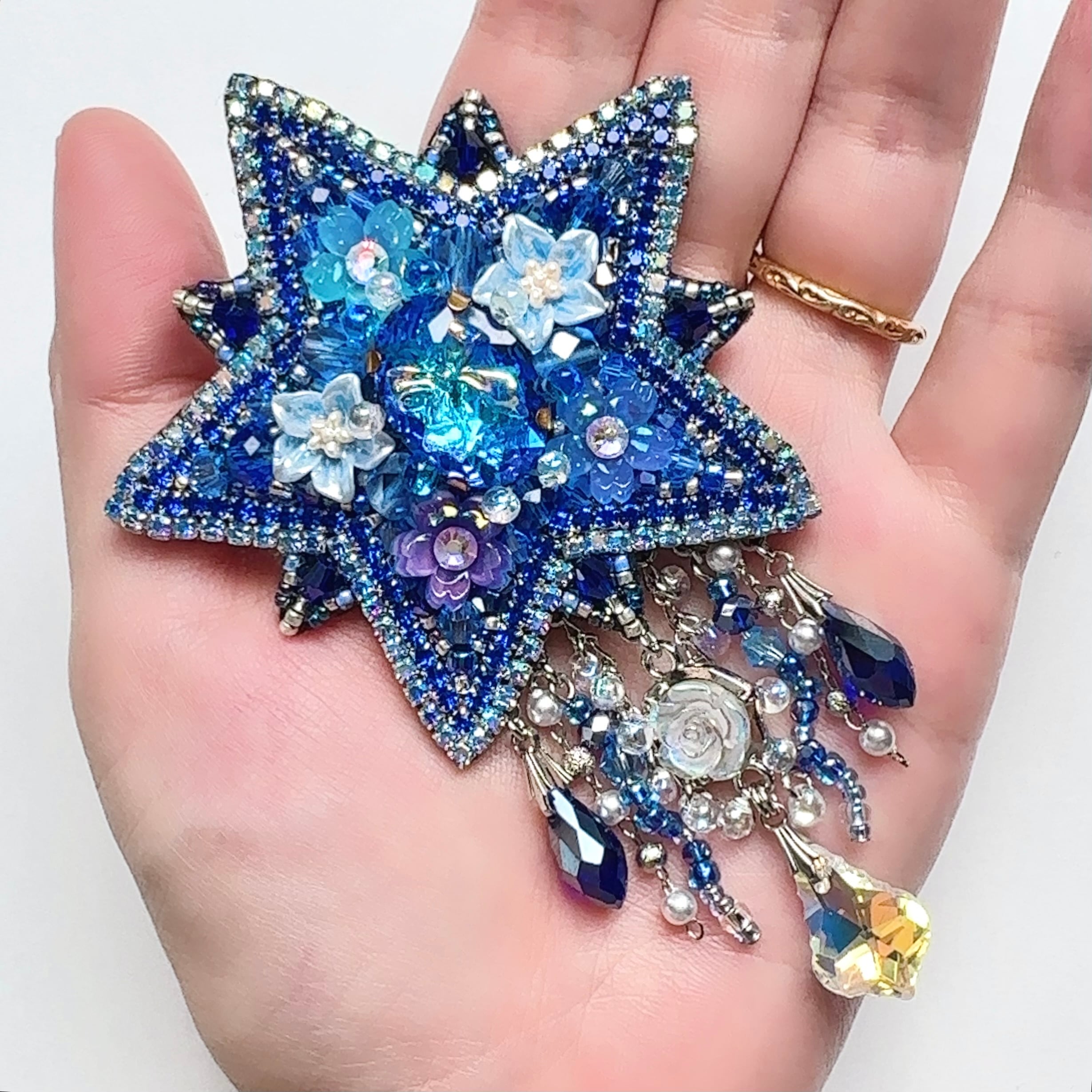 ビーズ刺繍のブローチ・ネックレス・バッグチャームの3wayです。