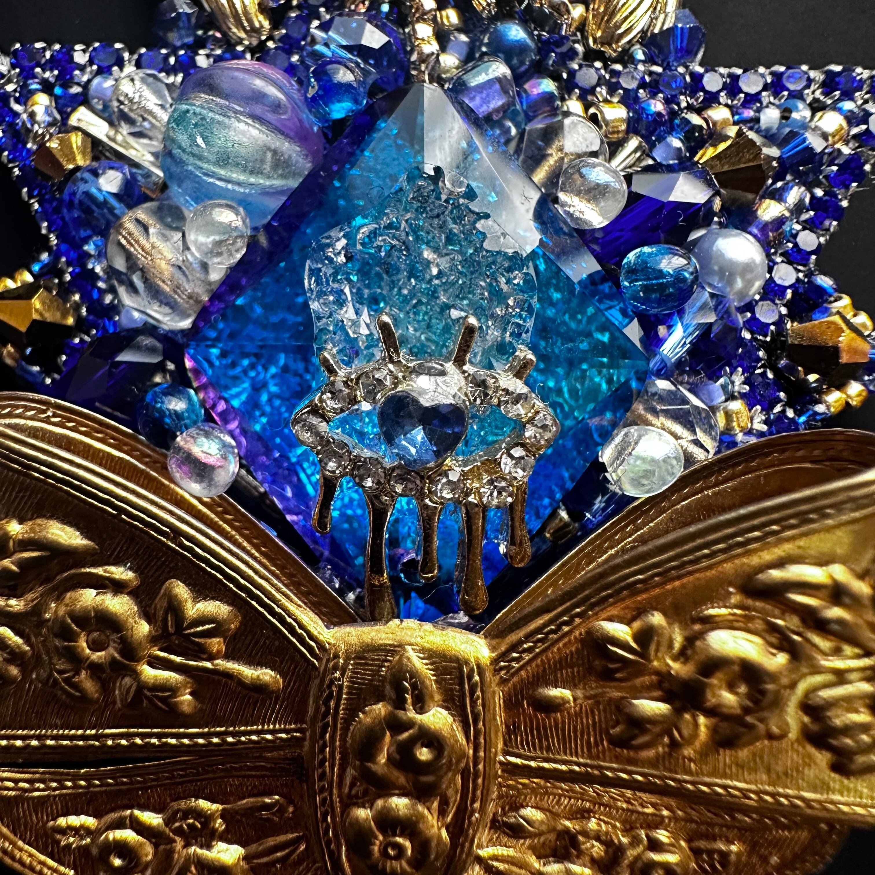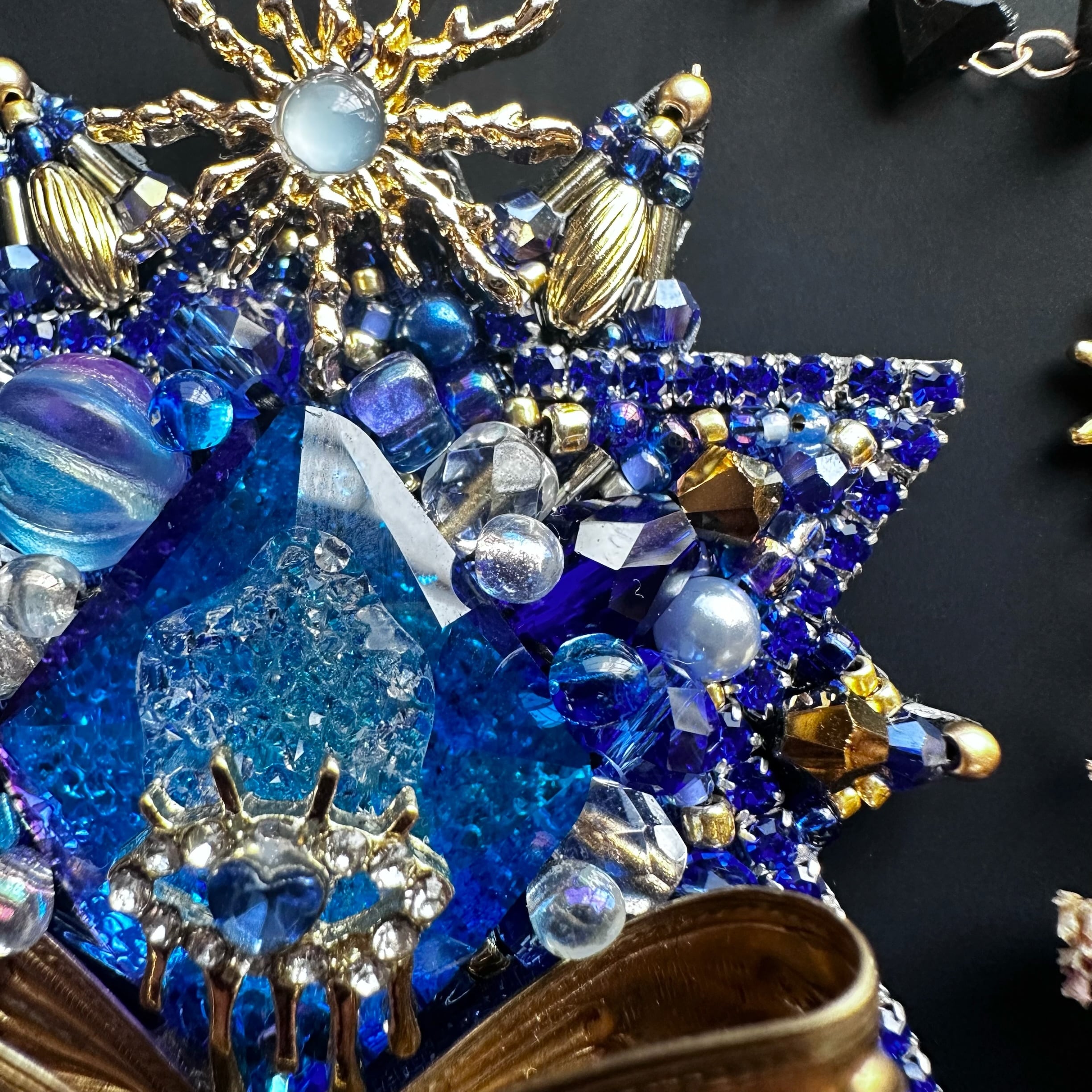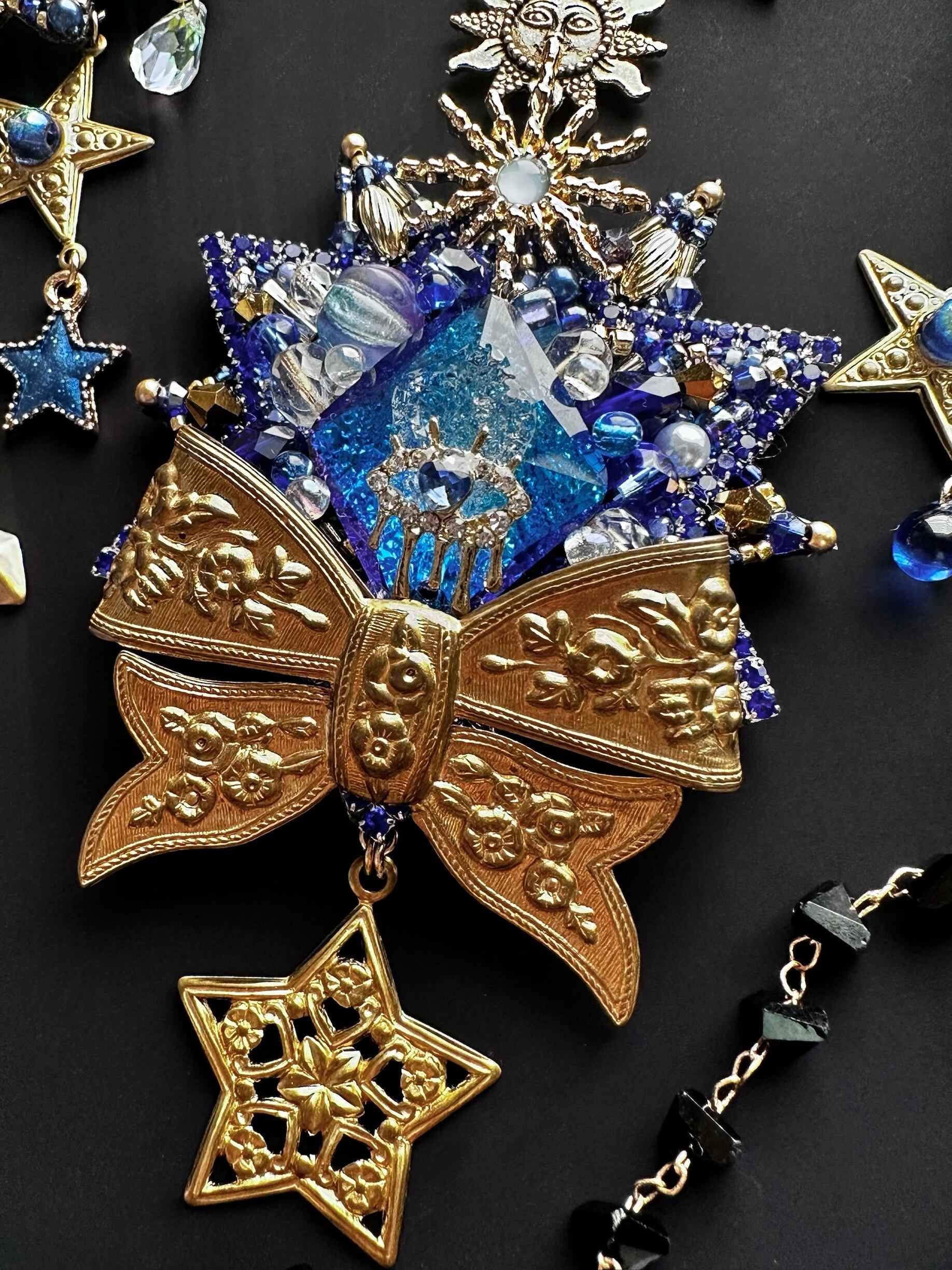 ビーズ刺繍のブローチ・ネックレス・バッグチャームの3wayです。