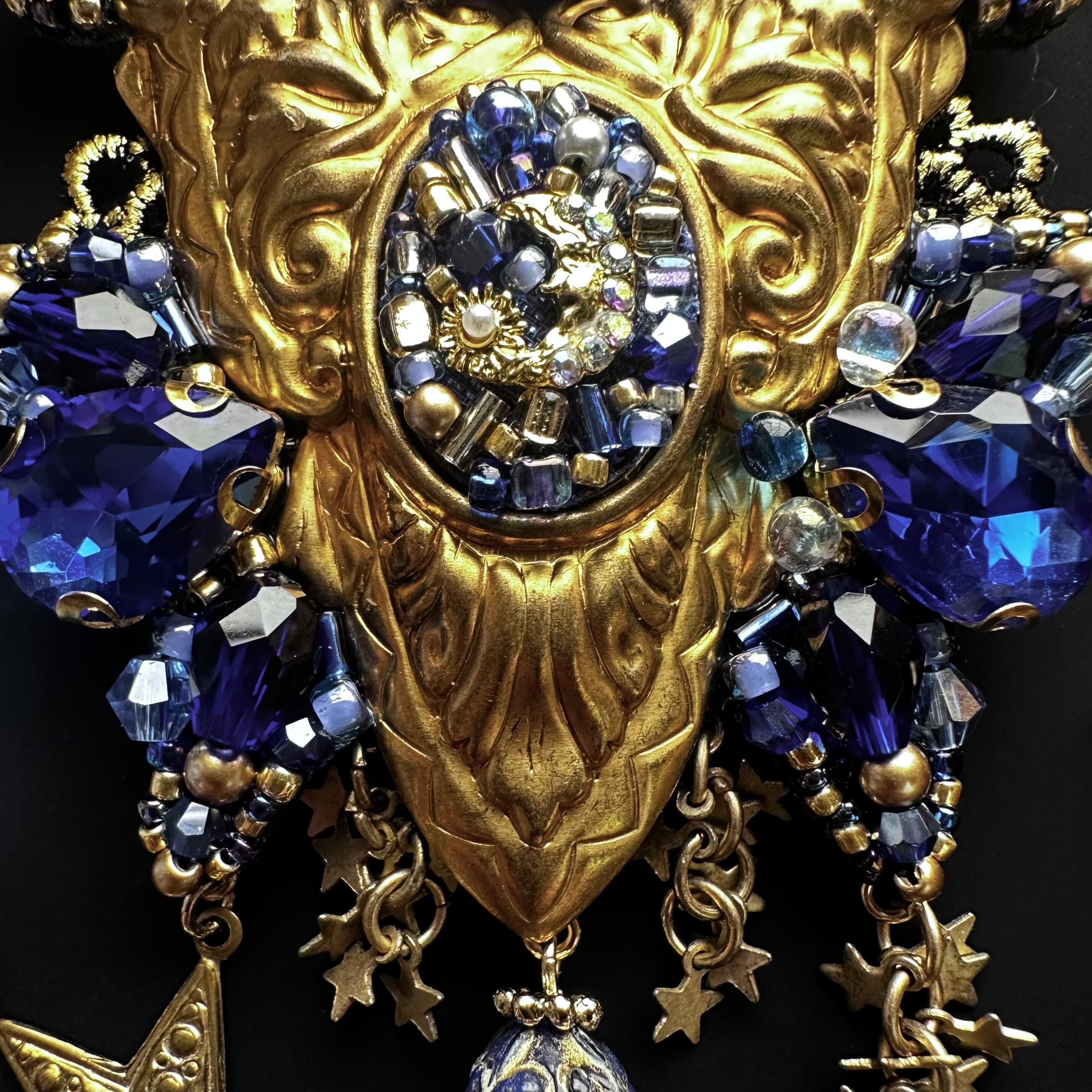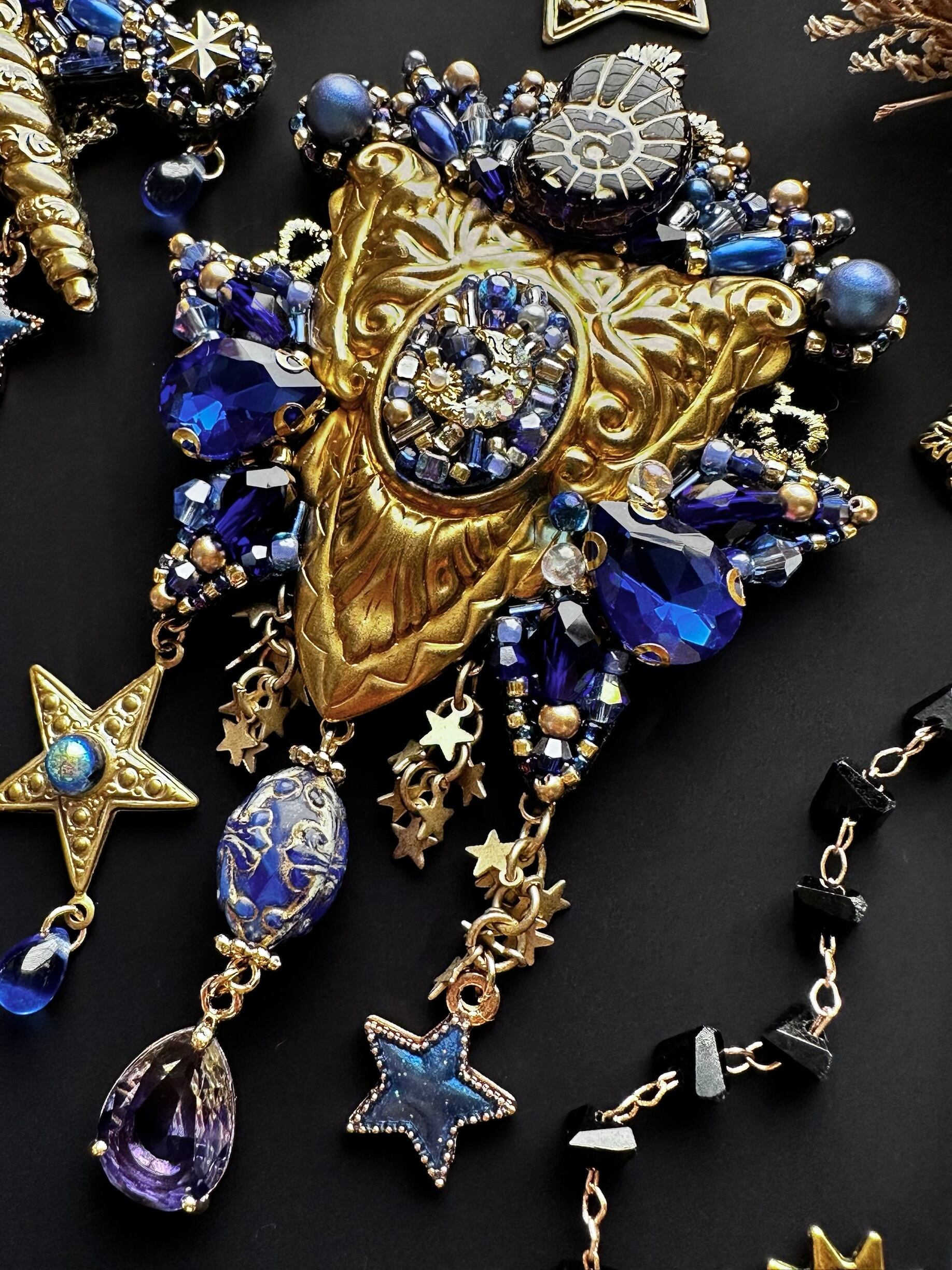 ビーズ刺繍のブローチ・ネックレス・バッグチャームの3wayです。