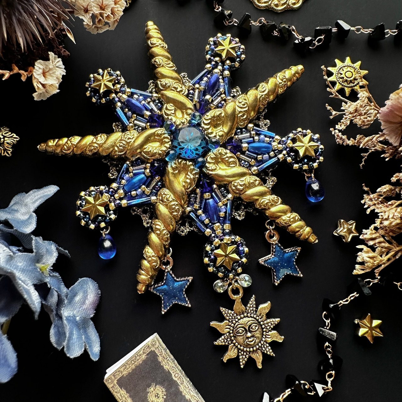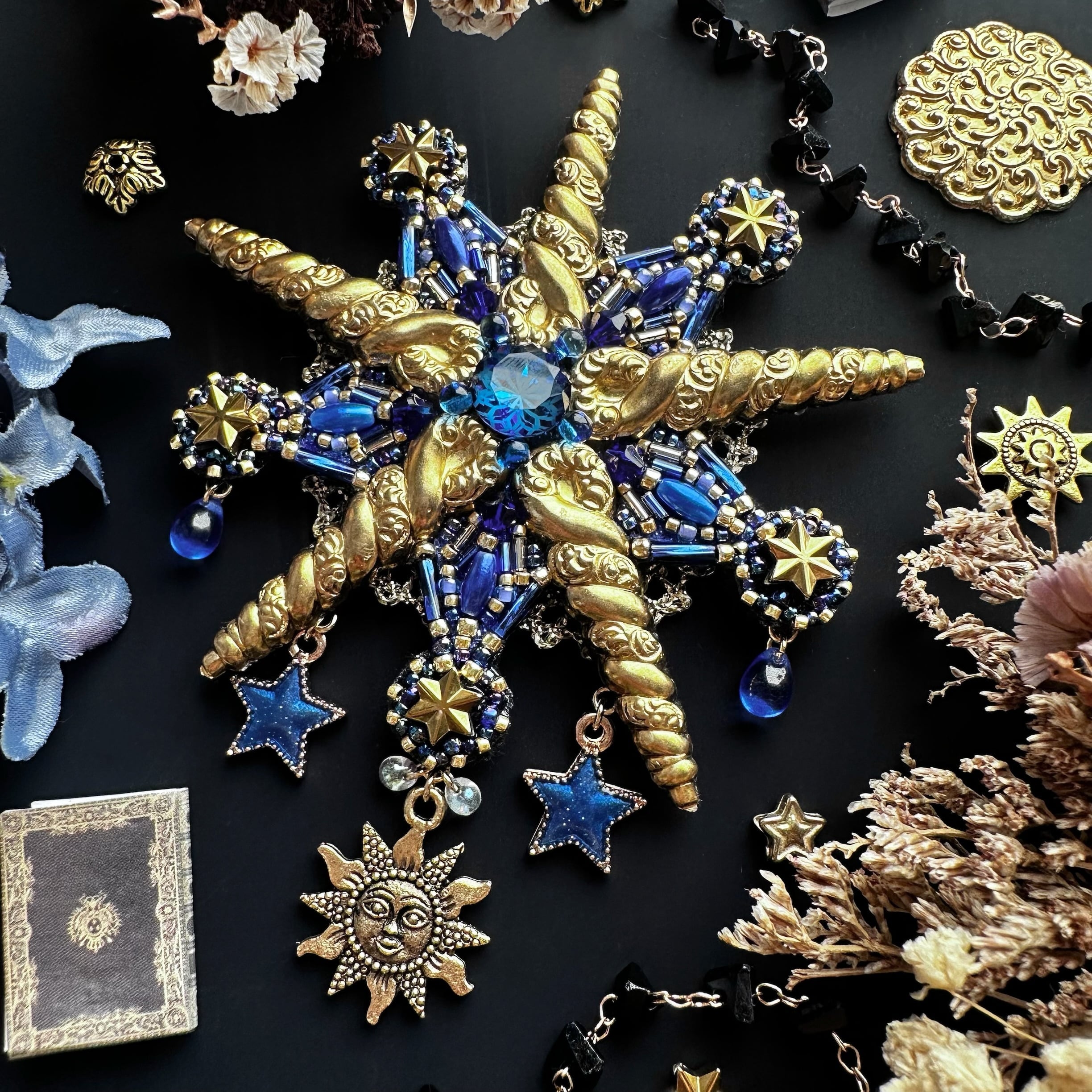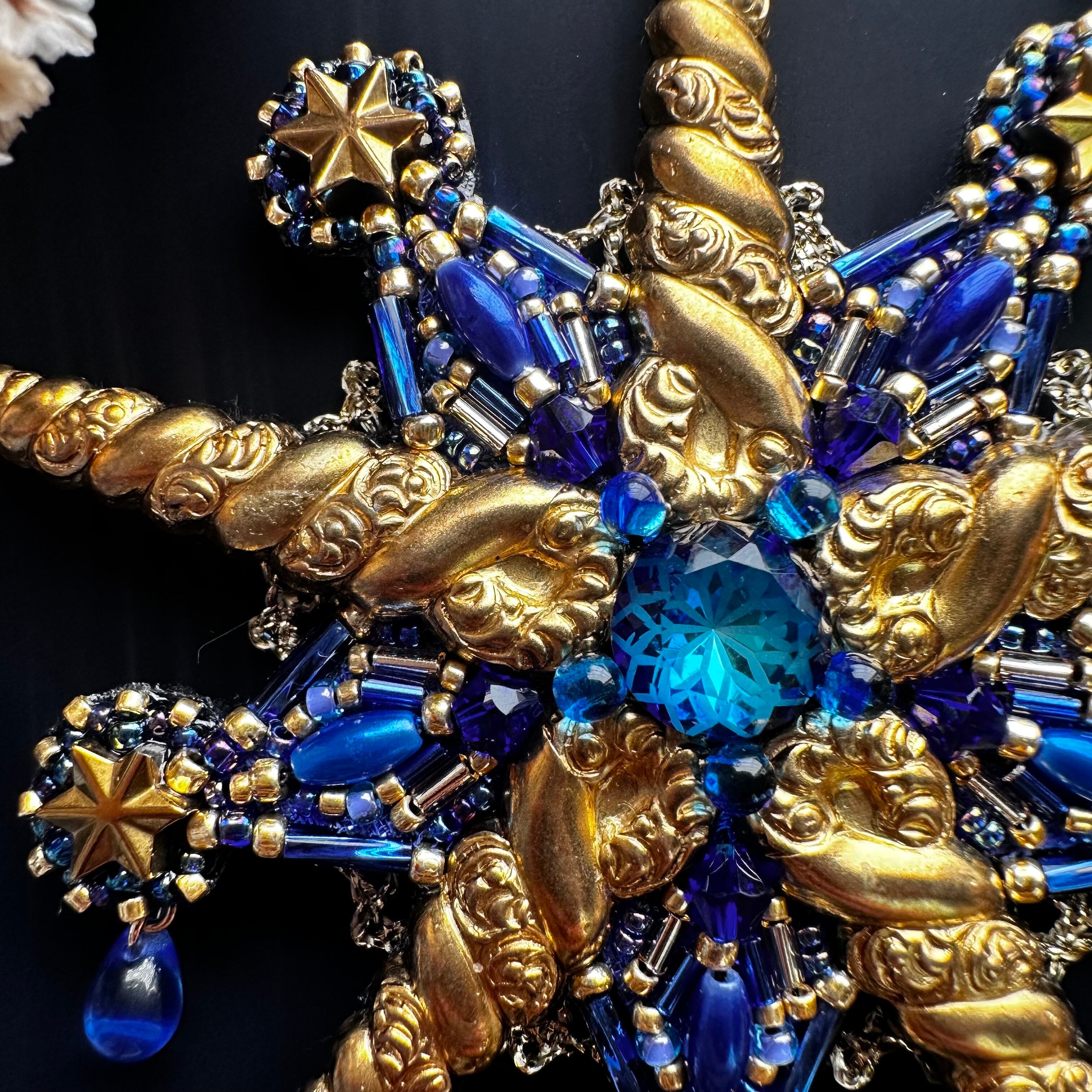 ビーズ刺繍のブローチ・ネックレス・バッグチャームの3wayです。