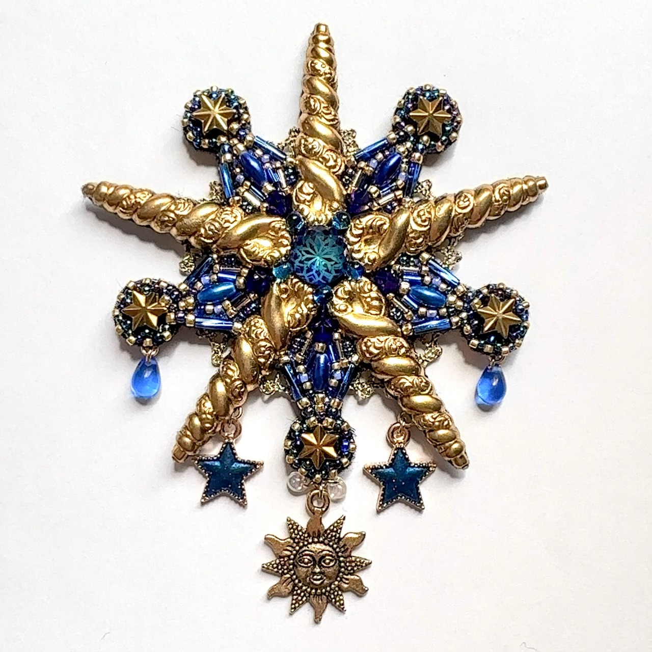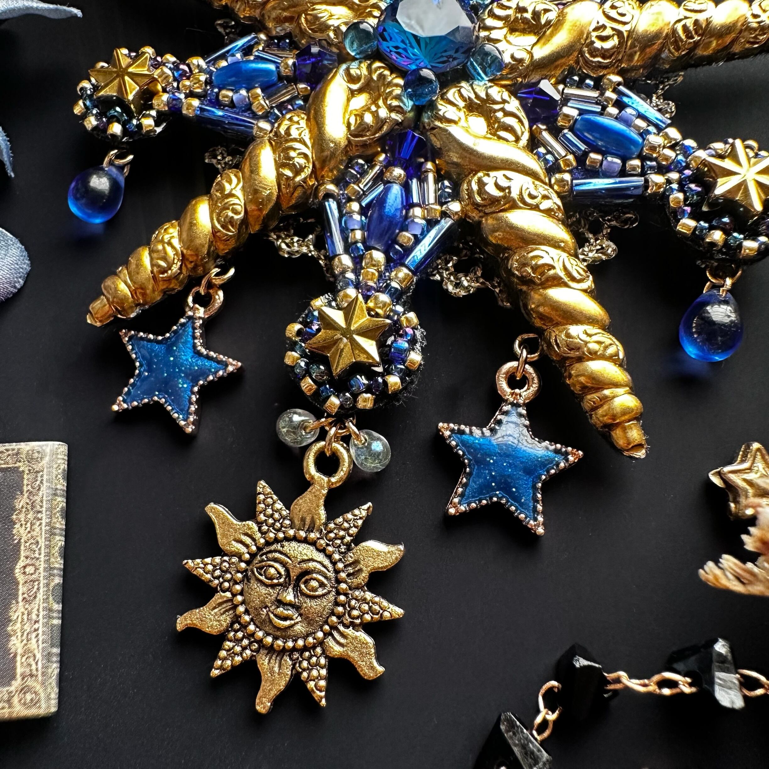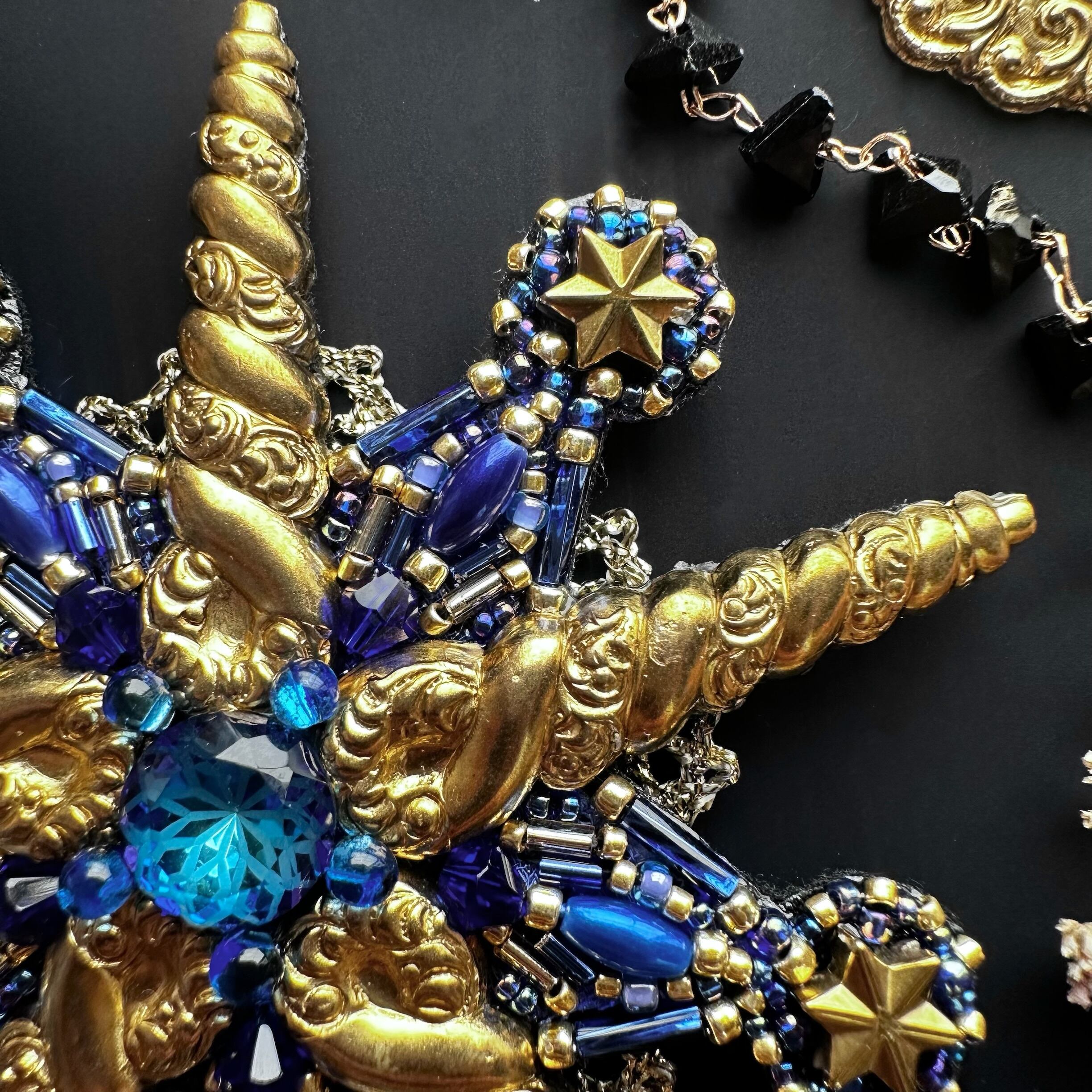ビーズ刺繍のブローチ・ネックレス・バッグチャームの3wayです。