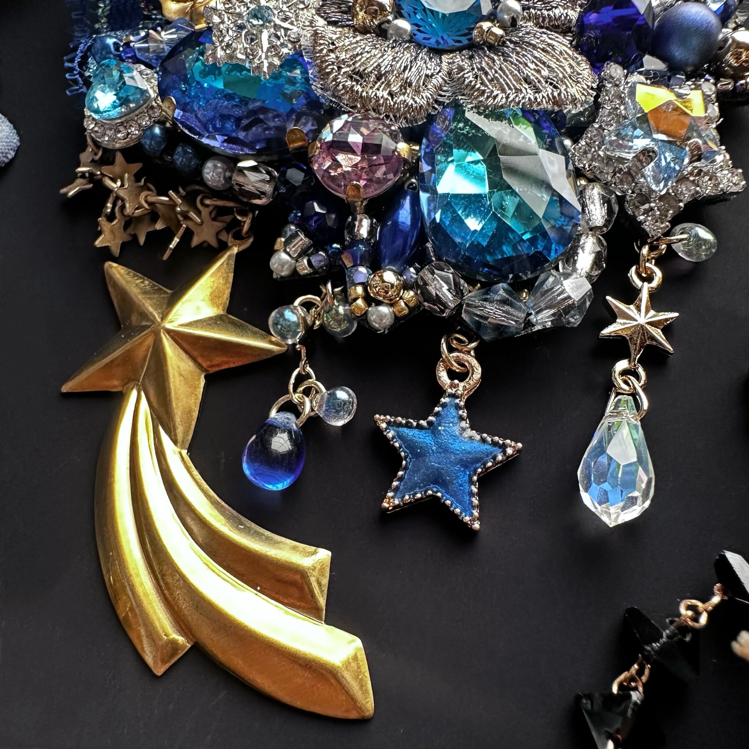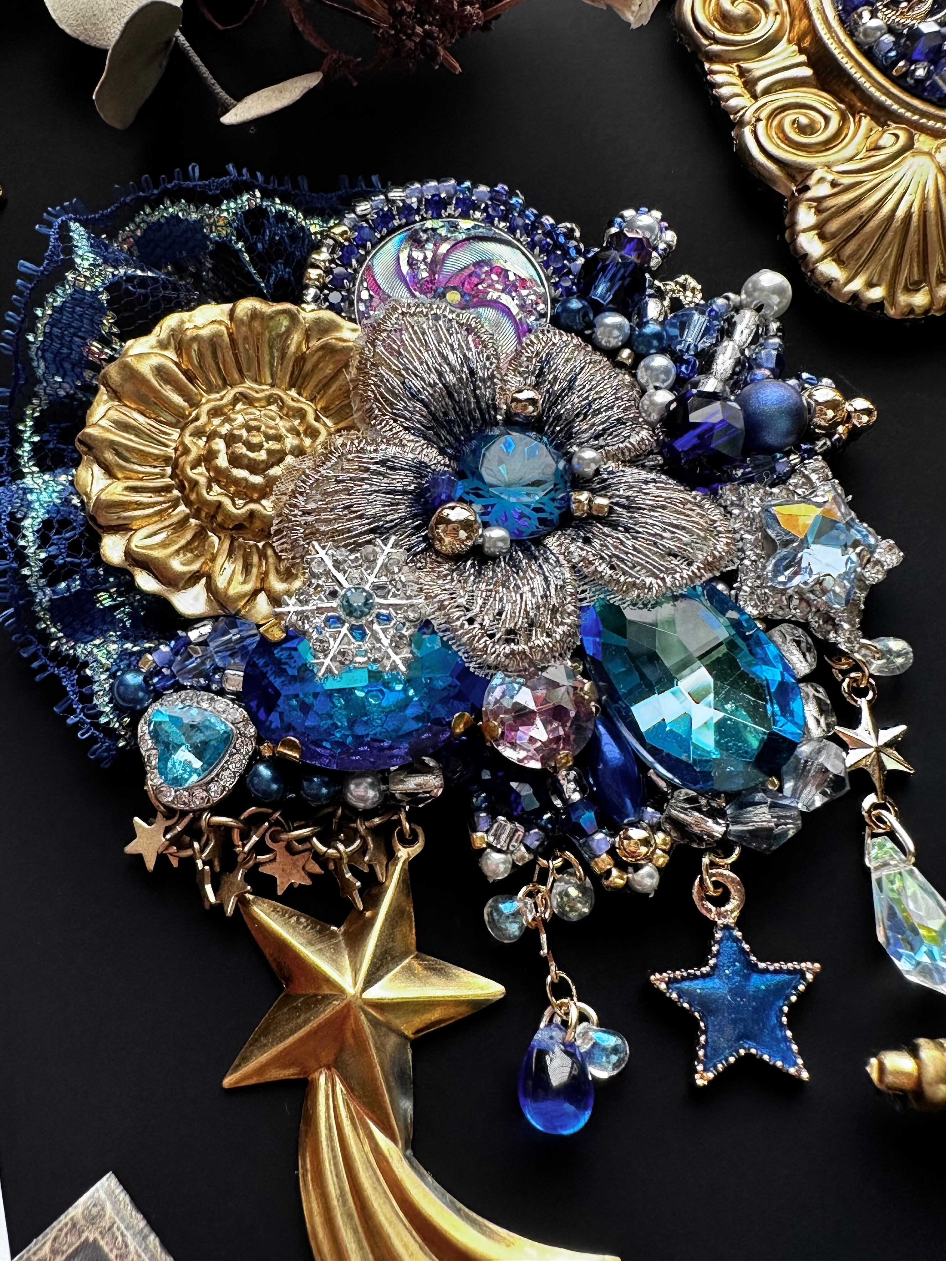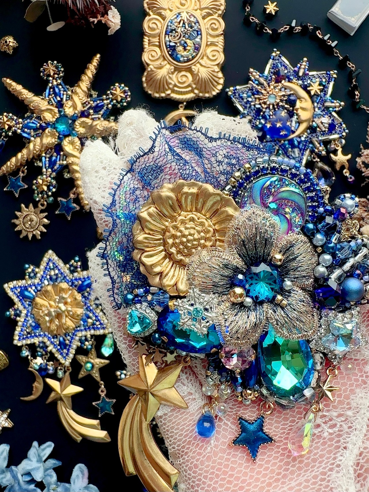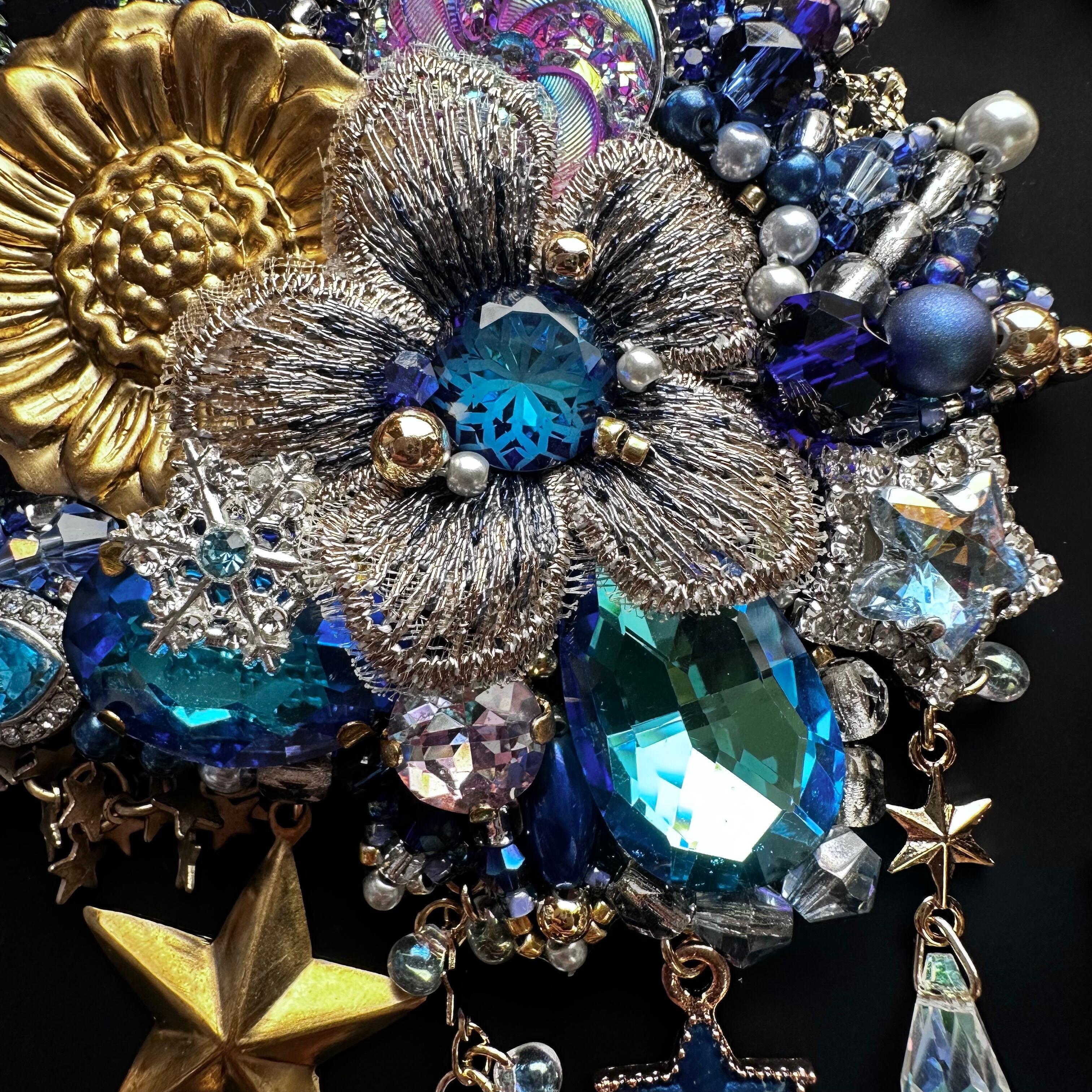 ビーズ刺繍のブローチ・ネックレス・バッグチャームの3wayです。