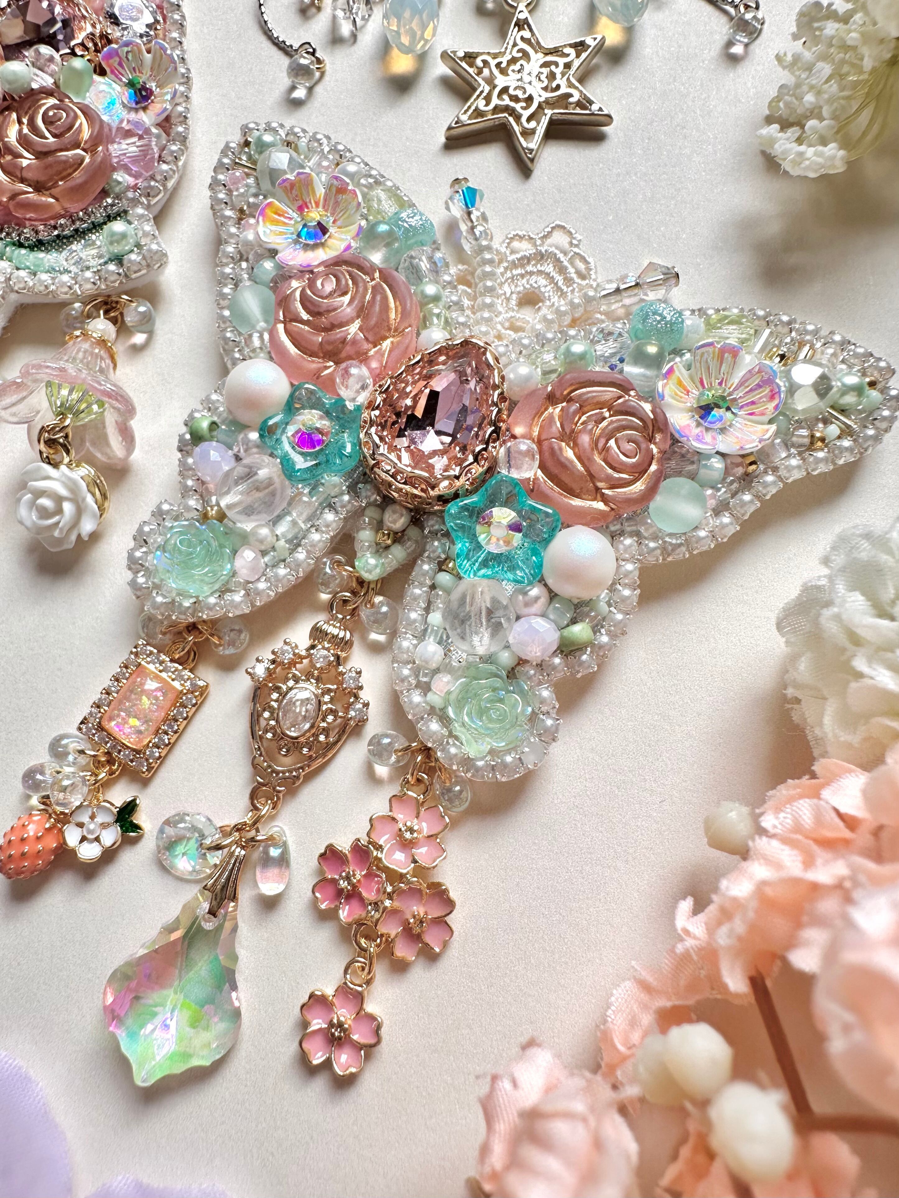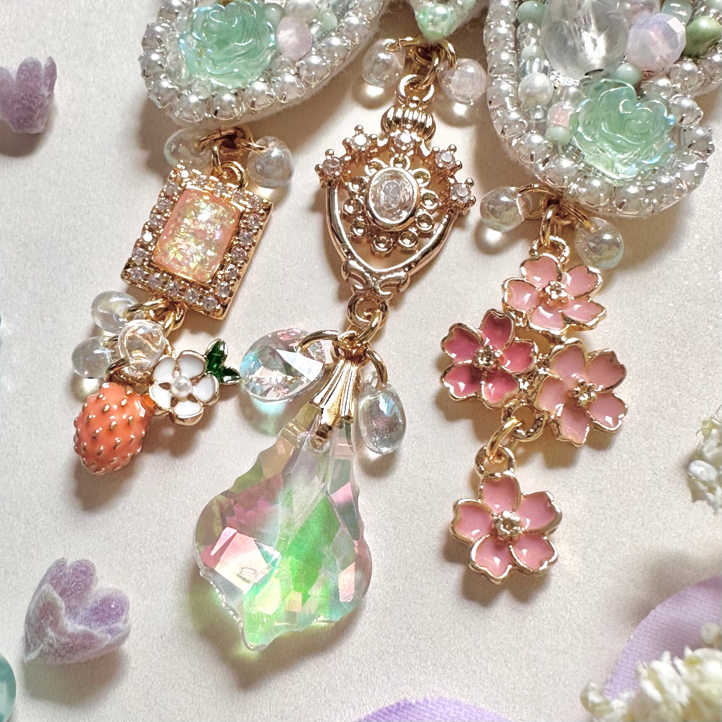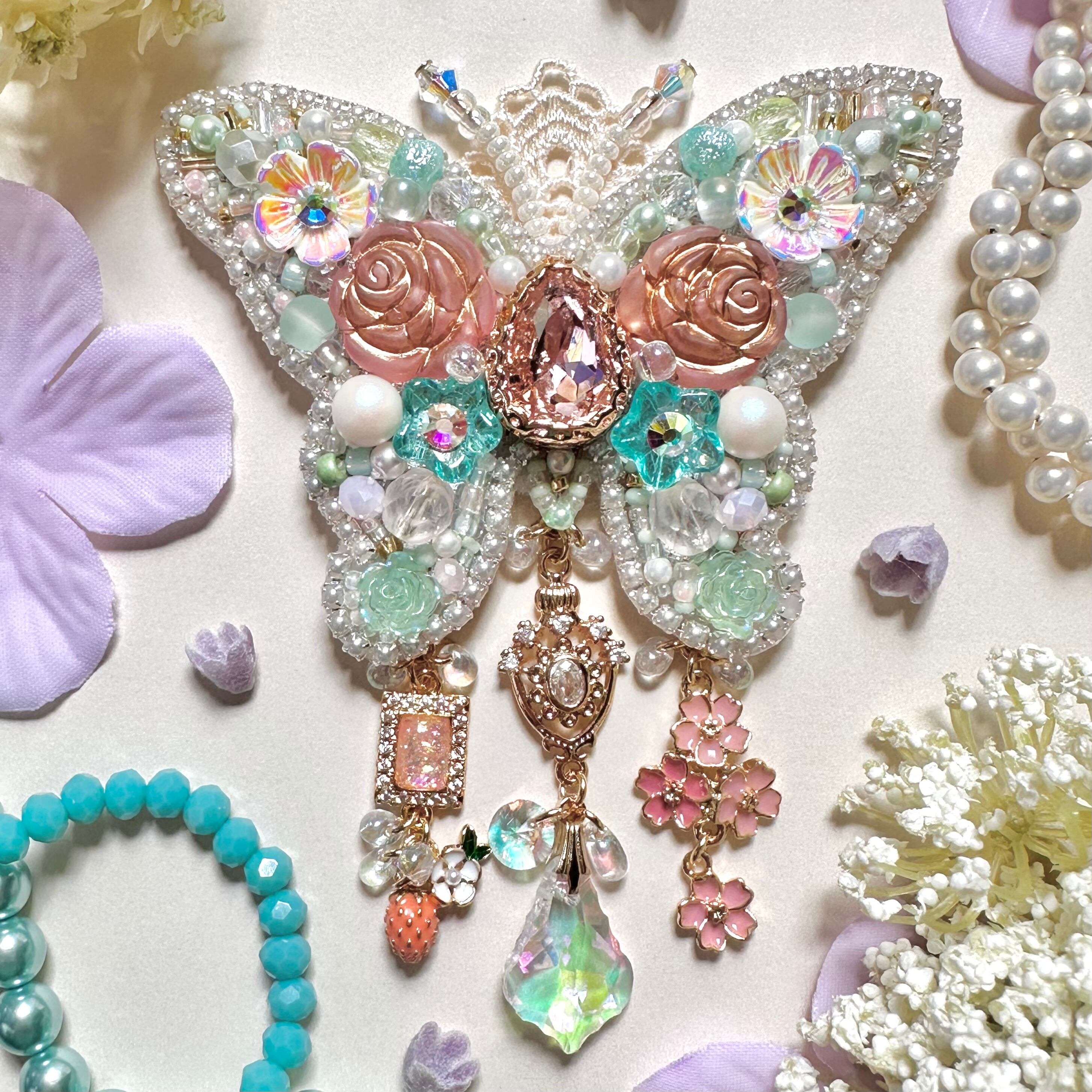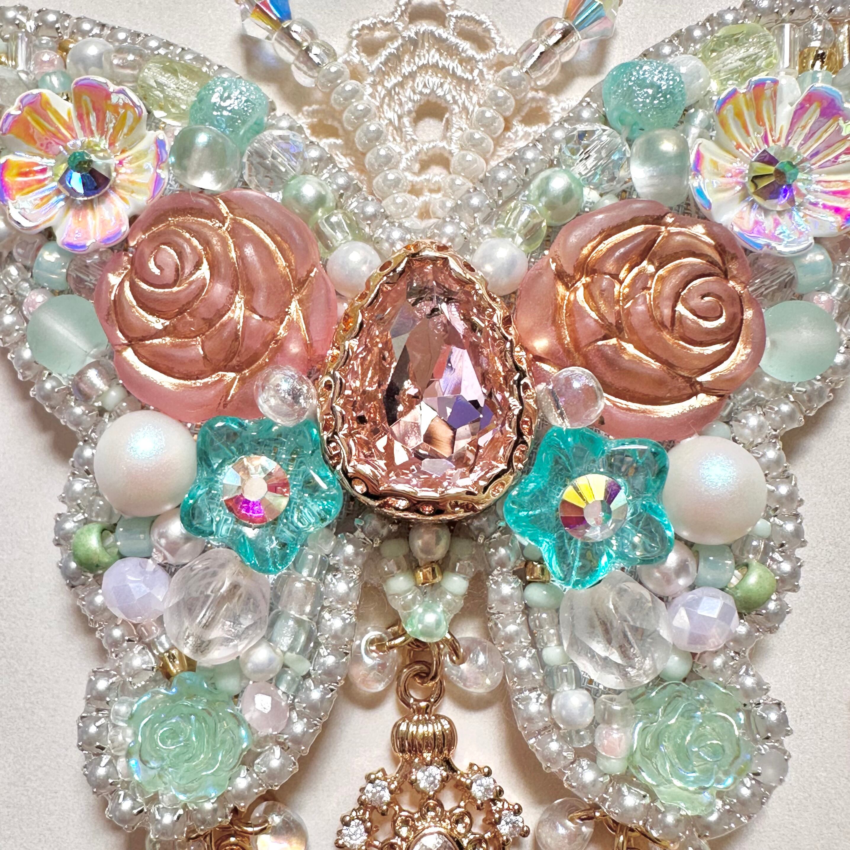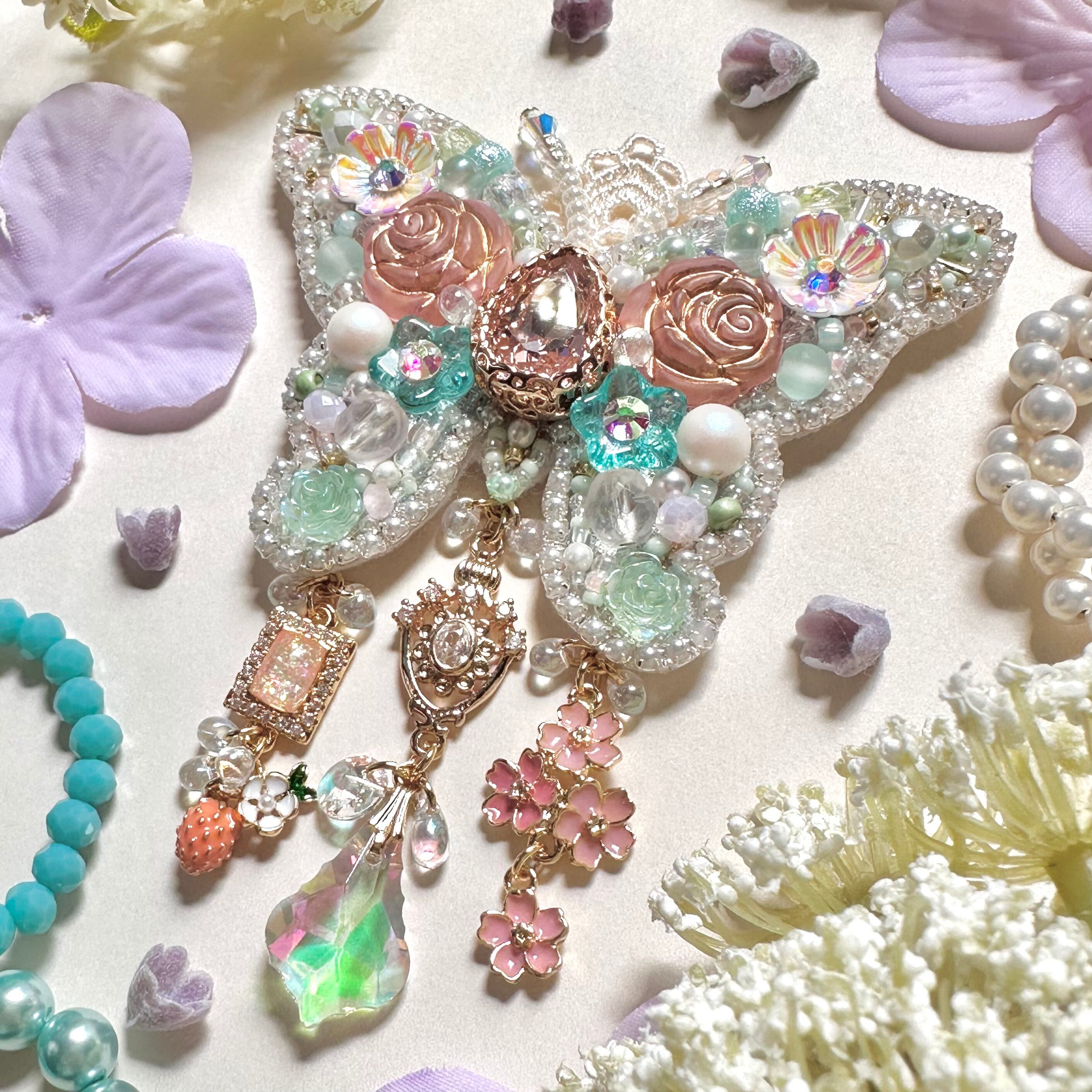 ビーズ刺繍のブローチ・ネックレス・バッグチャームの3wayです。