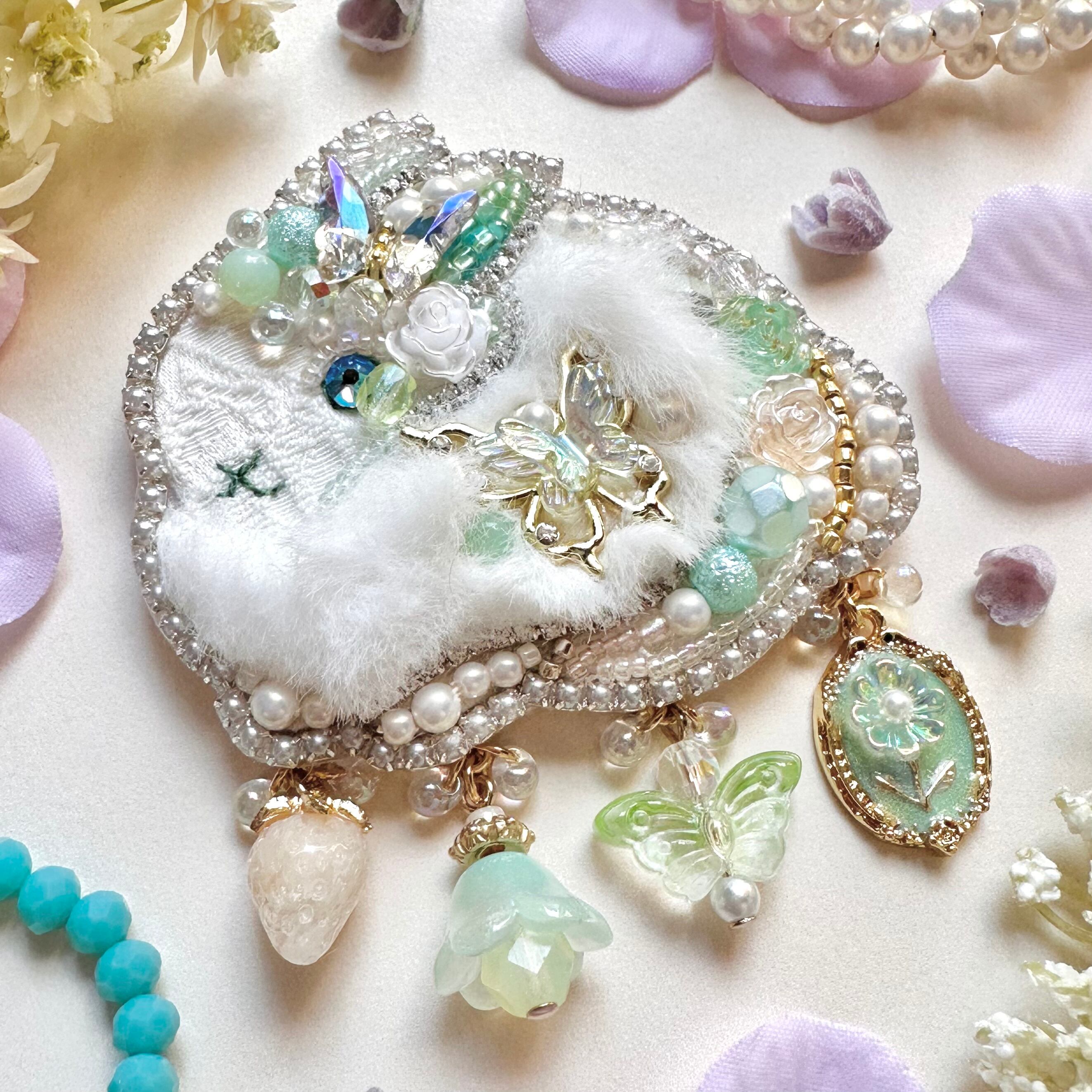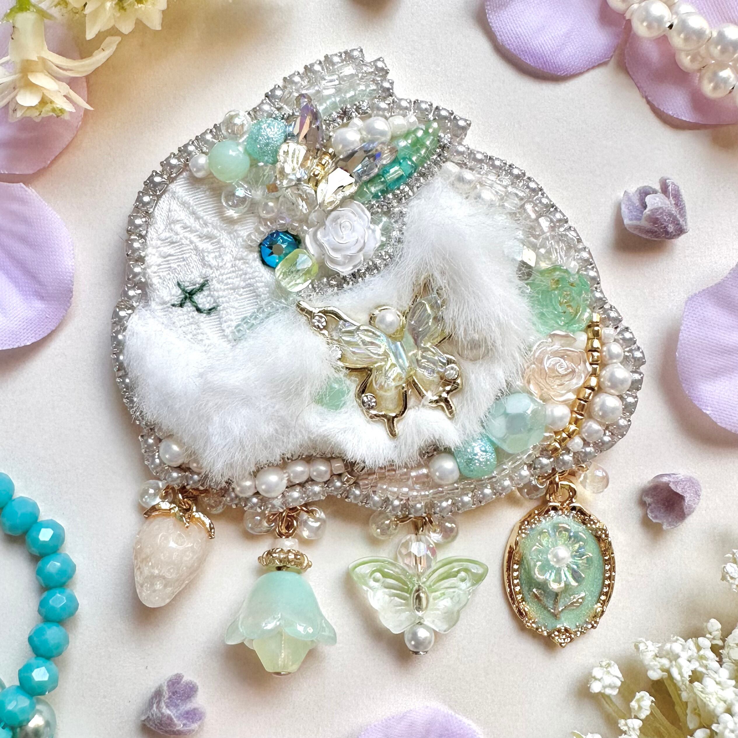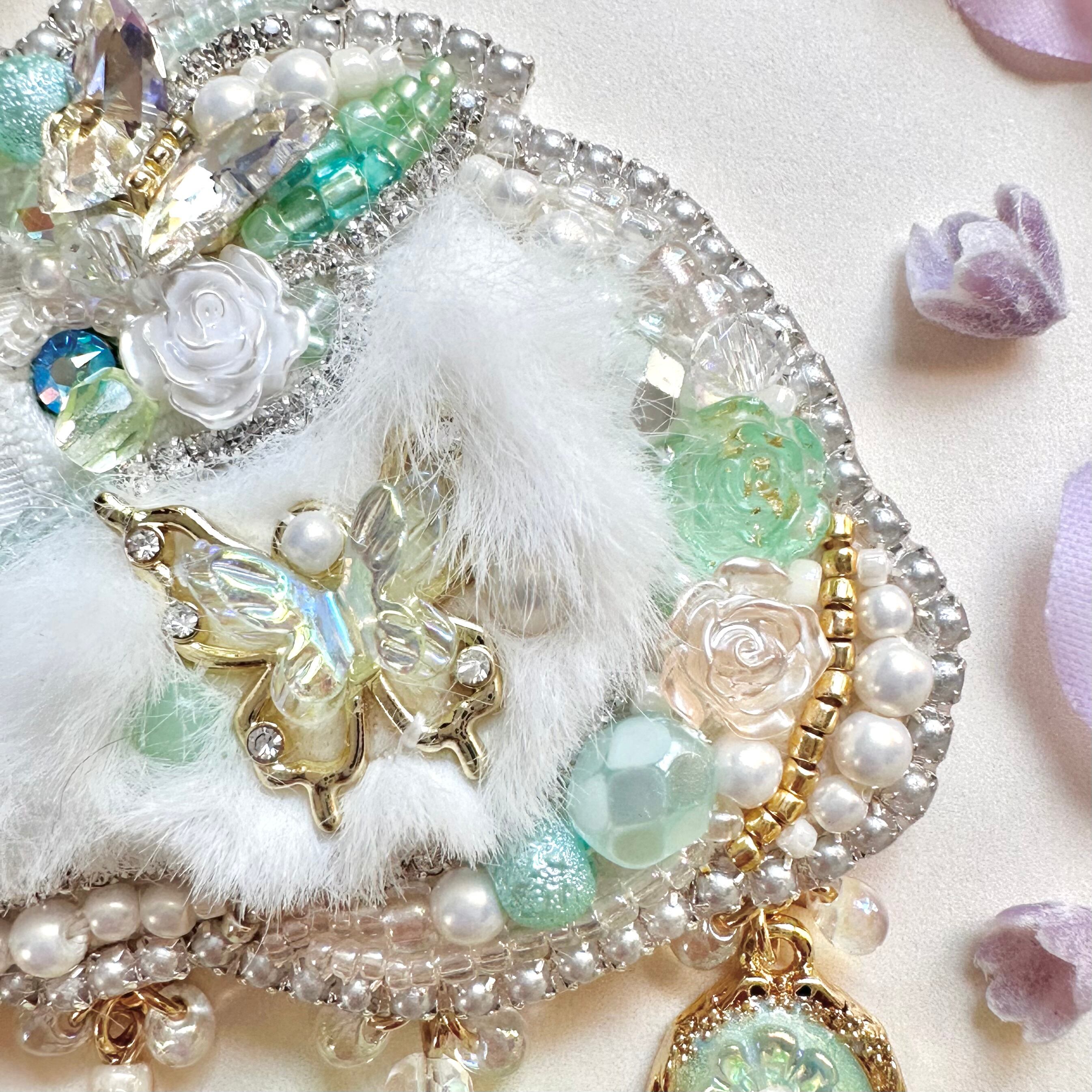 ビーズ刺繍のブローチ・ネックレス・バッグチャームの3wayです。