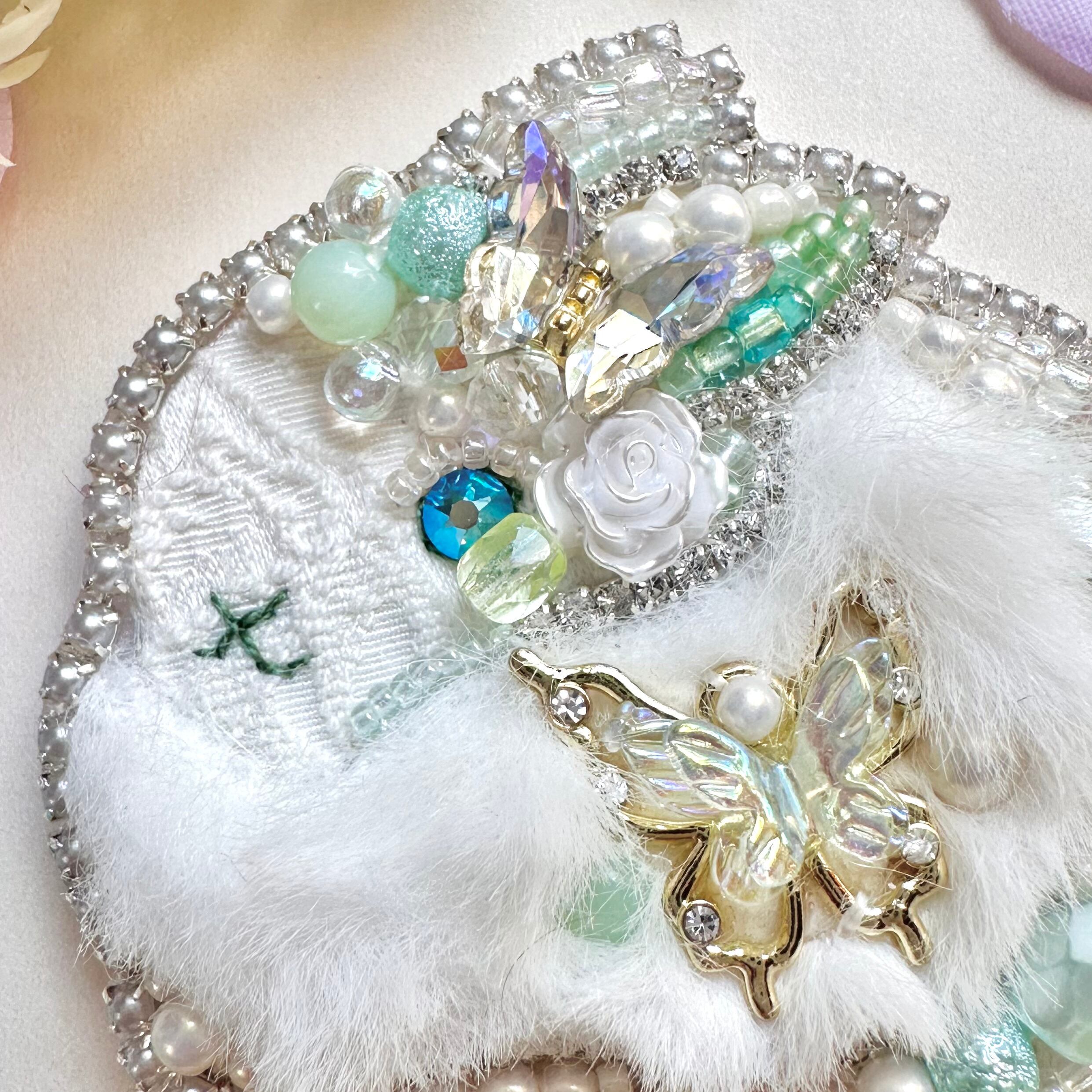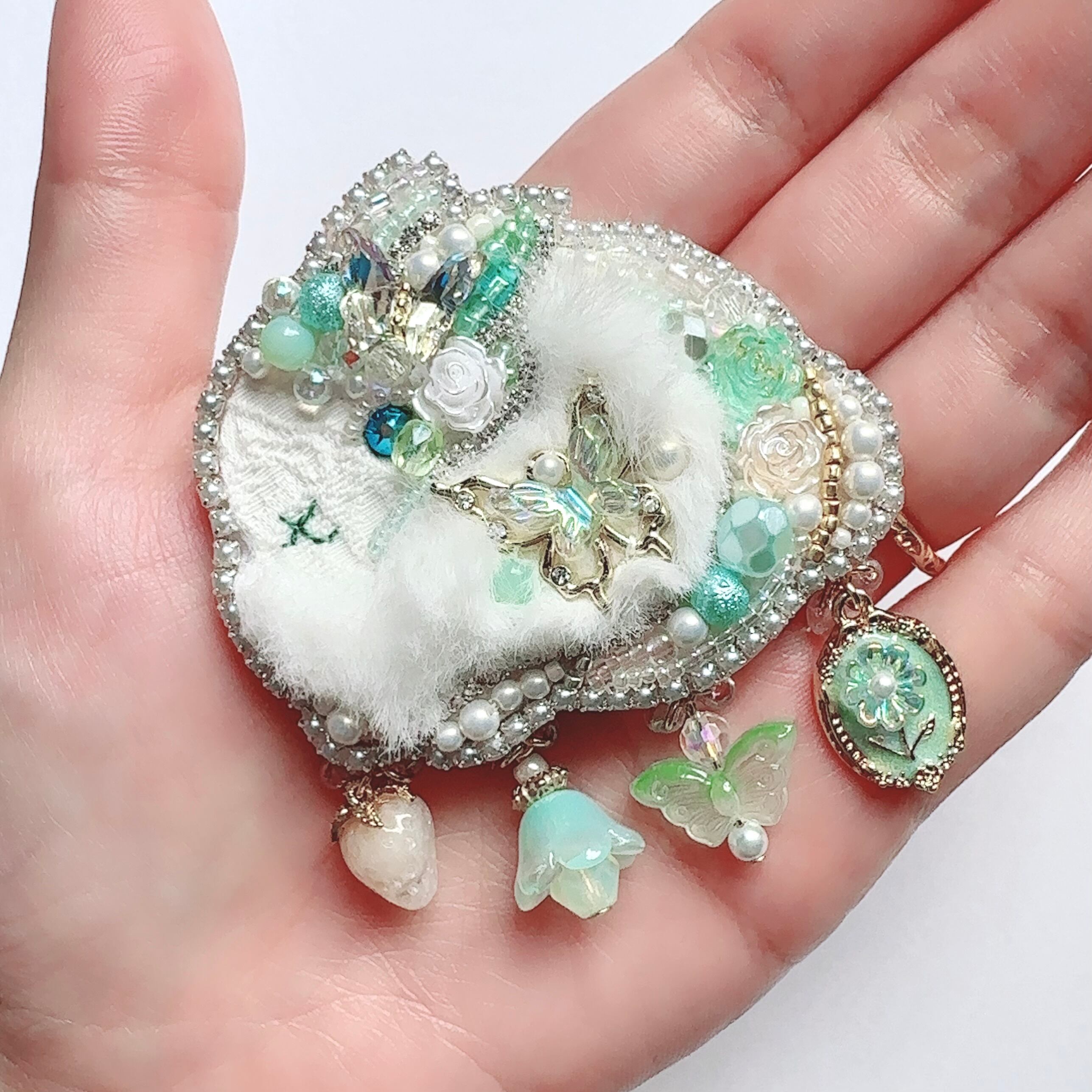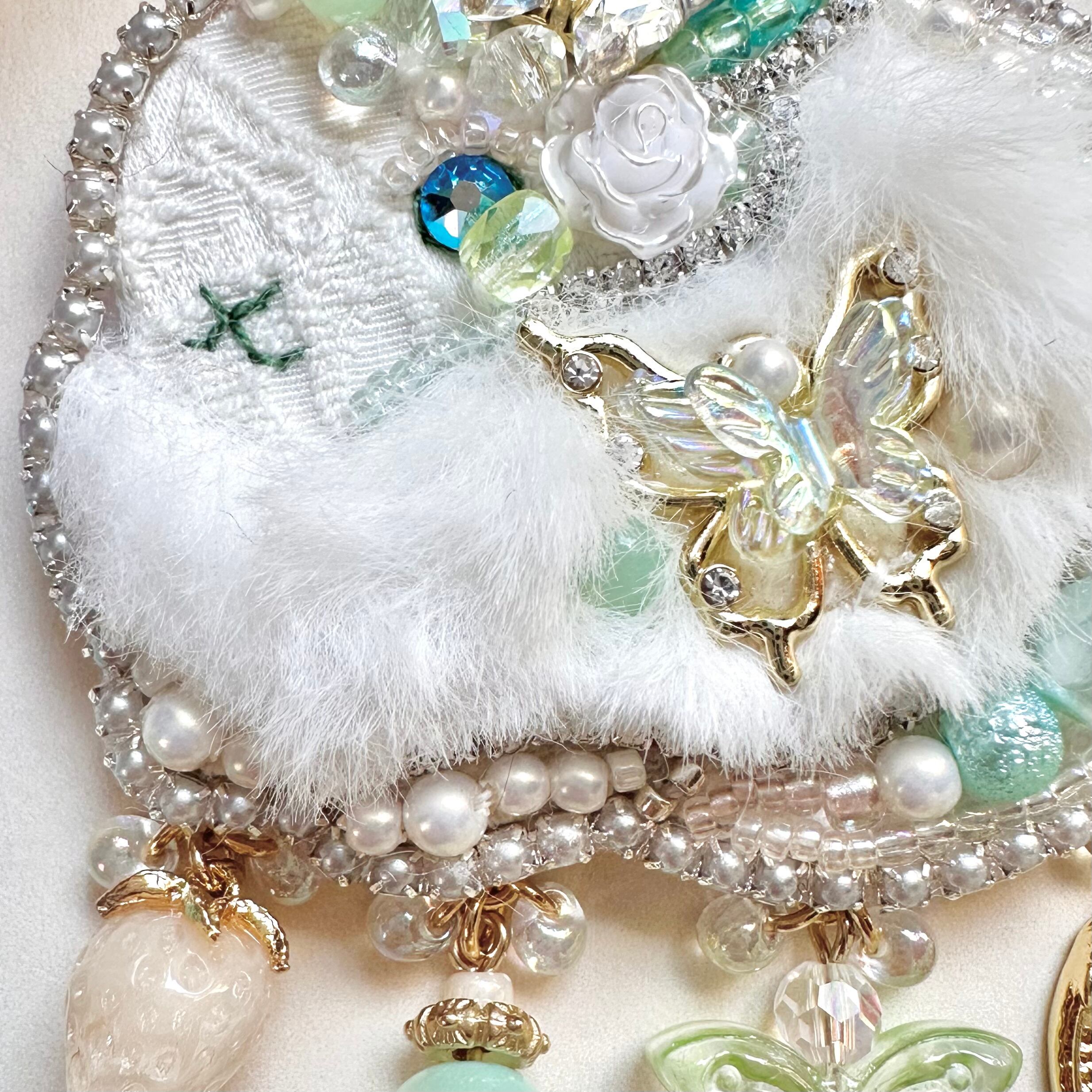 ビーズ刺繍のブローチ・ネックレス・バッグチャームの3wayです。