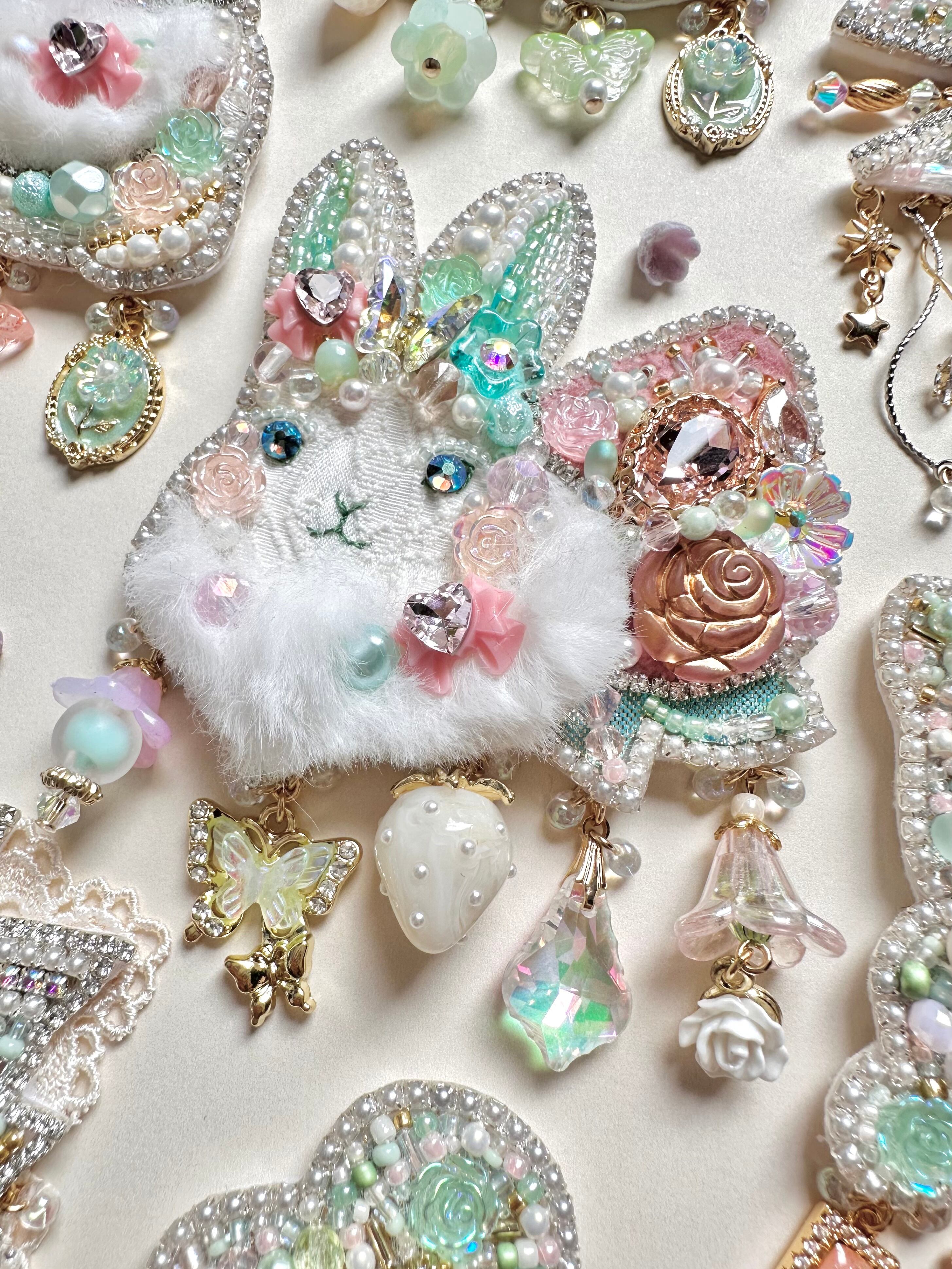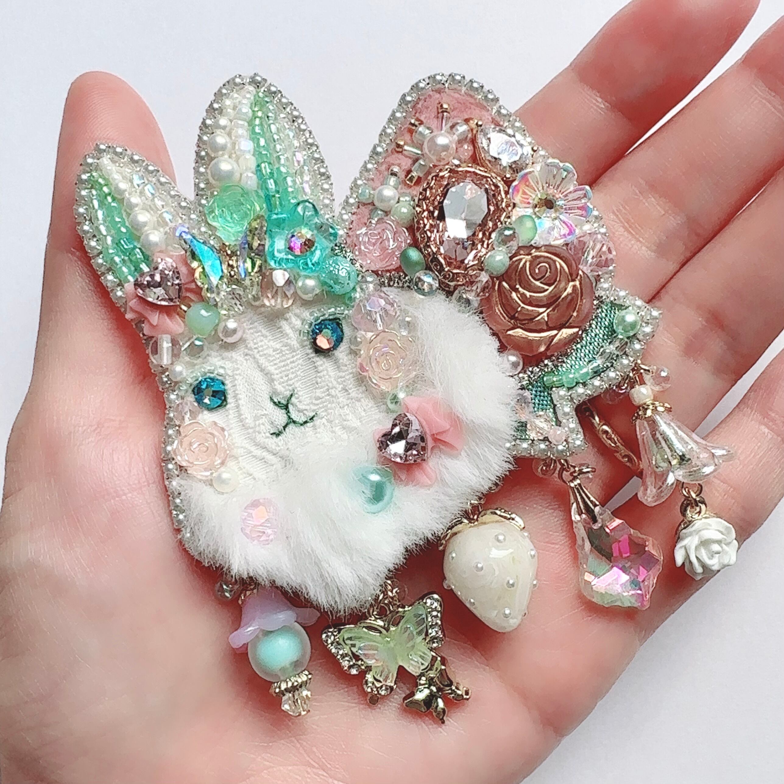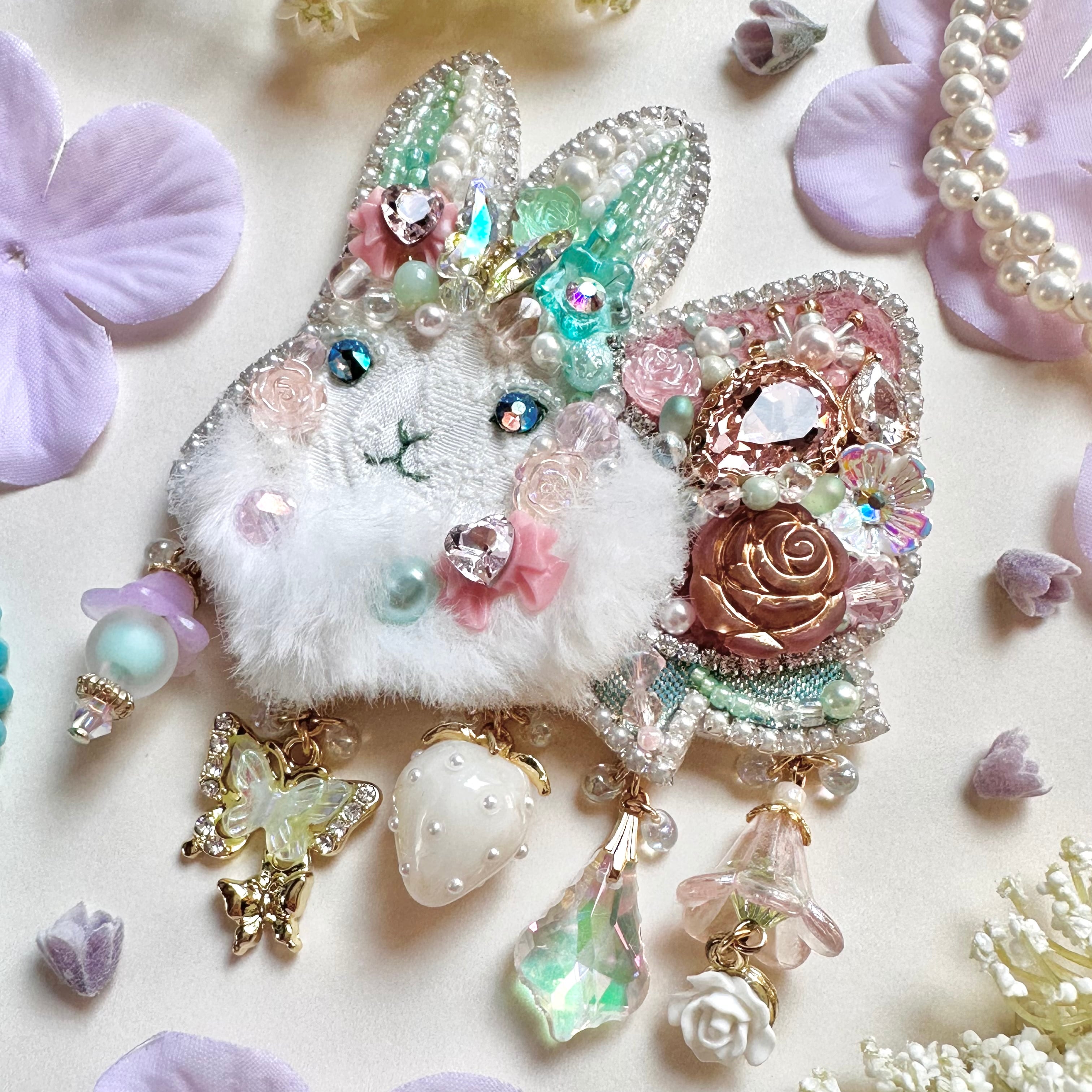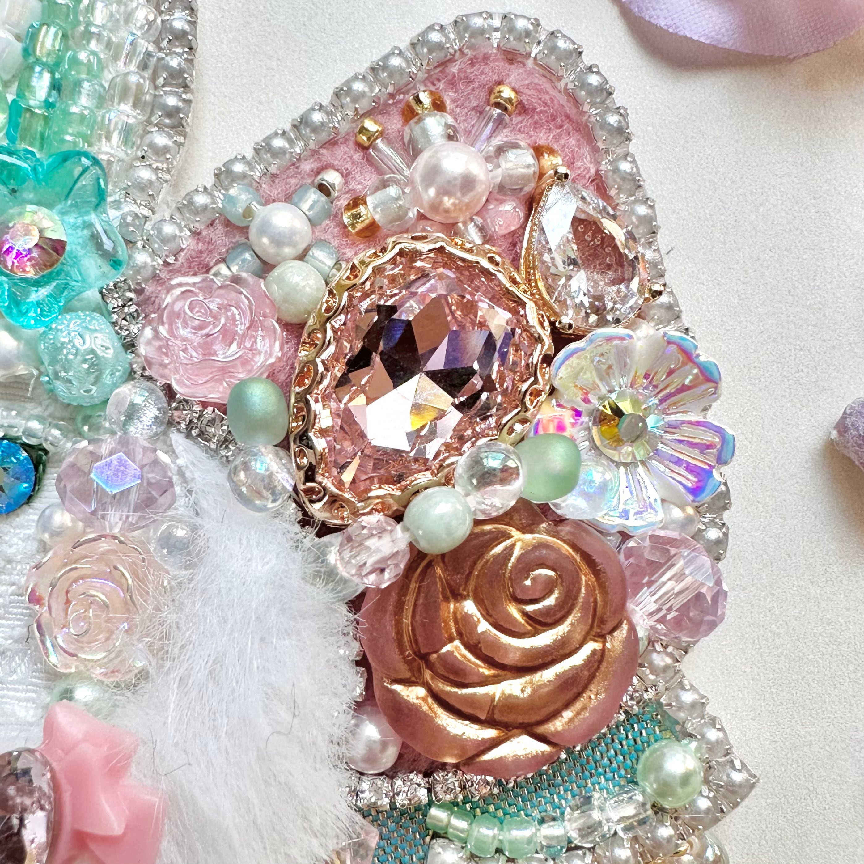 ビーズ刺繍のブローチ・ネックレス・バッグチャームの3wayです。