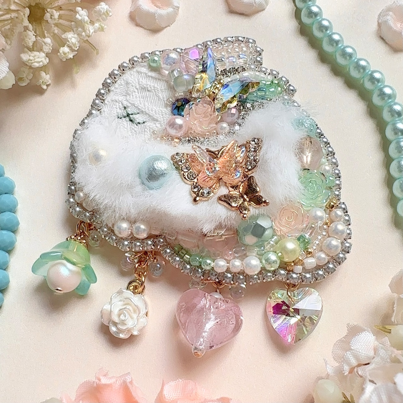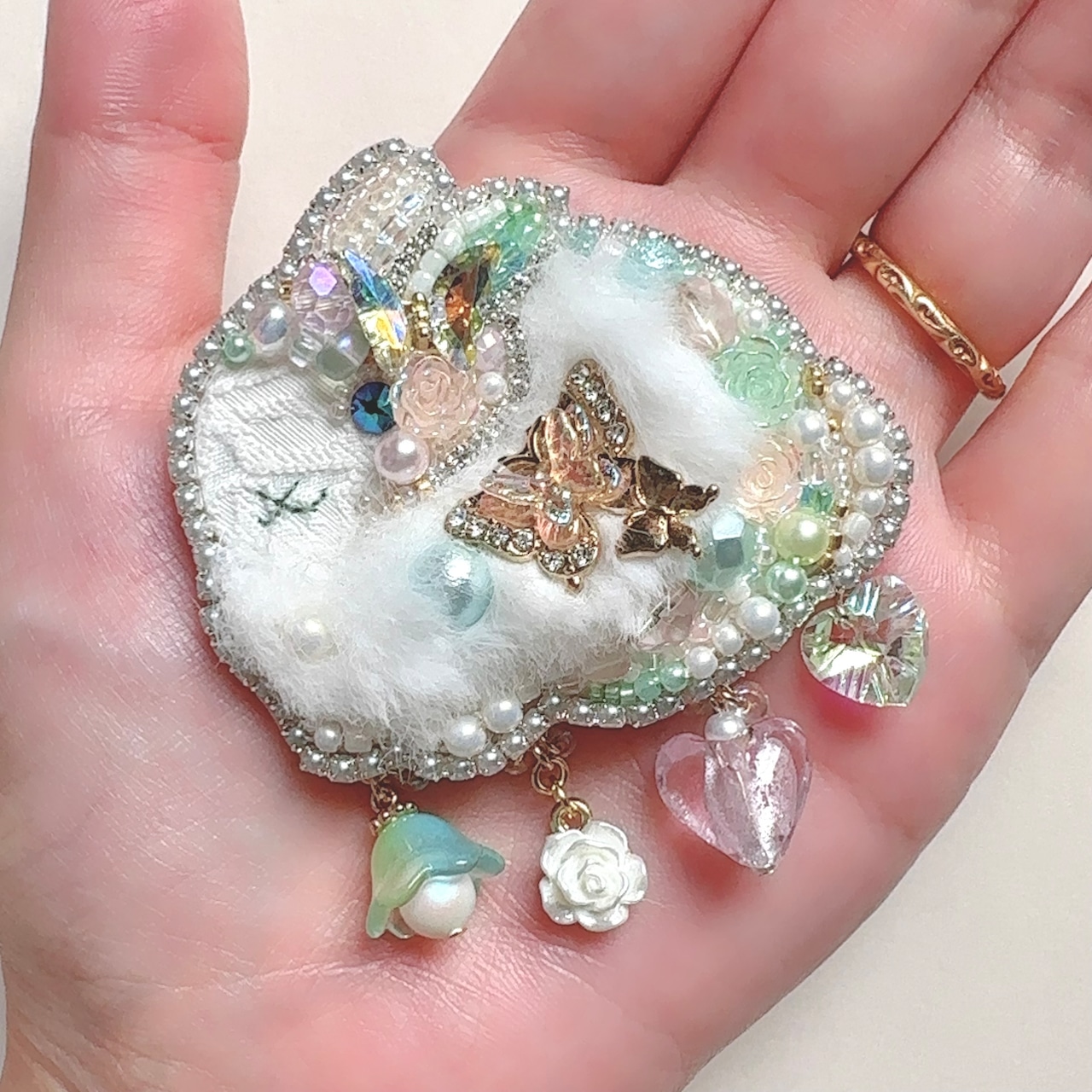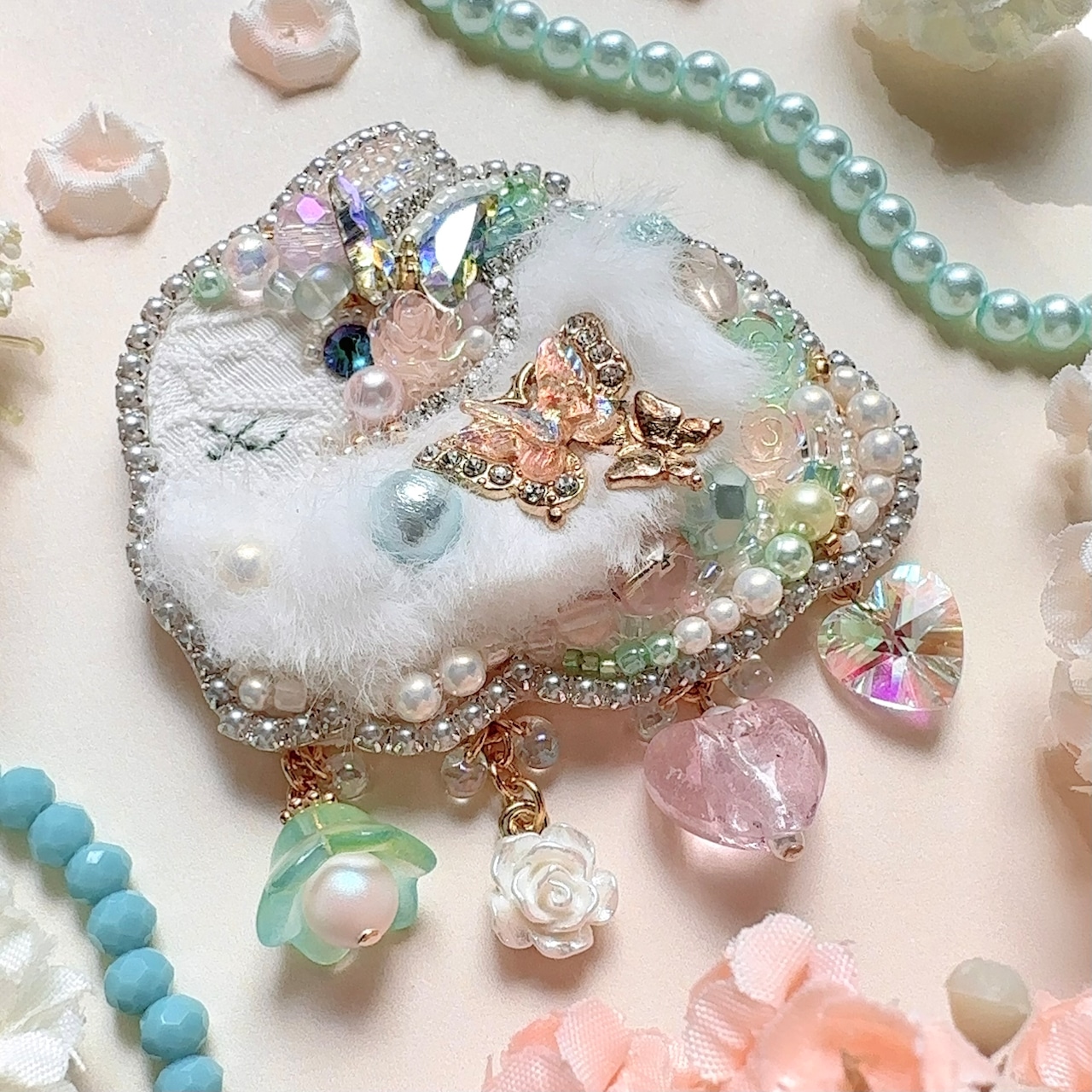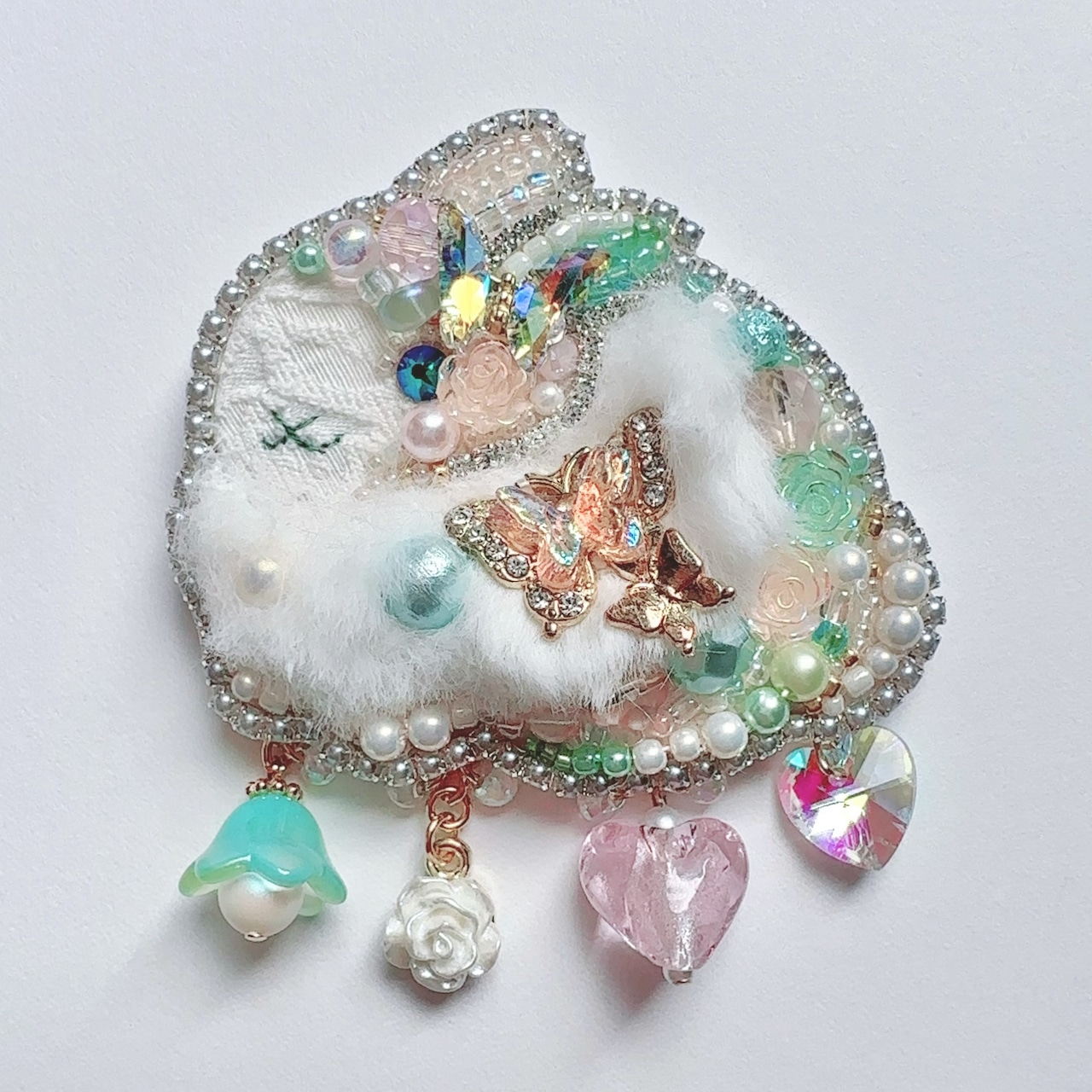 ビーズ刺繍のブローチ・ネックレス・バッグチャームの3wayです。