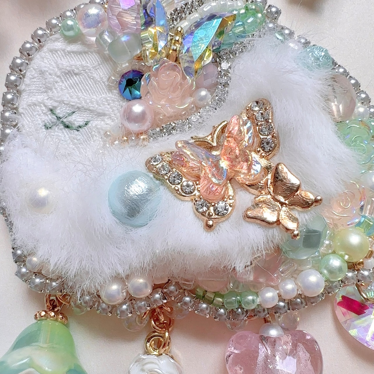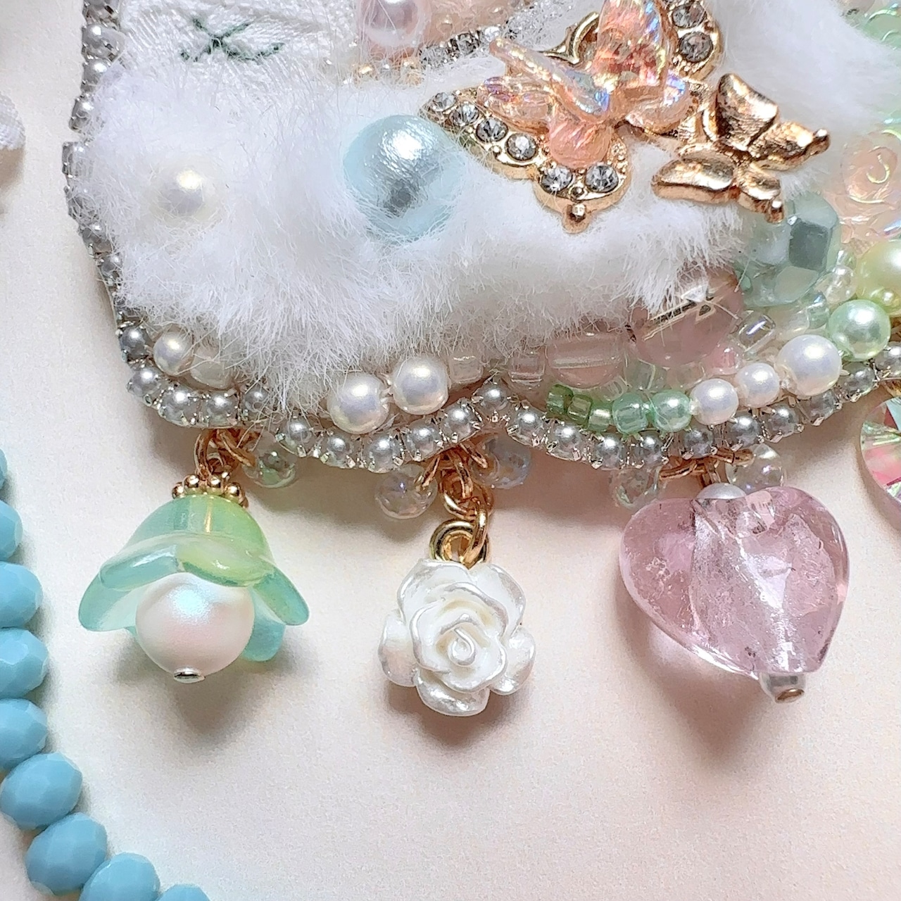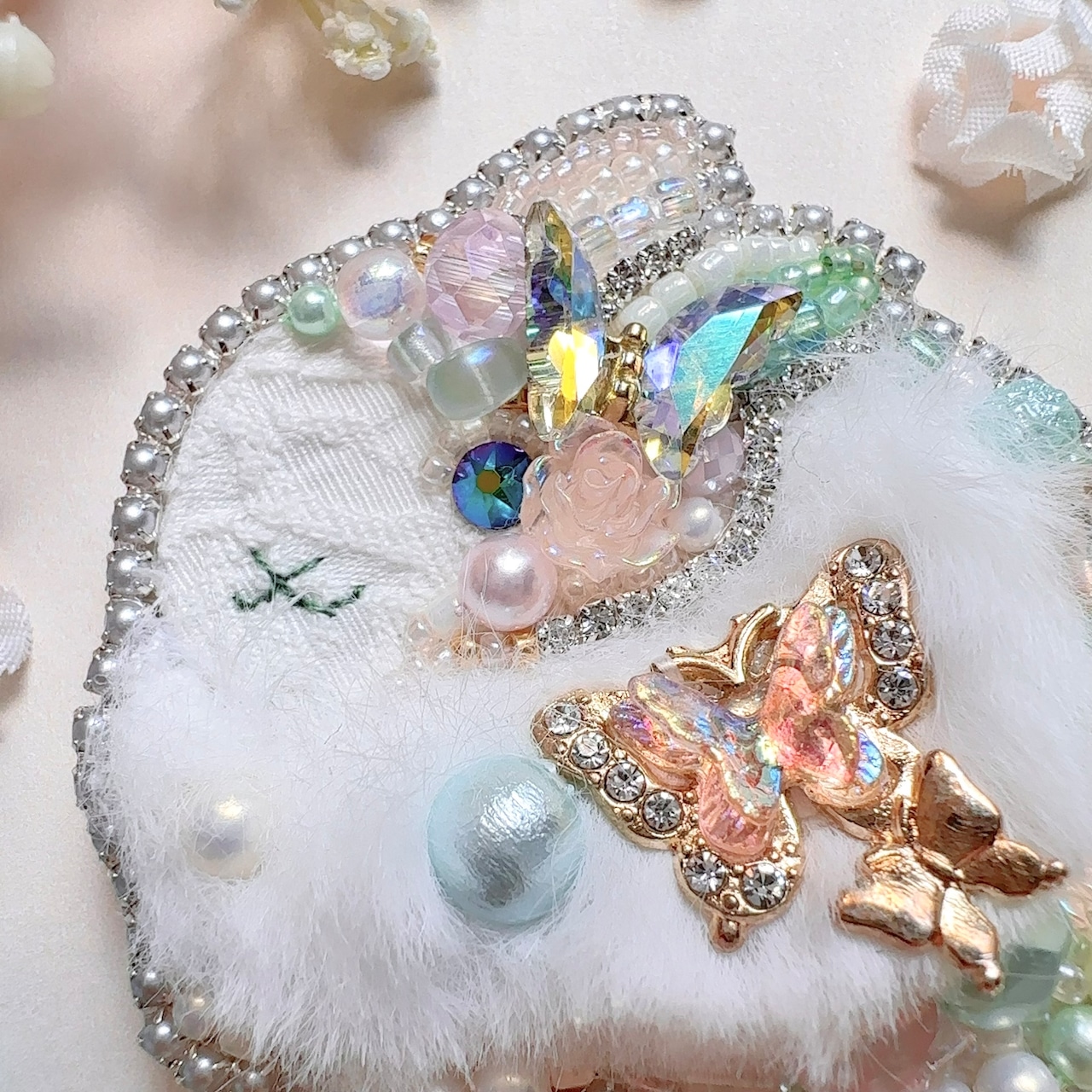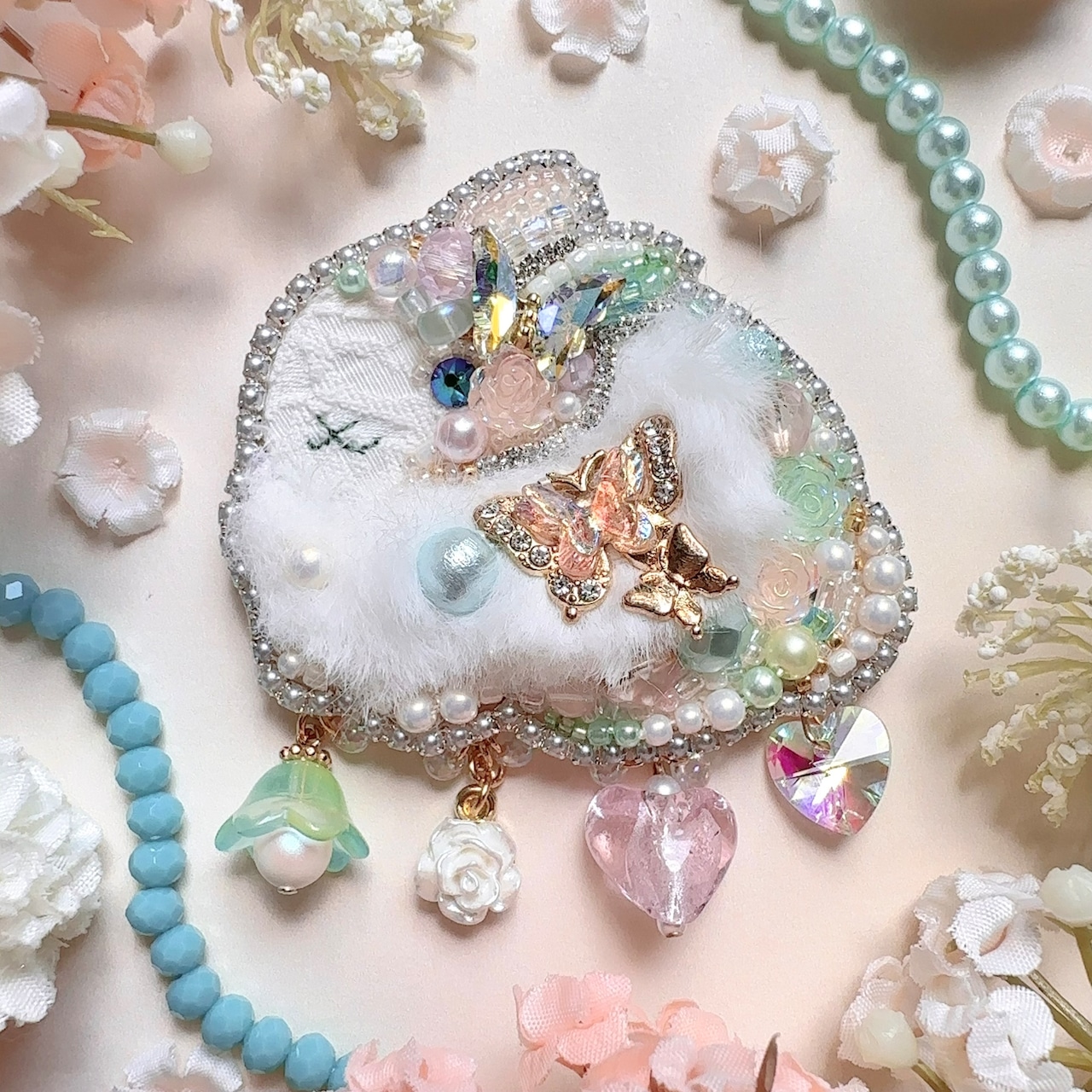 ビーズ刺繍のブローチ・ネックレス・バッグチャームの3wayです。