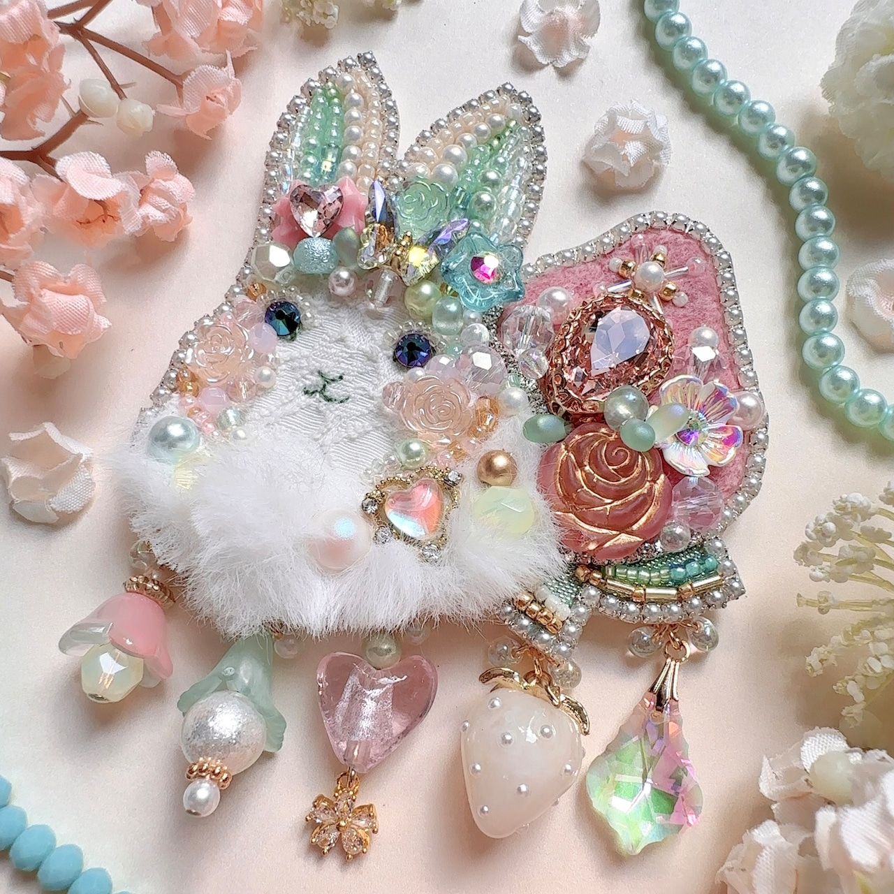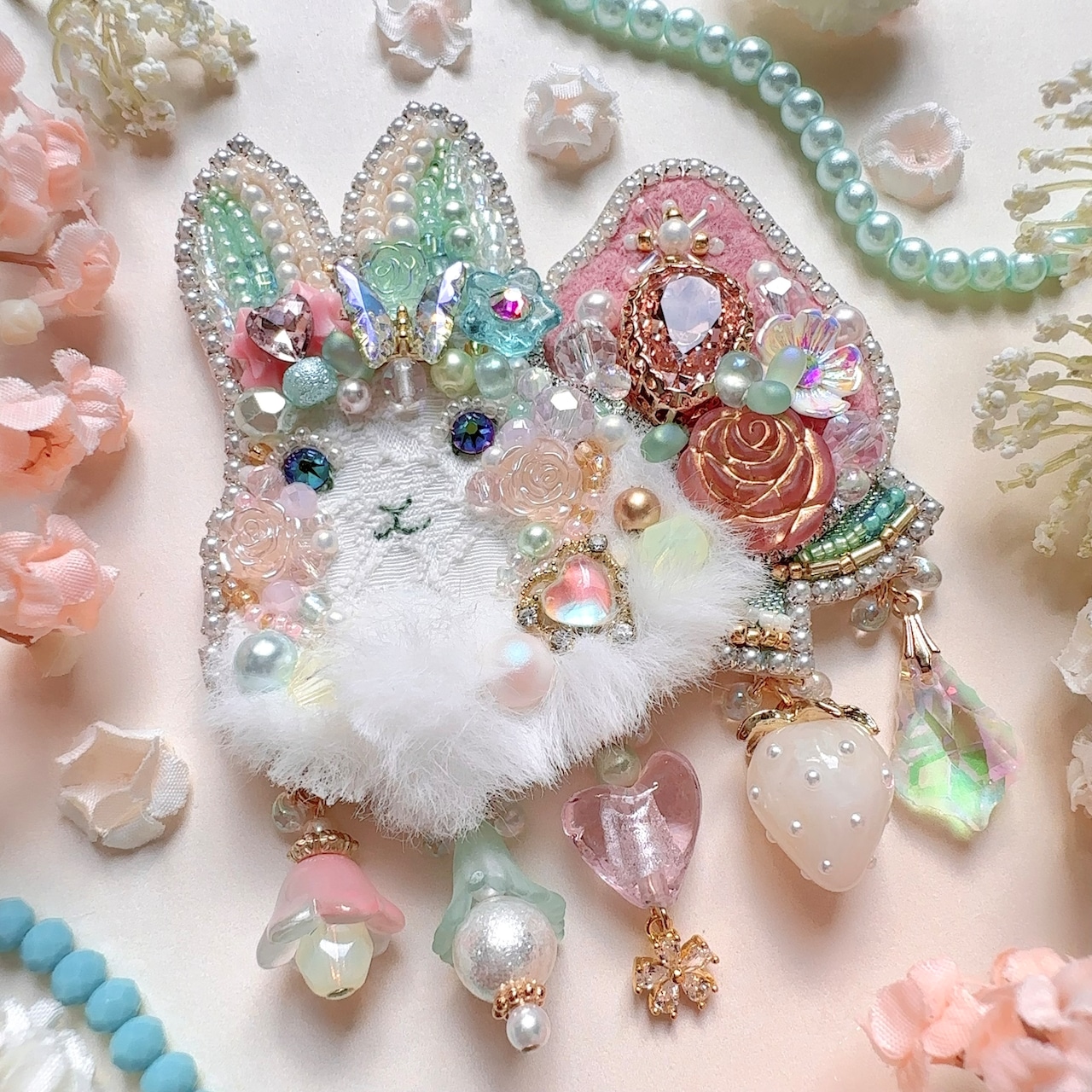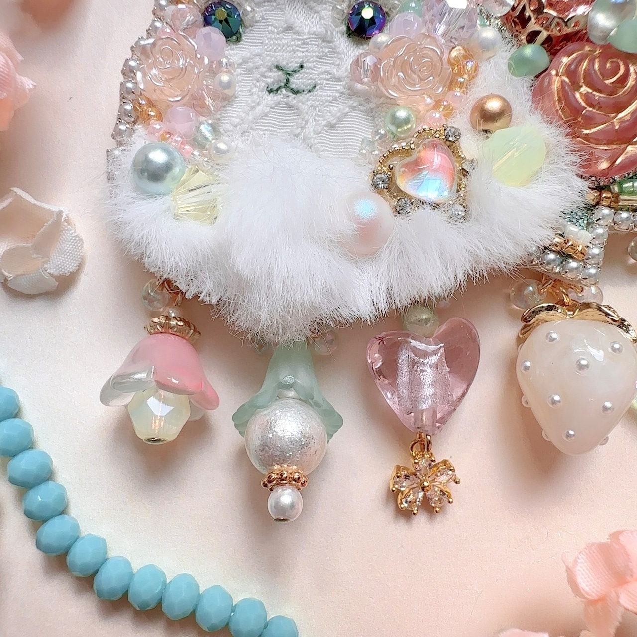 ビーズ刺繍のブローチ・ネックレス・バッグチャームの3wayです。
