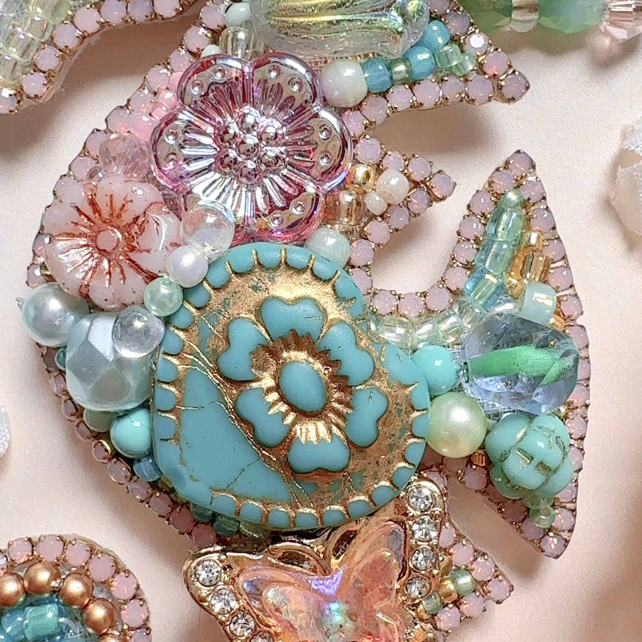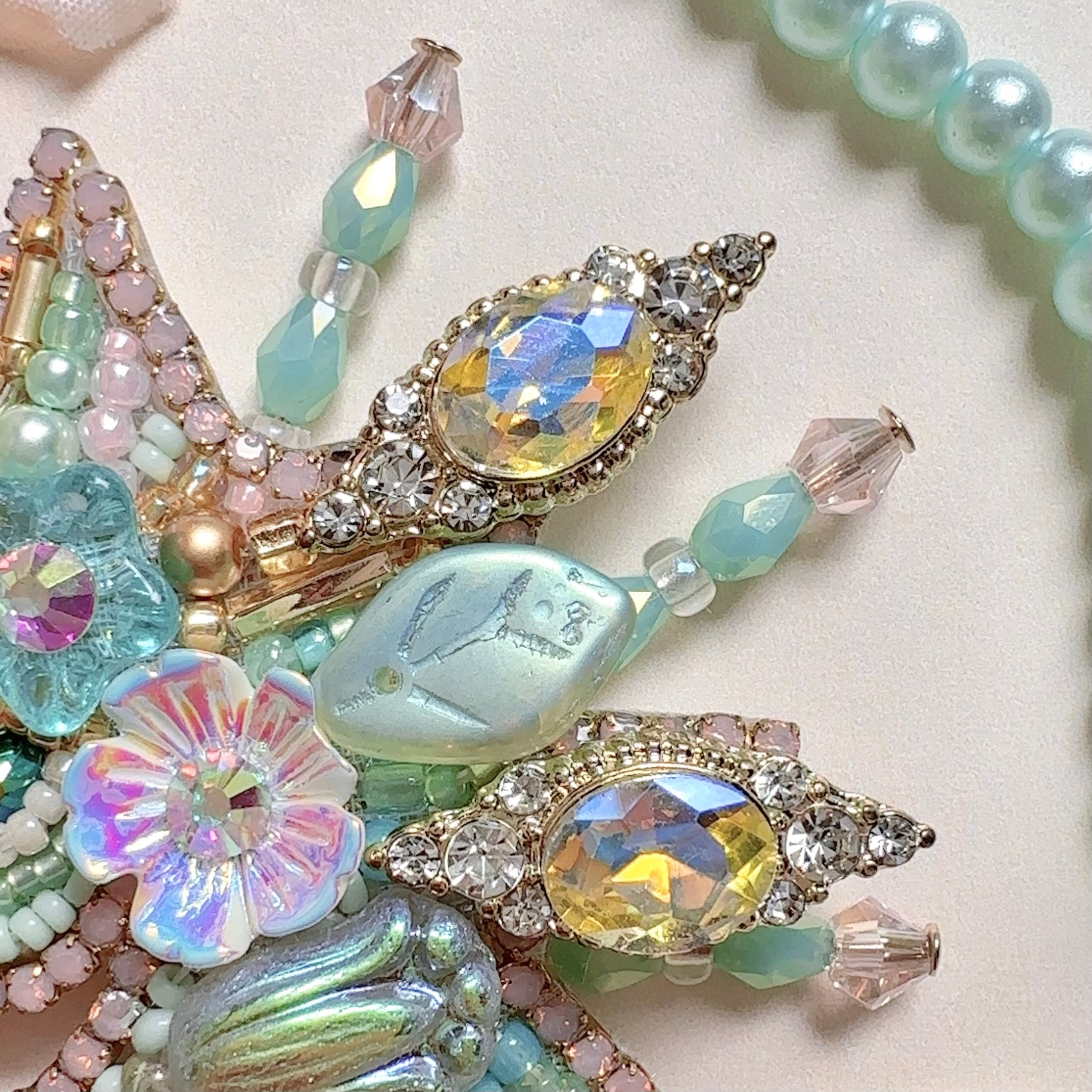 ビーズ刺繍のブローチ・ネックレス・バッグチャームの3wayです。