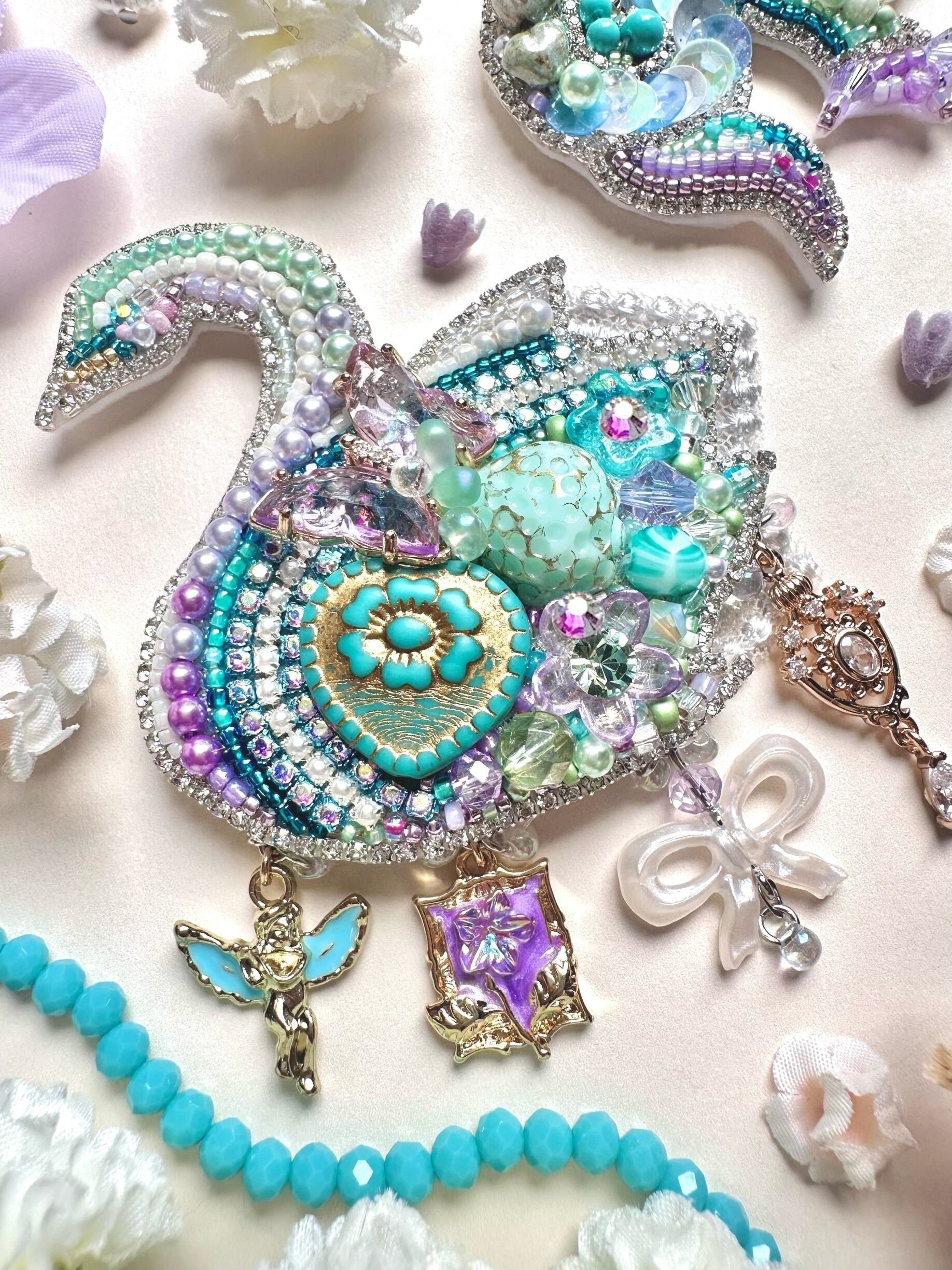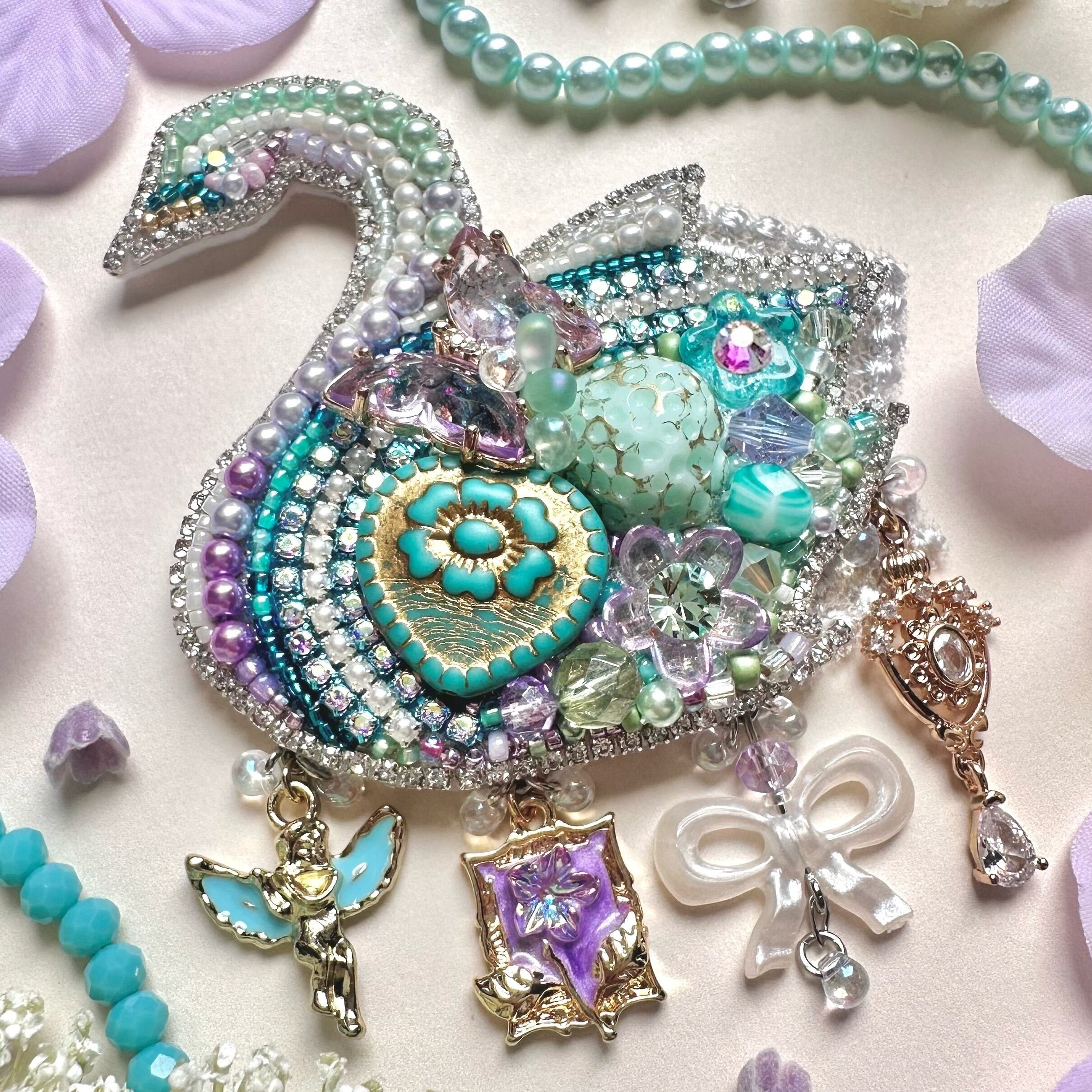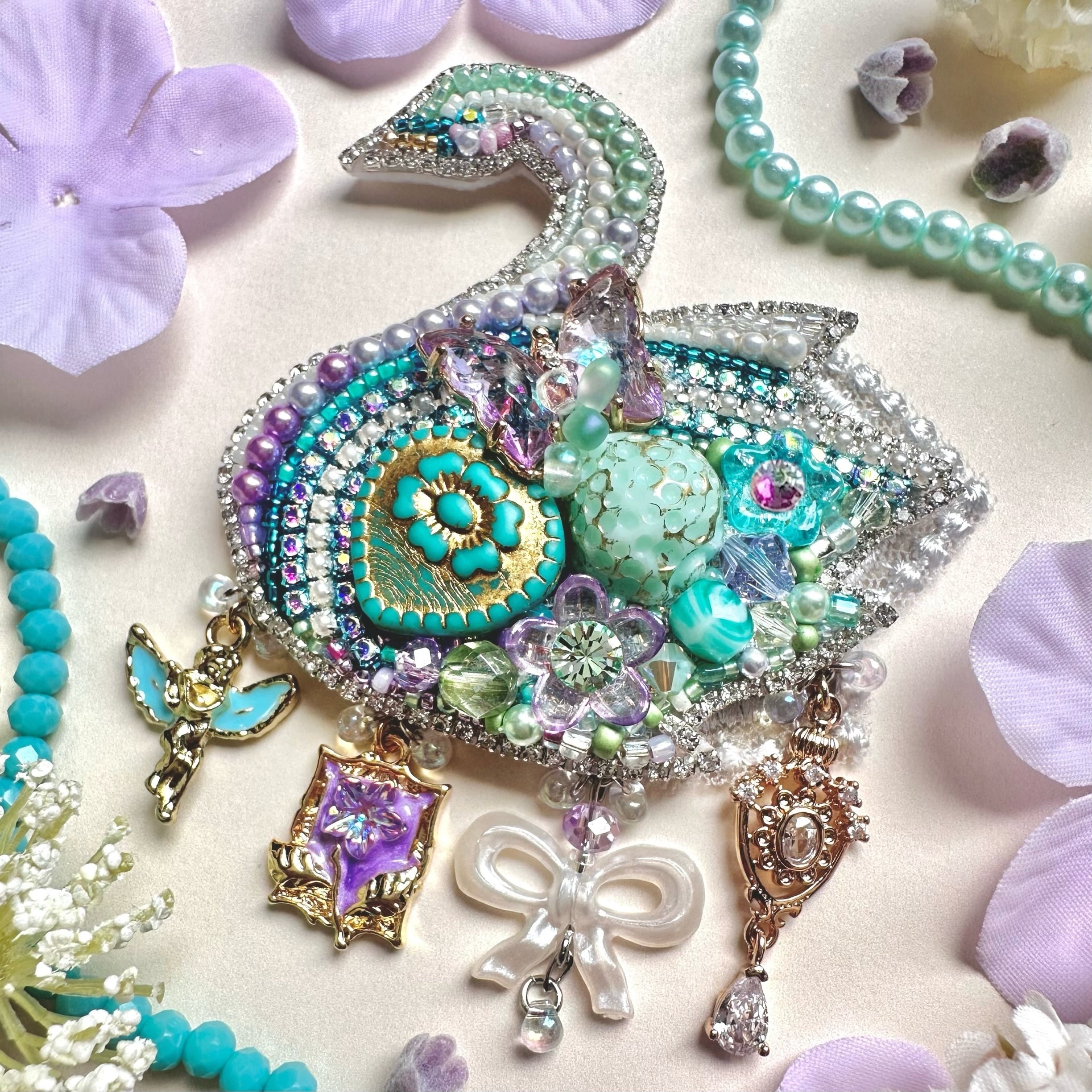 ビーズ刺繍のブローチ・ネックレス・バッグチャームの3wayです。