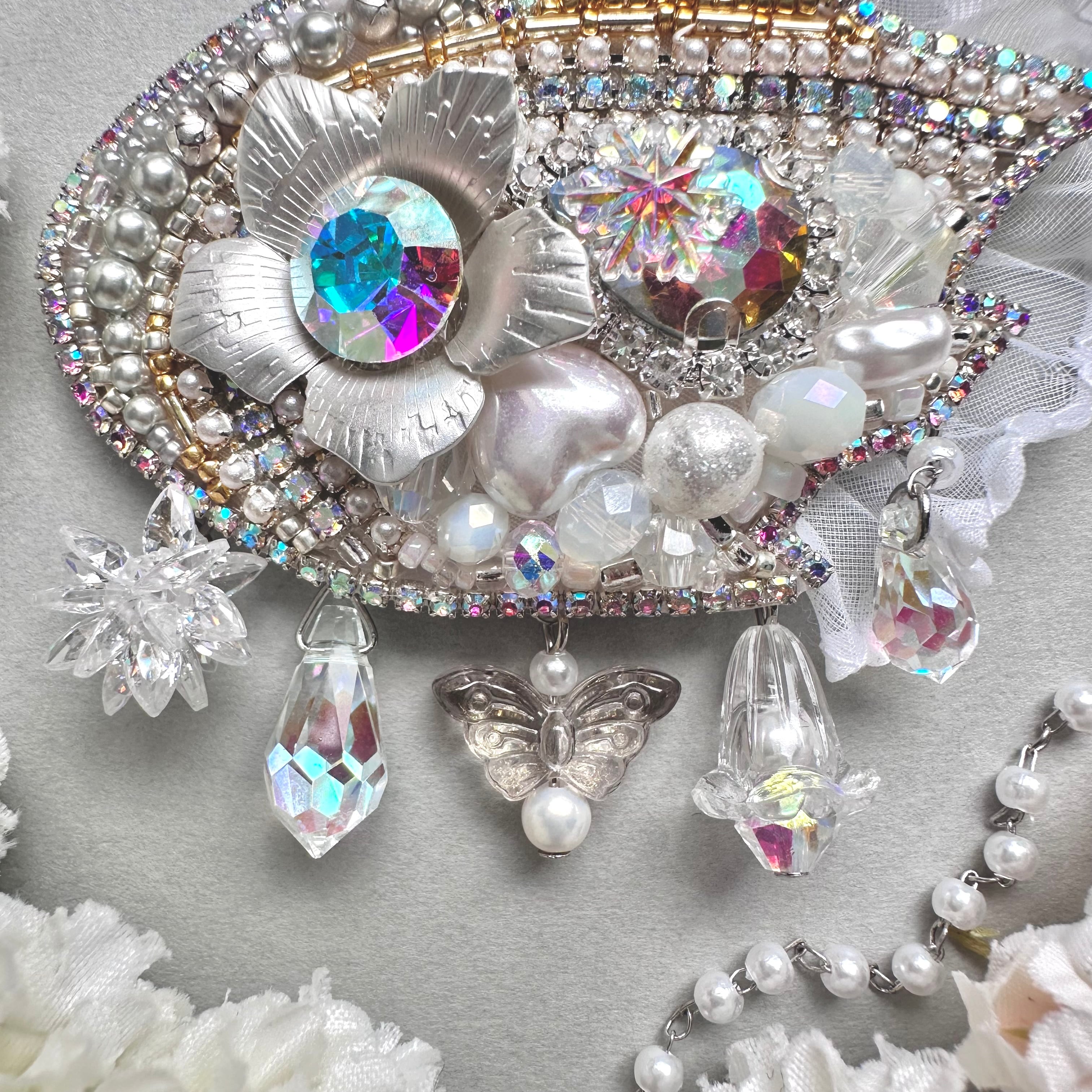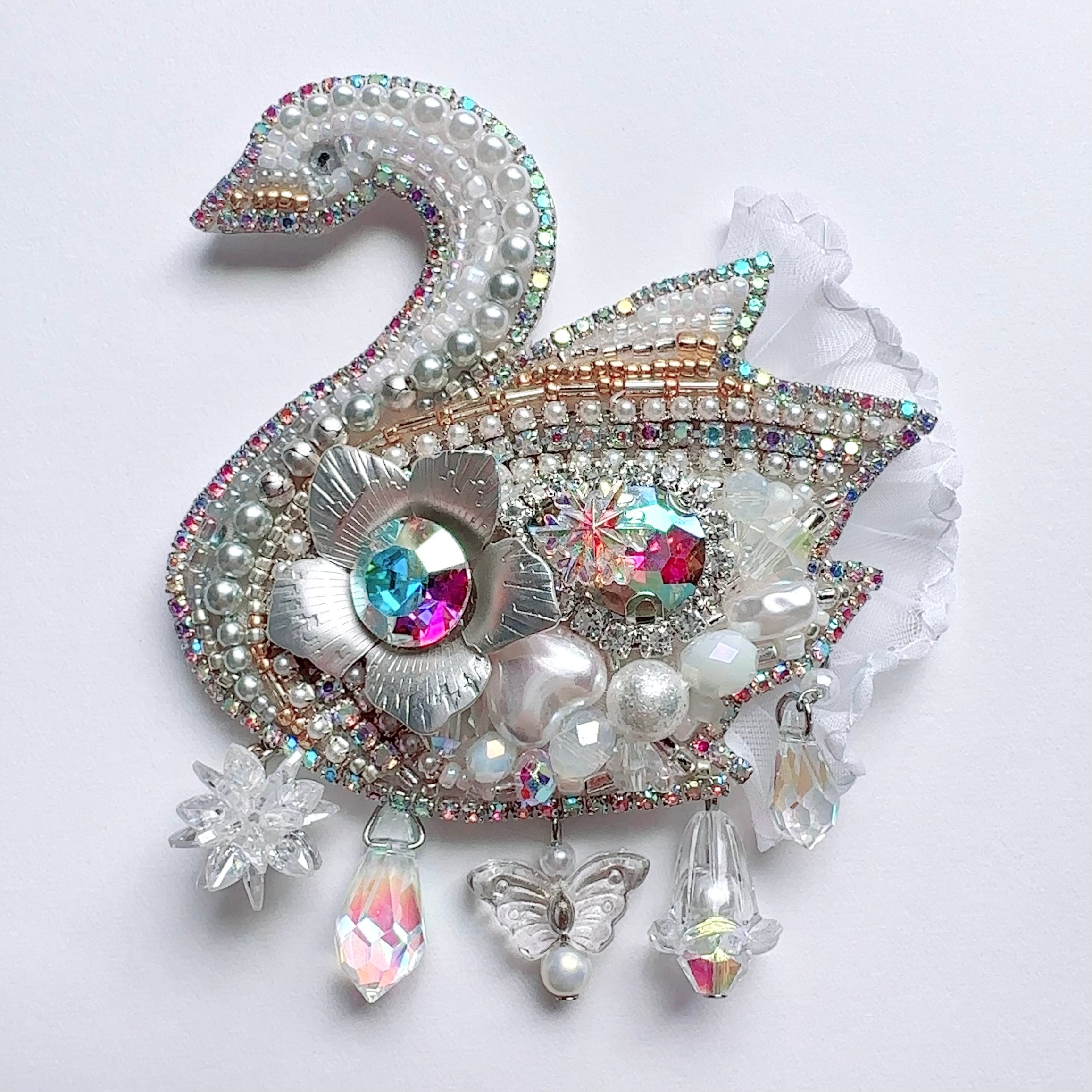 ビーズ刺繍のブローチ・ネックレス・バッグチャームの3wayです。